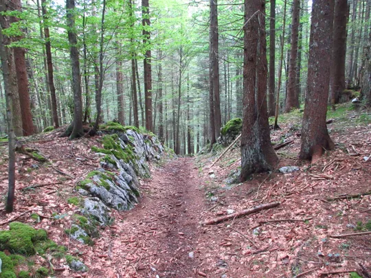 Qui inizia una salita impegnativa dove con l'aumentare del respiro e del battito cardiaco sicuramente inalerete le essenze del bosco e sentirete la sua fragranza.