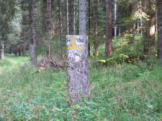 Per informazione, i segnali gialli lungo il percorso ed eventuali numerazioni NON indicano un sentiero ma delimitano delle aree.