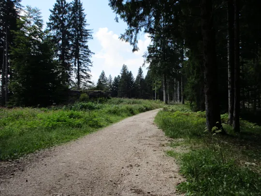 Si rientra nel bosco e con una lunga discesa si arriva al forte. Questo tratto di strada è più frequentato ed aiuta a riprende il contatto con il mondo.