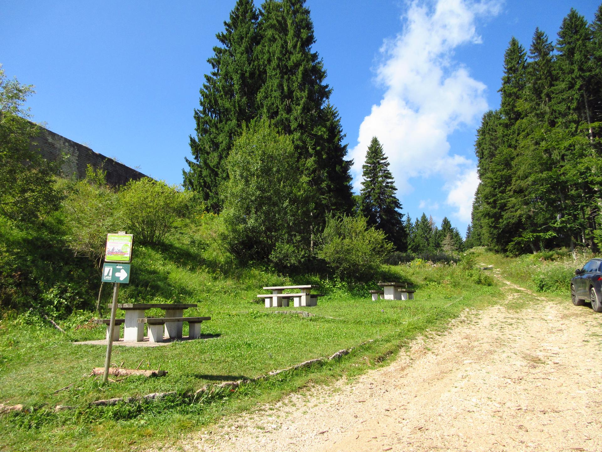 Si prende il sentiero che sale dietro al forte nei pressi dell'aera pic-nic. Alcuni segnali arancioni indicano il percorso.