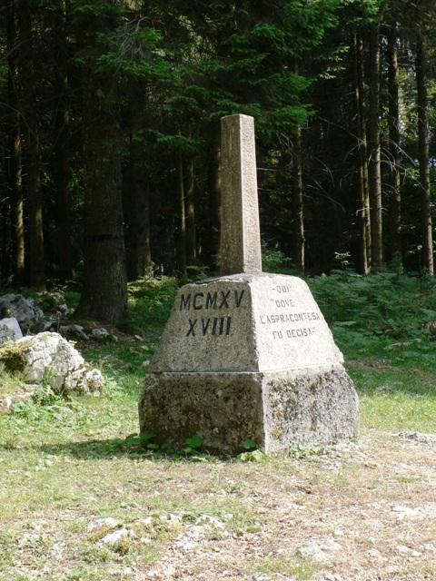 Si arriva in cima al monte, non aspettatevi di vedere il panorama, perché gli alberi coprono tutto. Nella cima due cippi ricordano le gesta dei grandi uomini che hanno difeso l'Italia. Oltre questa montagna il nemico non è passato