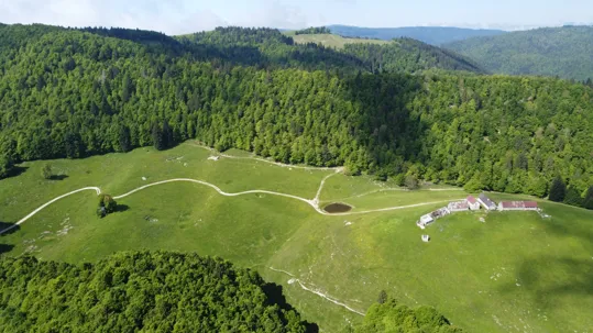 La malga è attorniata da boschi di faggio e abete rosso e si estende per 30 ettari con 4 pozze e 4 edifici di servizio.