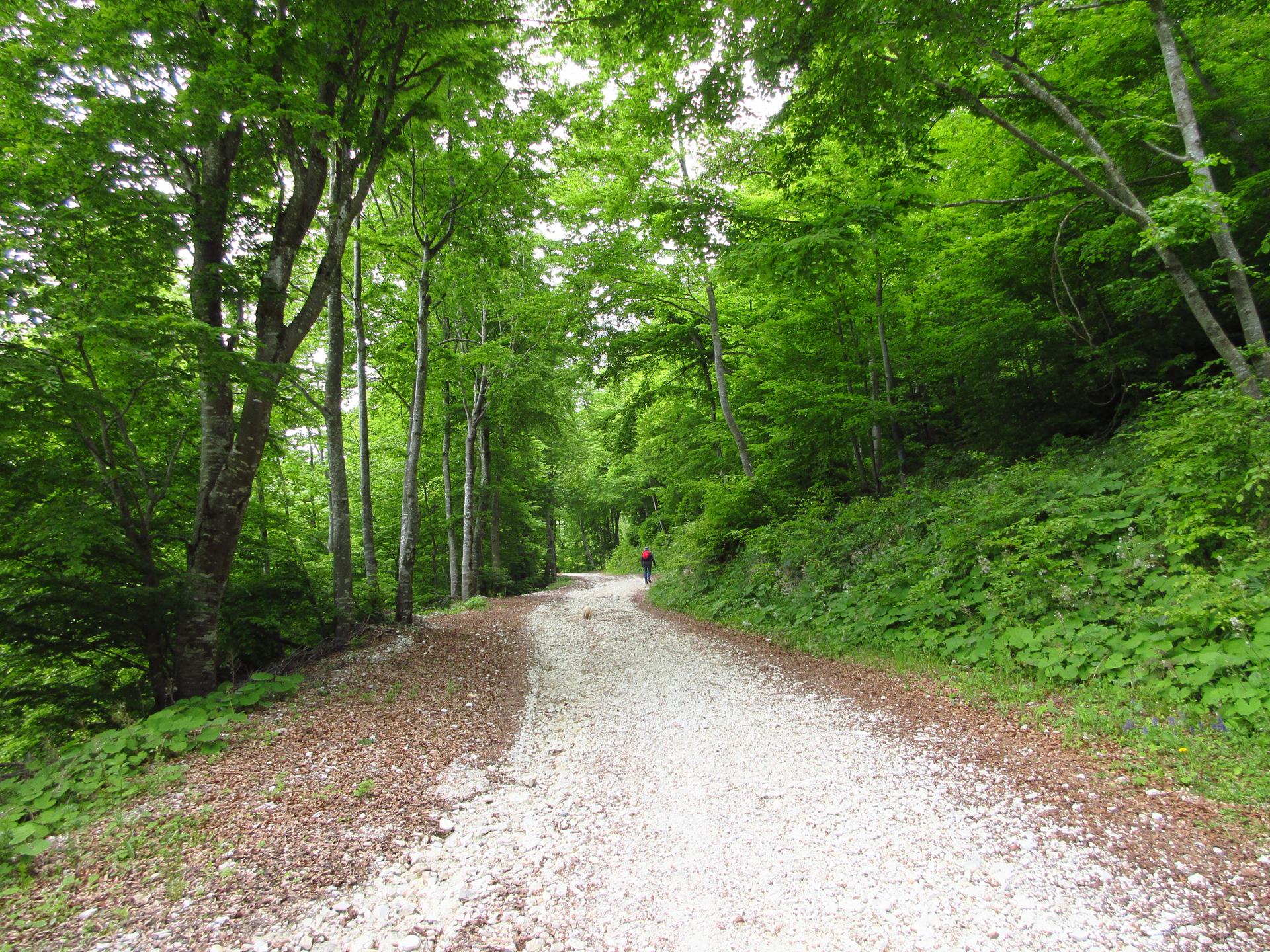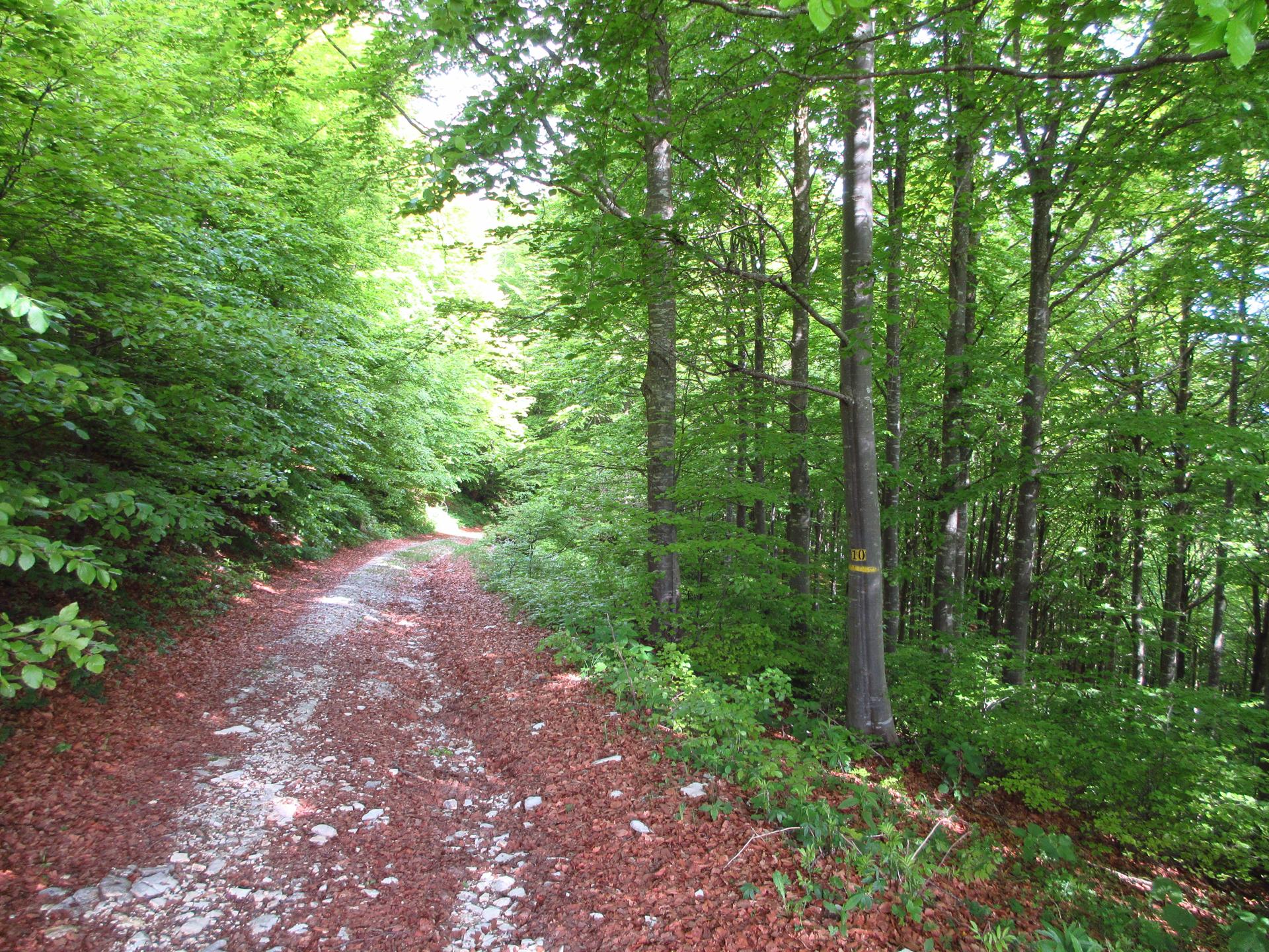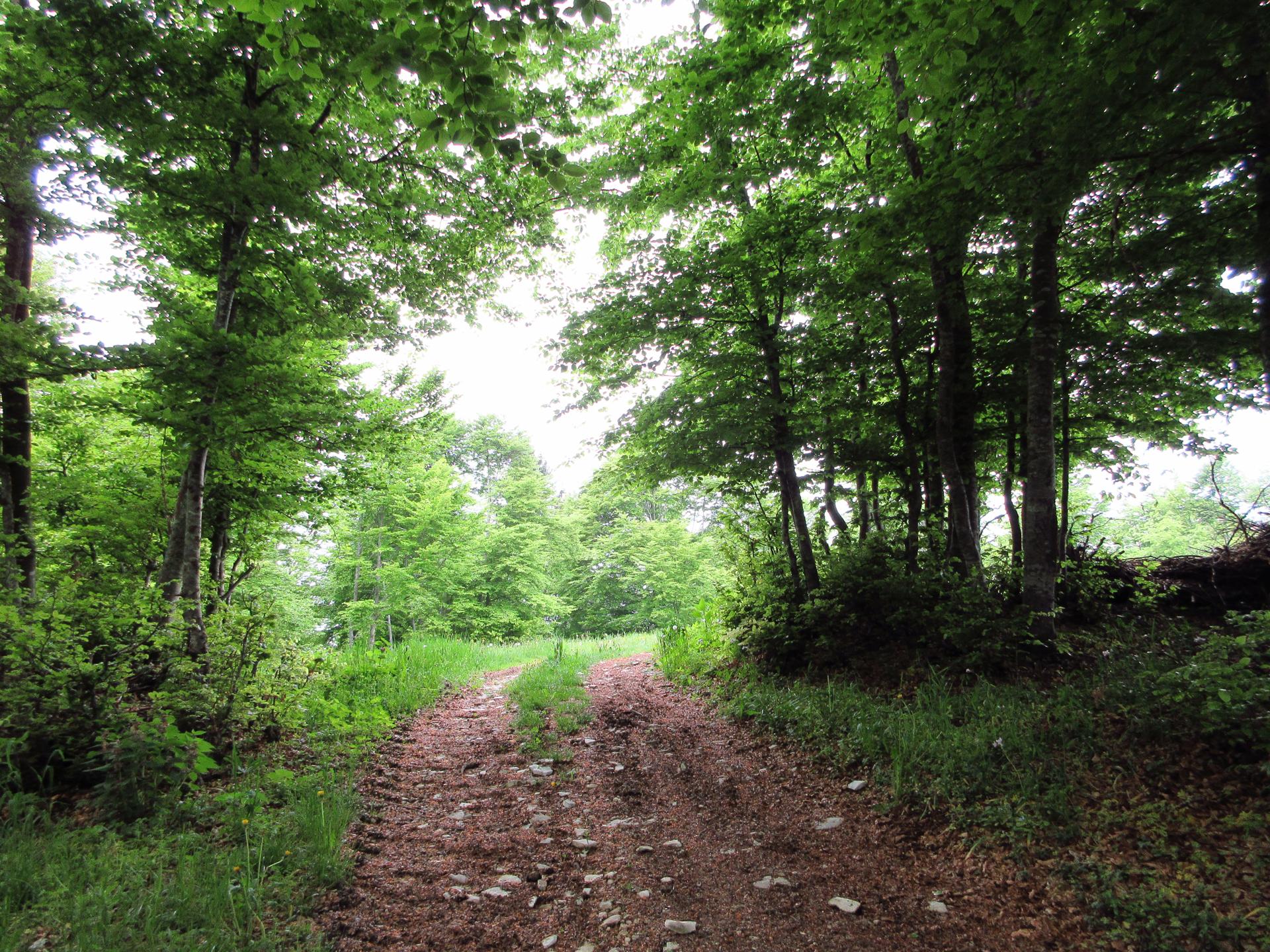 Si lascia la strada principale prendendo quella che scende a destra ed entrando in un magnifico bosco.