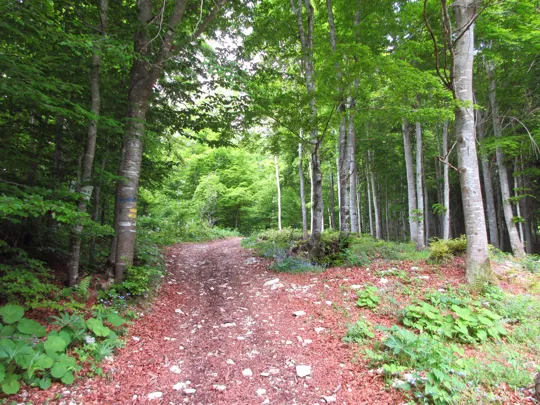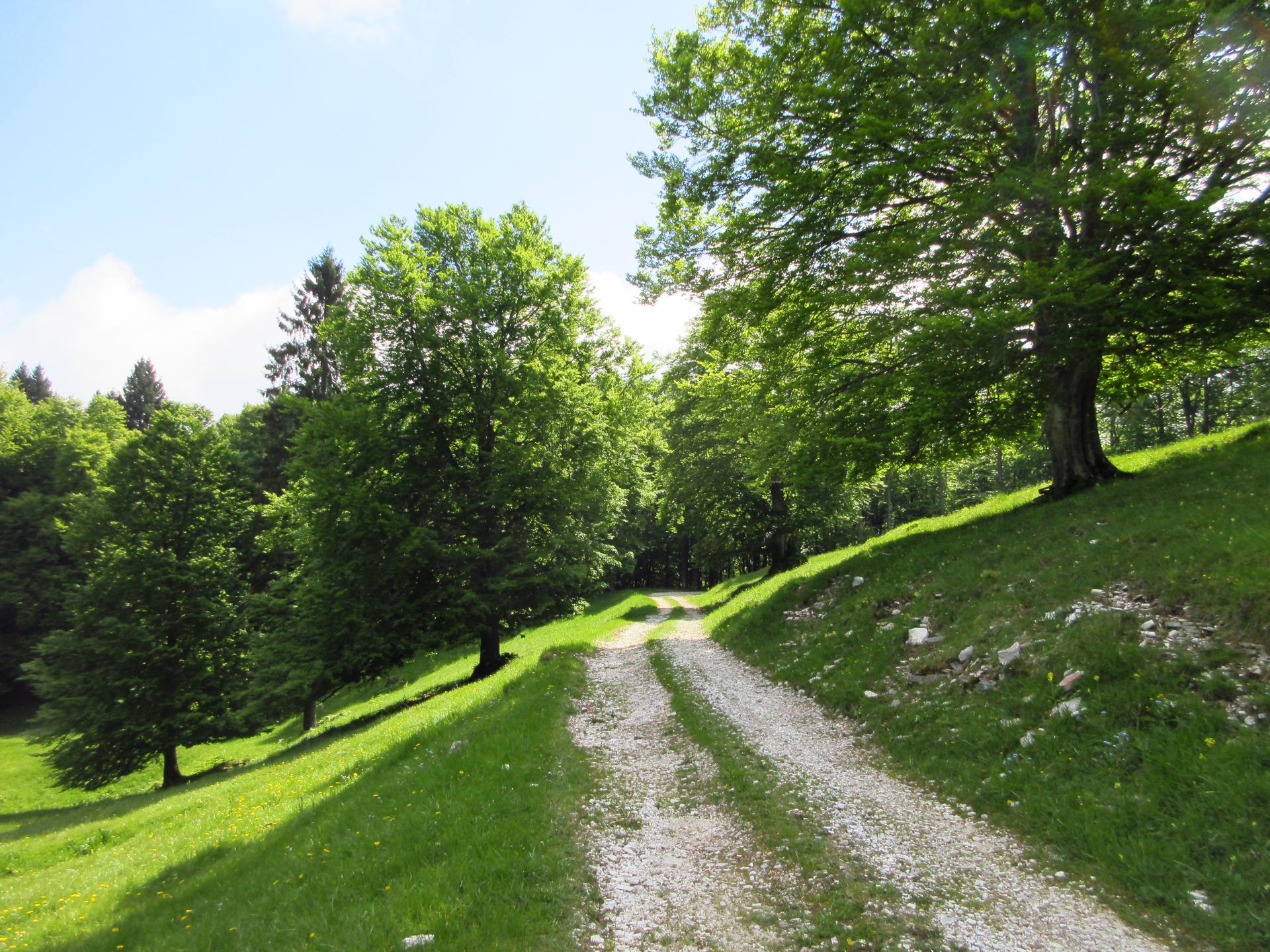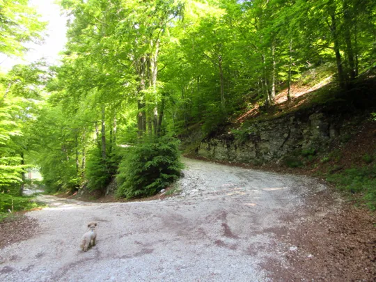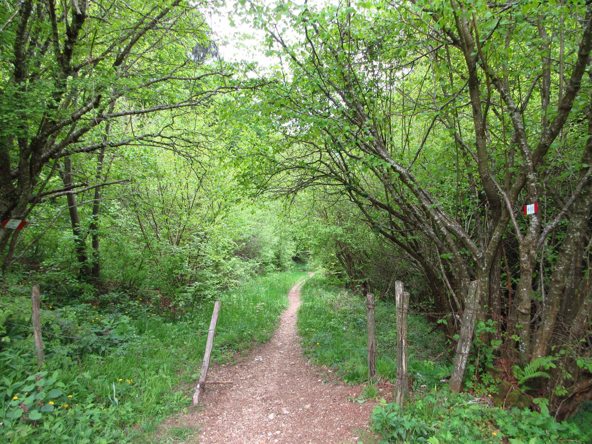 Si lascia la strada principale prendendo quella che scende a destra ed entrando in un magnifico bosco.