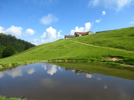 Il pascolo occupa il 94% della superficie e alimenta 48 bovini adulti da giugno a settembre.