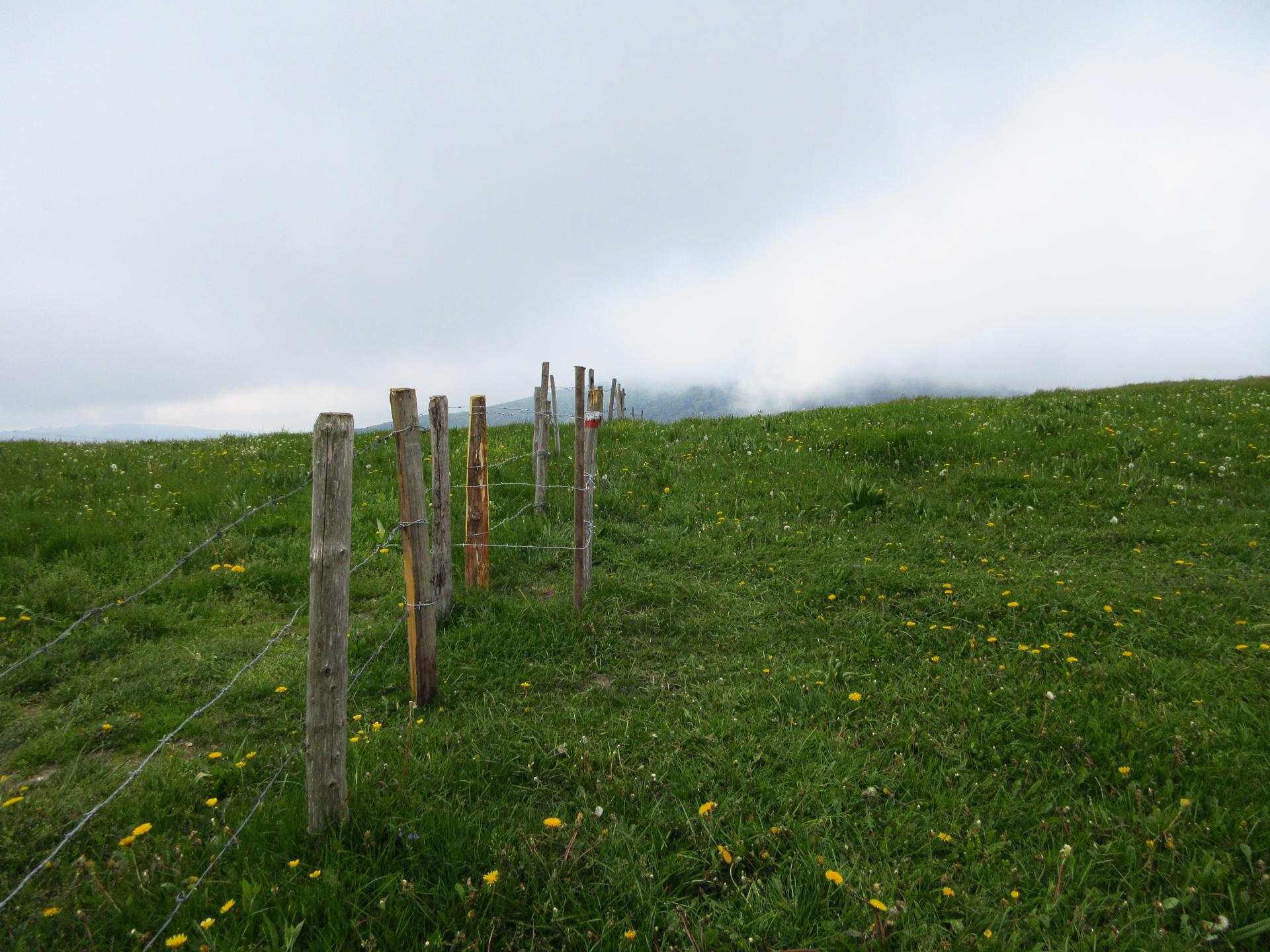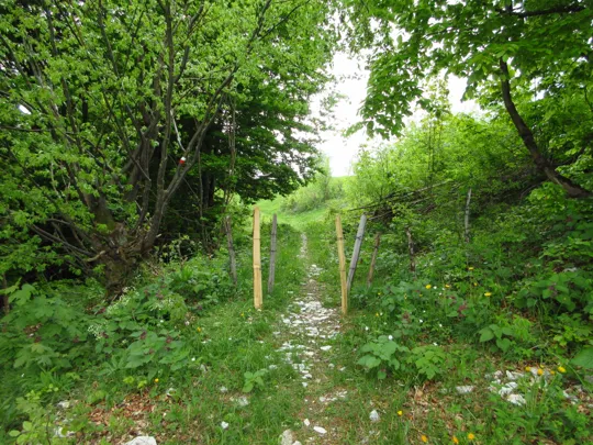 Con una salita abbastanza ripida si raggiunge un reticolato. Da qui si rimane in quota fino a raggiungere un altro reticolato per risalire ancora fino a trovare la possibilità di superarlo.
