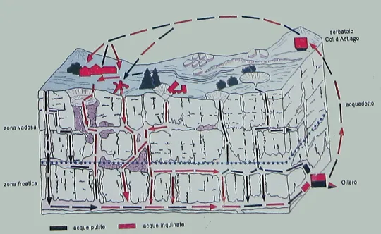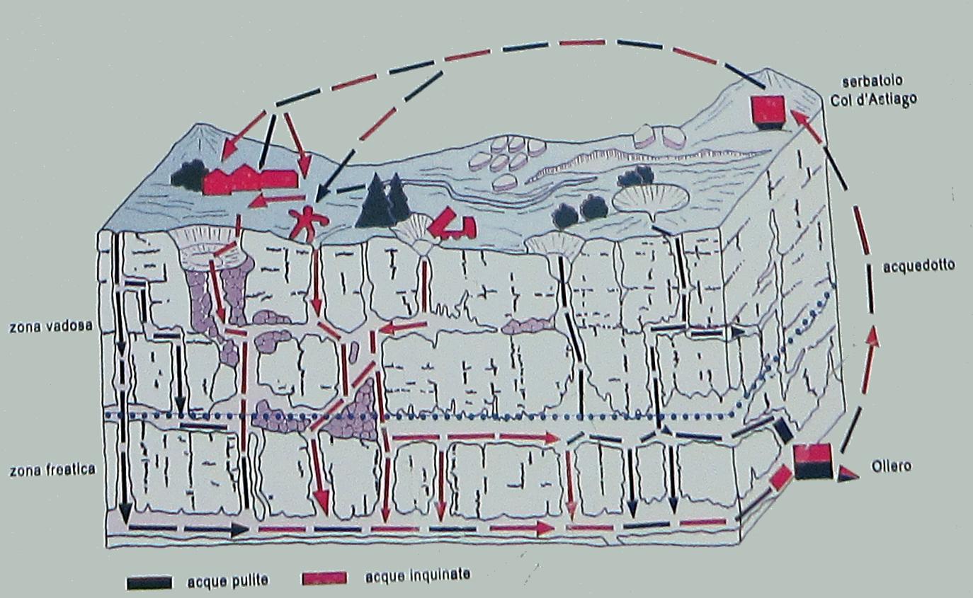 L'acqua che sgorga dalle sorgenti di Oliero è sollevata fino alla vasca del Col d'Astiago per dissetare chi vive su questo altopiano carsico.
