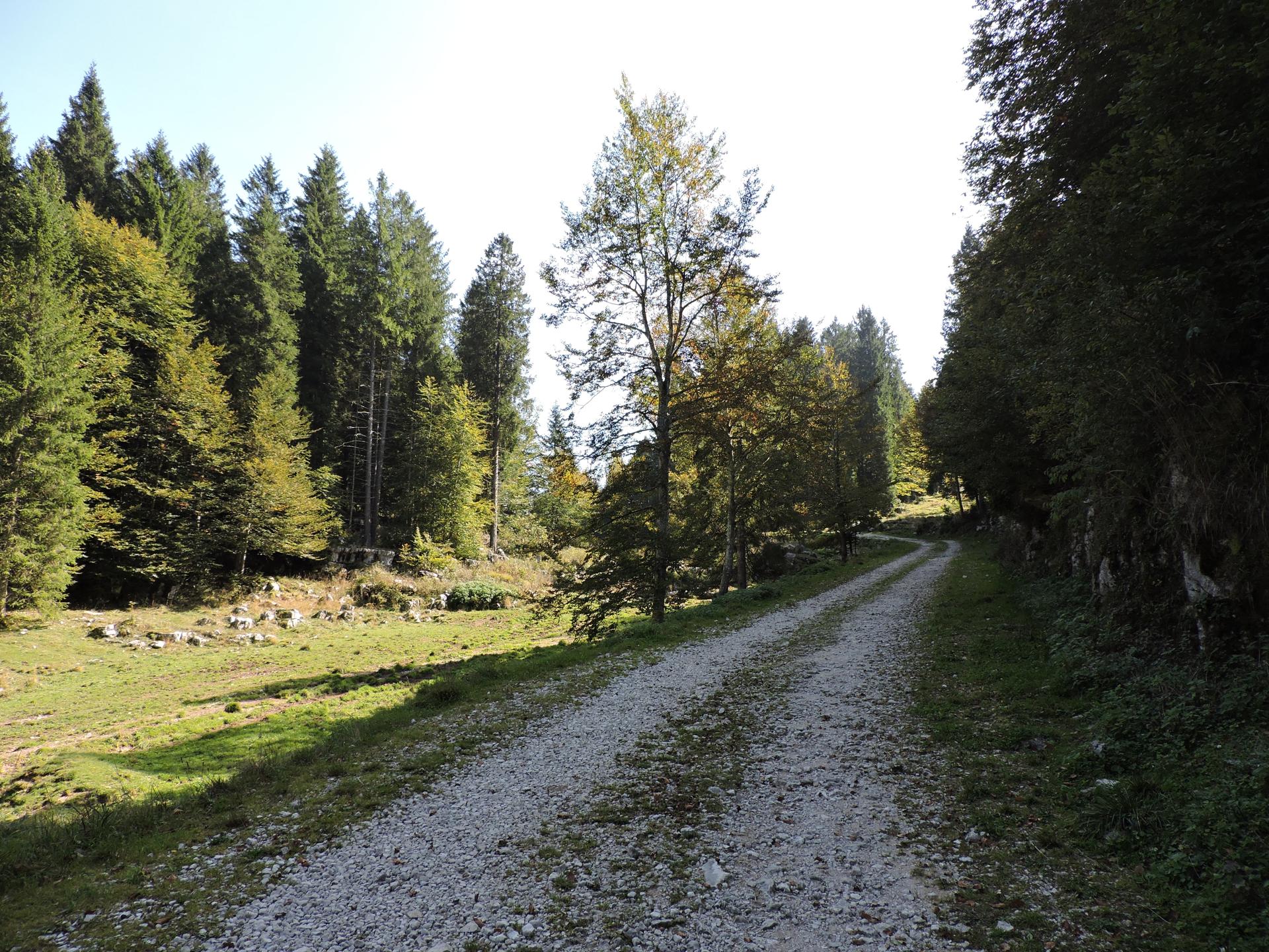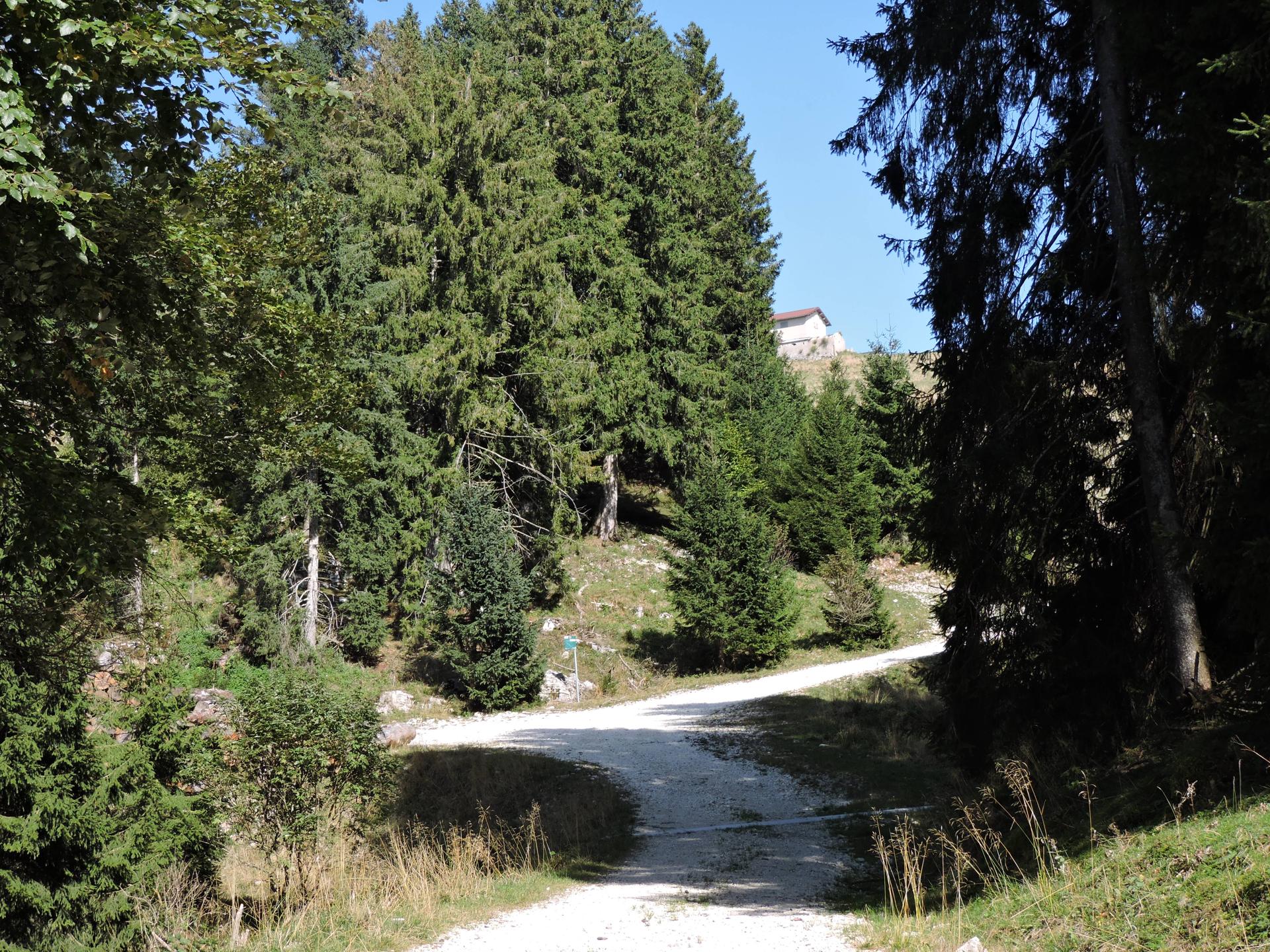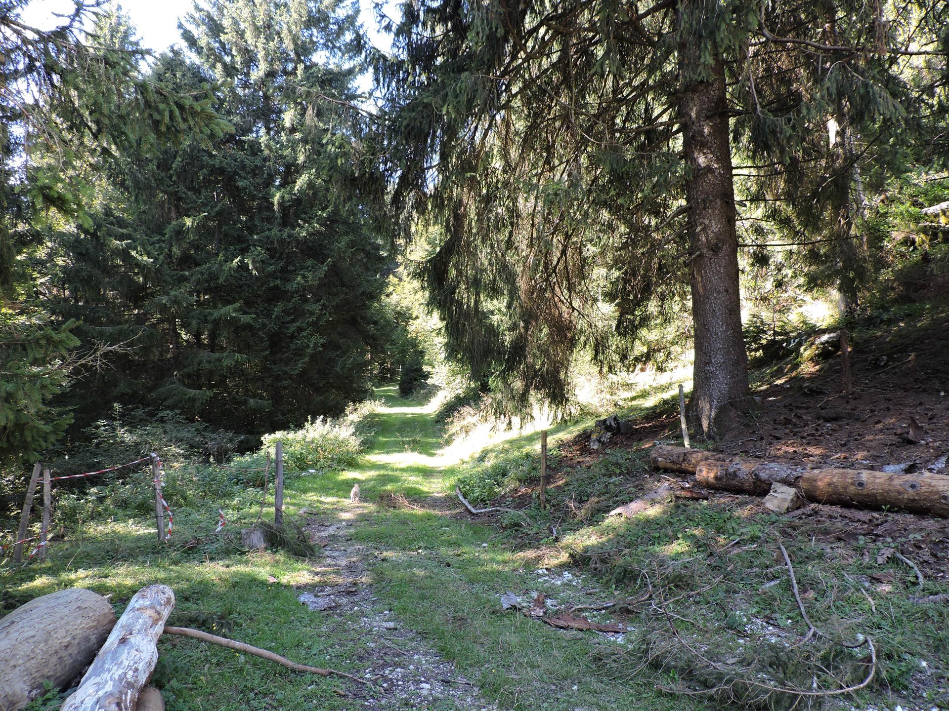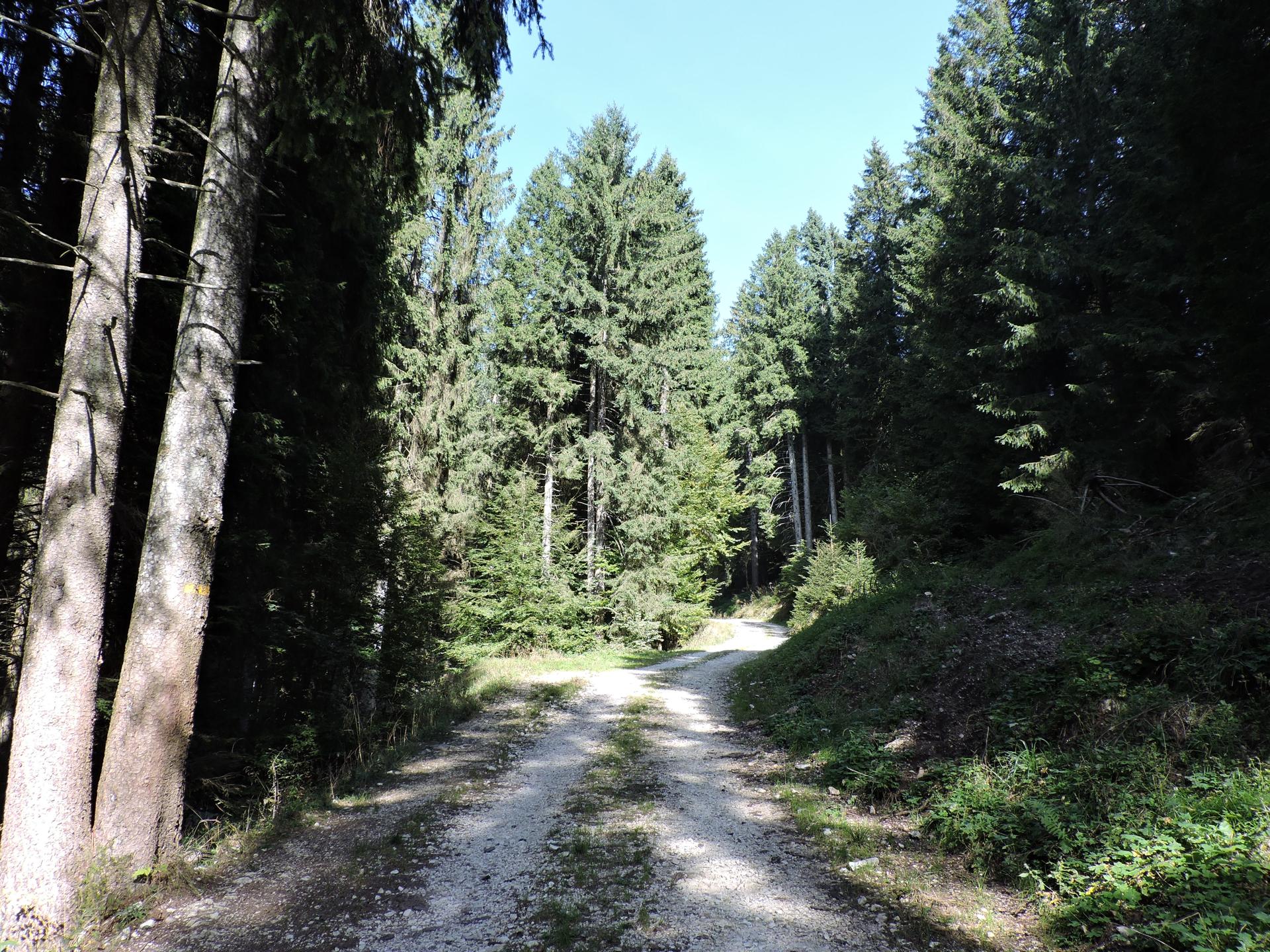 Dopo il panorama, si riprende la strada in discesa e, non volendo percorrere la stessa della salita, è possibile deviare a destra sulla vecchia strada che portava alla malga.