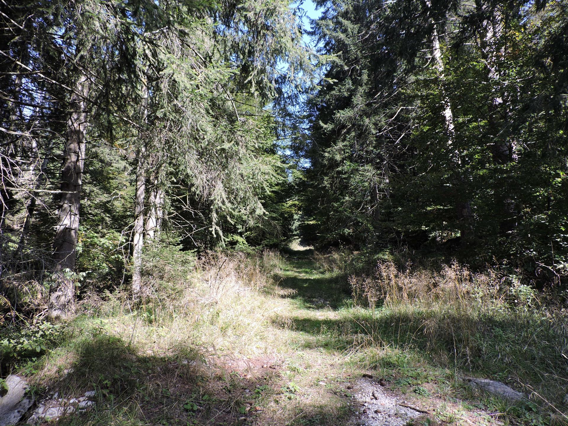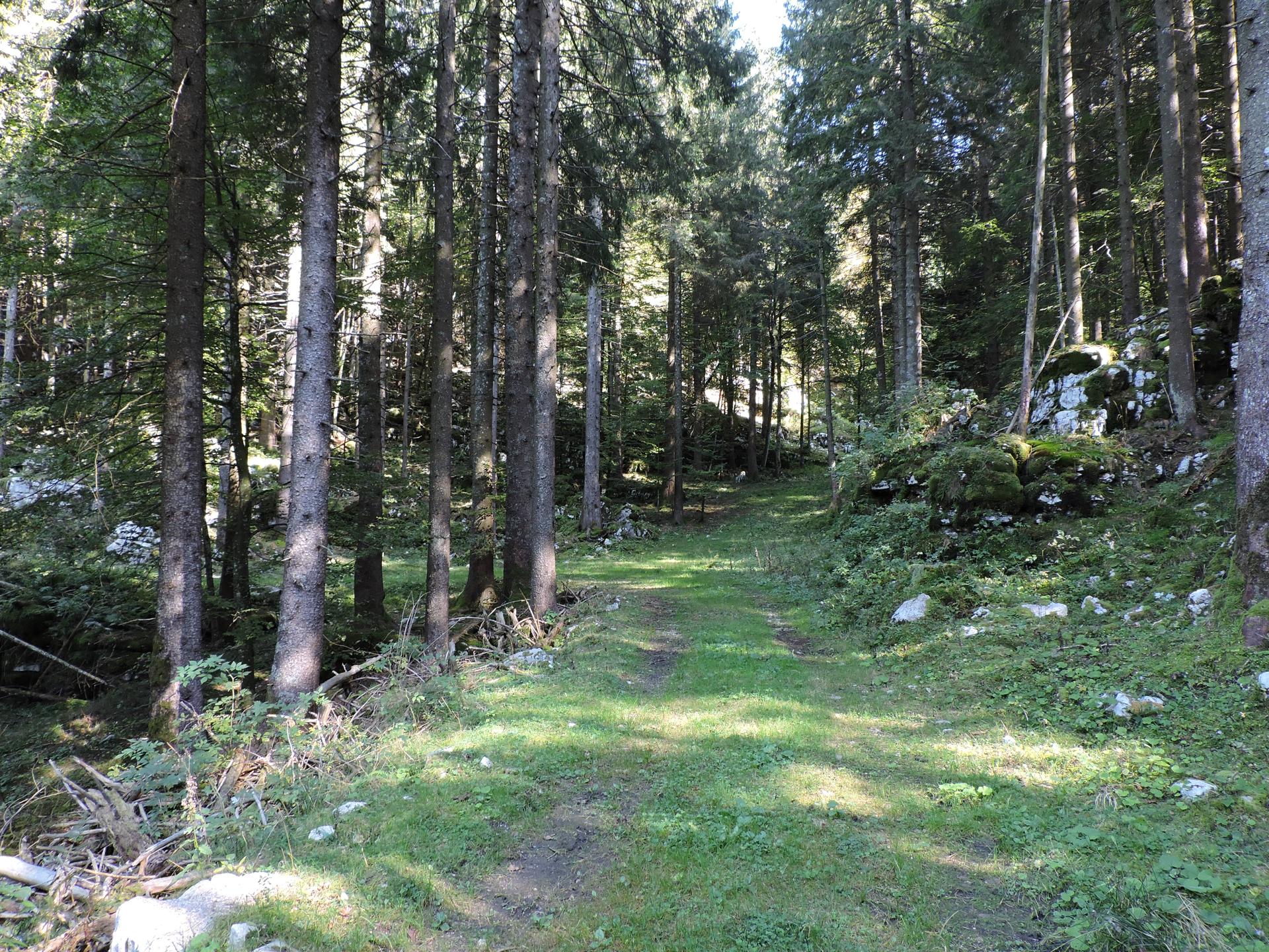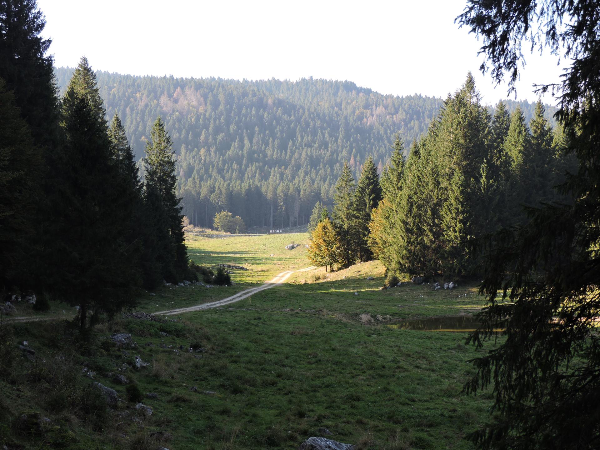 Dopo il panorama, si riprende la strada in discesa e, non volendo percorrere la stessa della salita, è possibile deviare a destra sulla vecchia strada che portava alla malga.