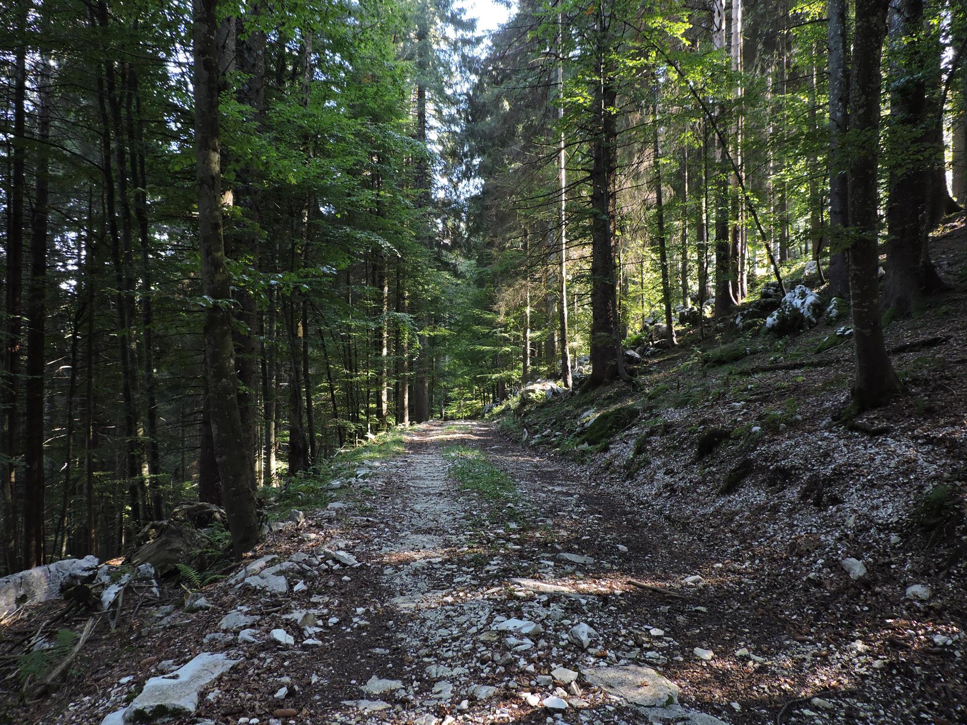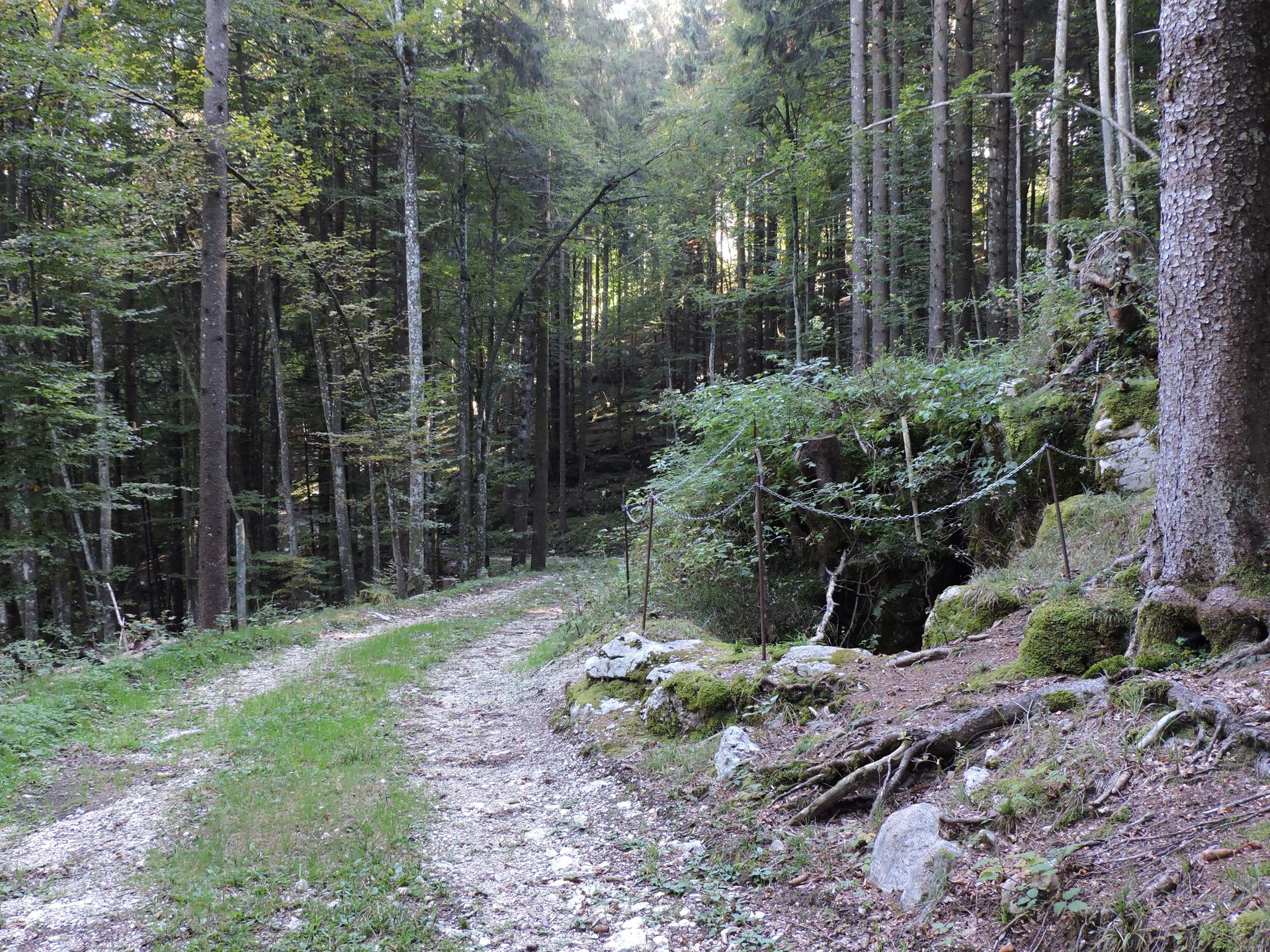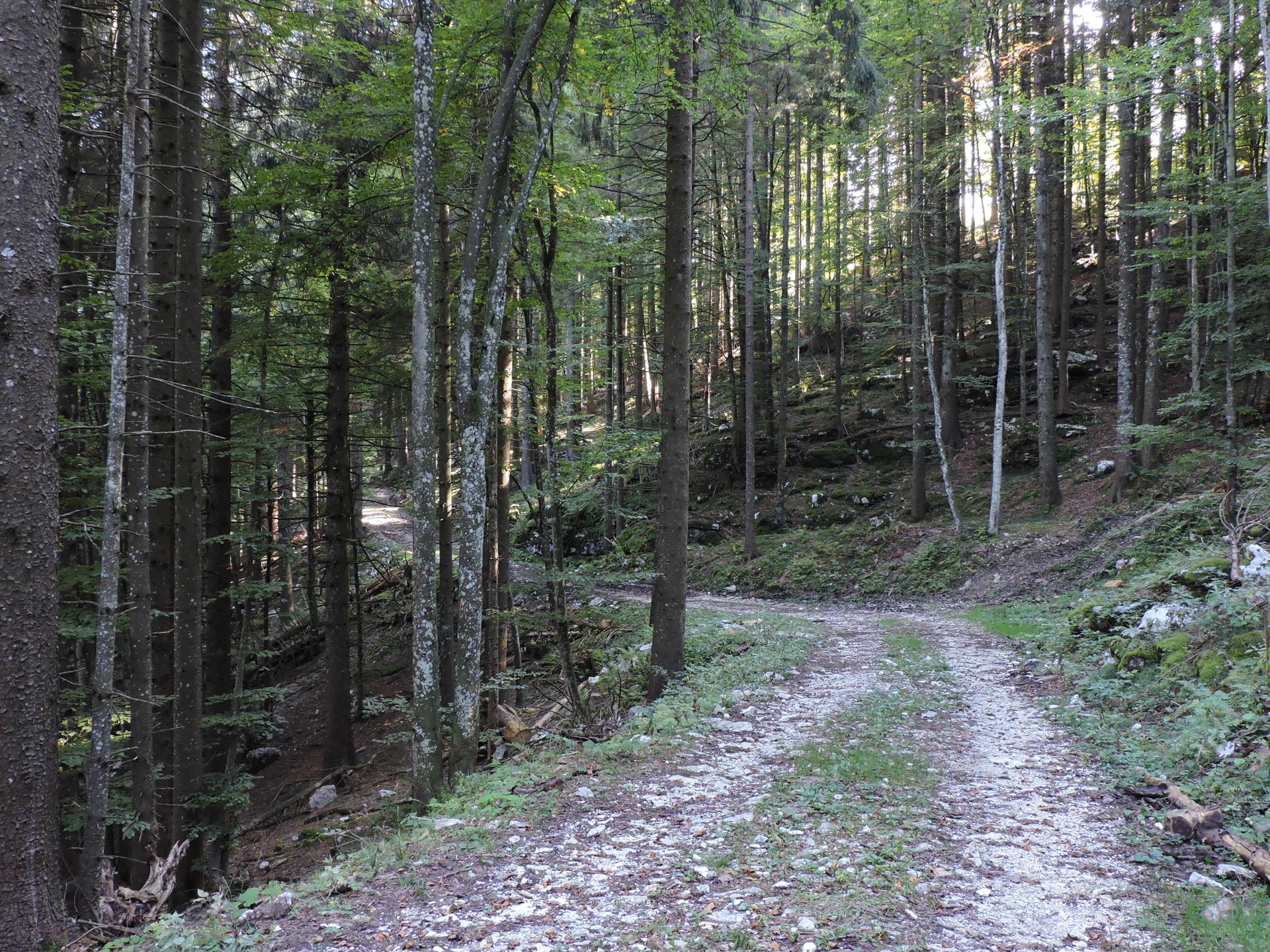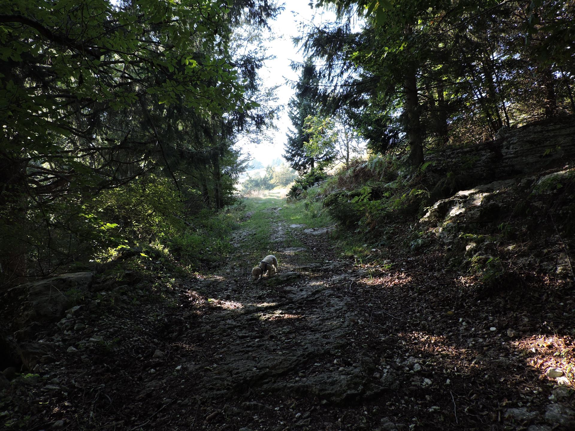 Dopo il panorama, si riprende la strada in discesa e, non volendo percorrere la stessa della salita, è possibile deviare a destra sulla vecchia strada che portava alla malga.