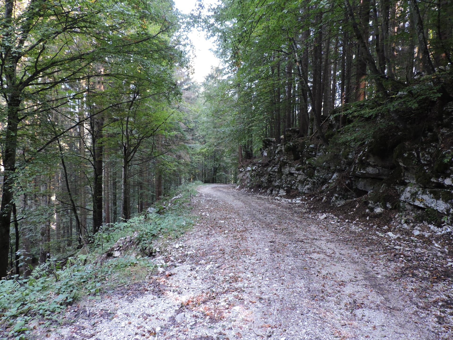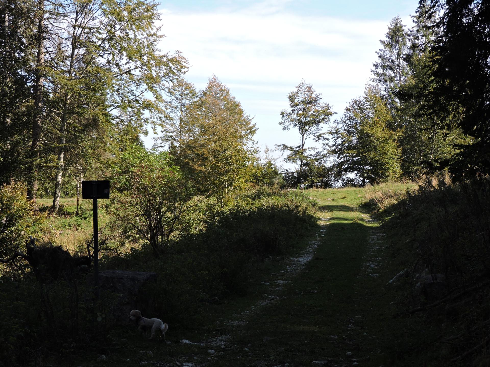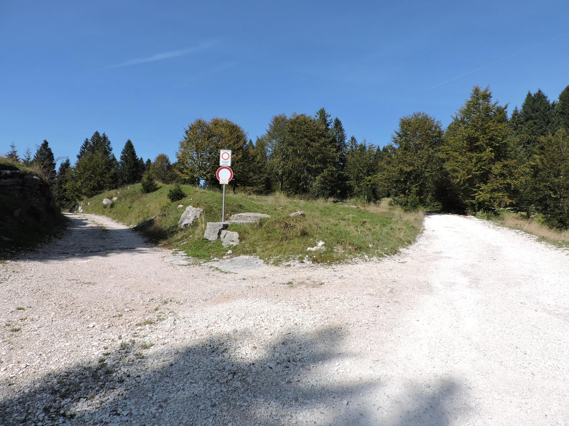 Presa la strada in direzione della malga, poco prima di arrivare al suo parcheggio, si devia a destra sulla strada con divieto di circolazione.
