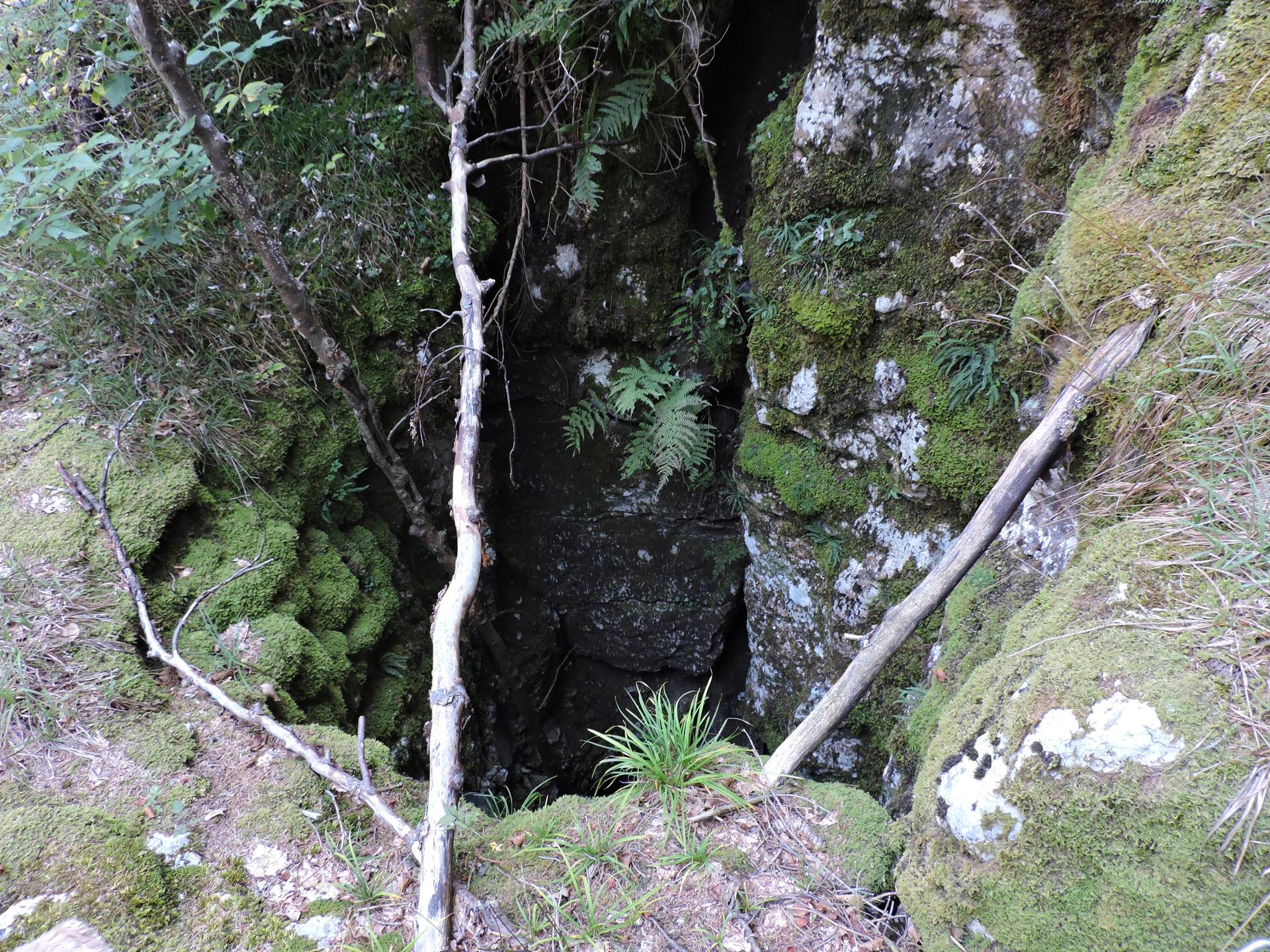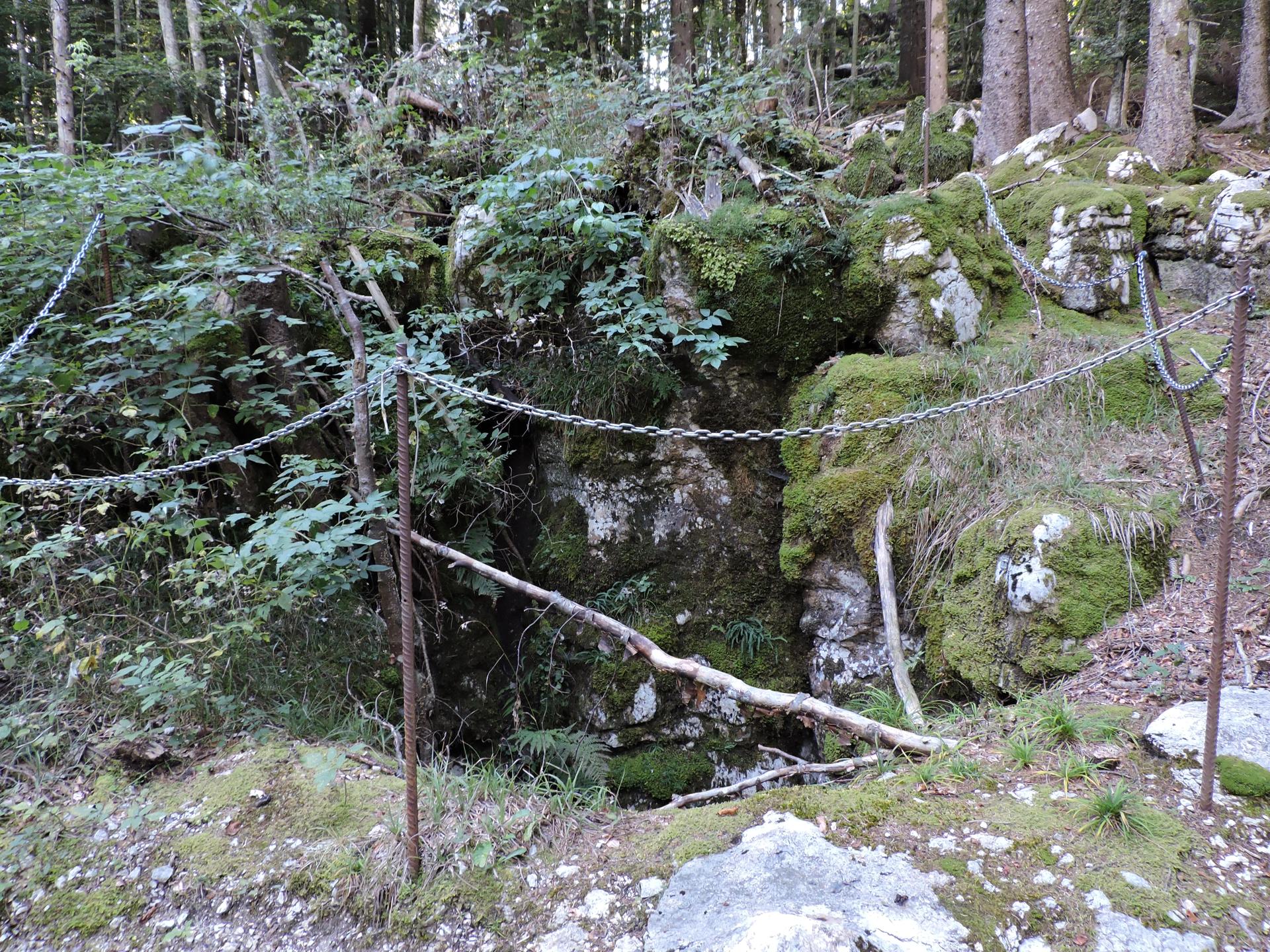 Poco prima di raggiungere il punto più a nord, troviamo sulla destra una voragine messa in sicurezza con delle catene.