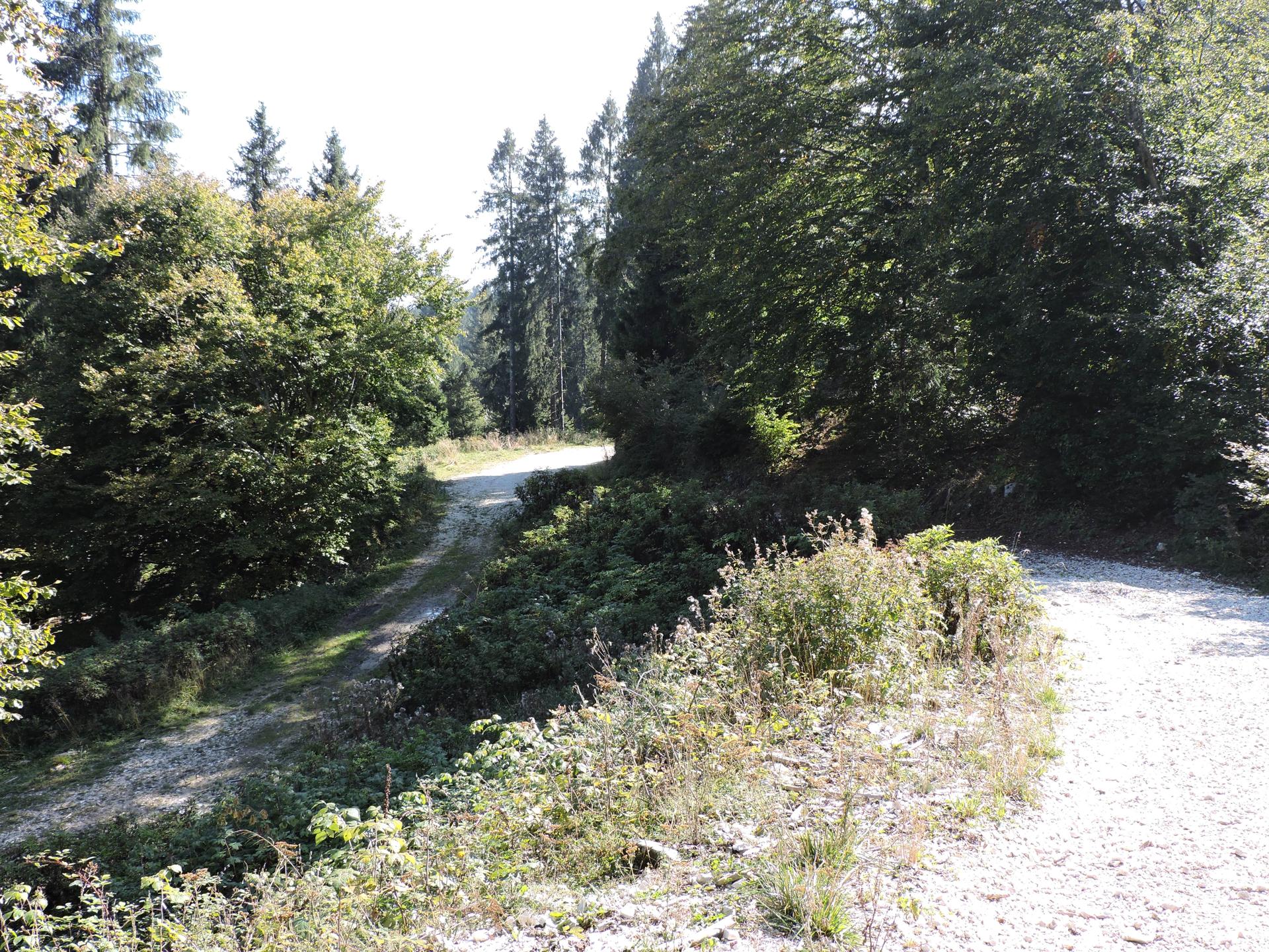 Ancora 700 metri e si arriva all'incrocio che porta alla malga, che, per raggiungerla, è necessario salire a destra.
