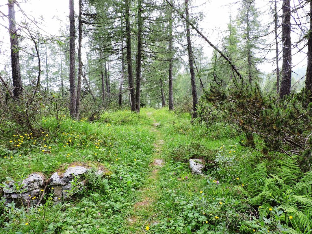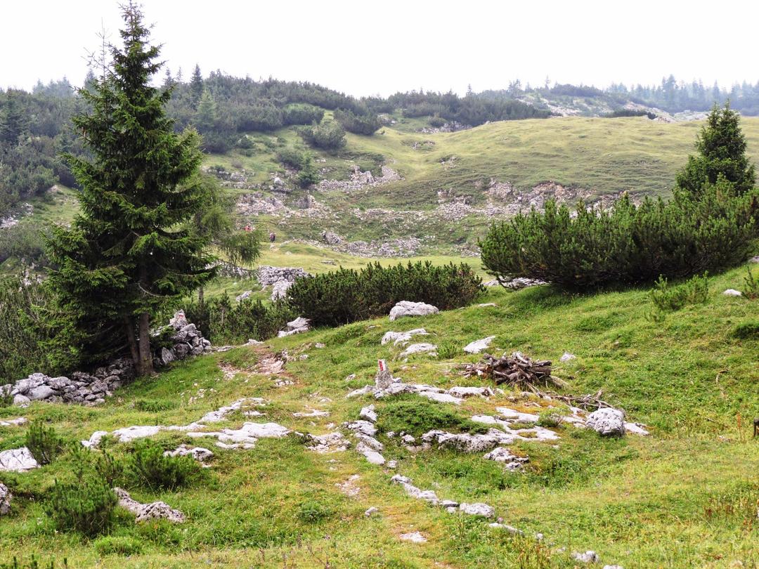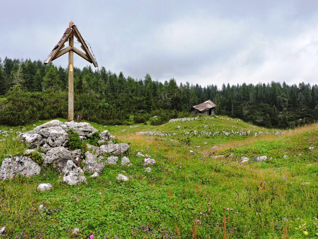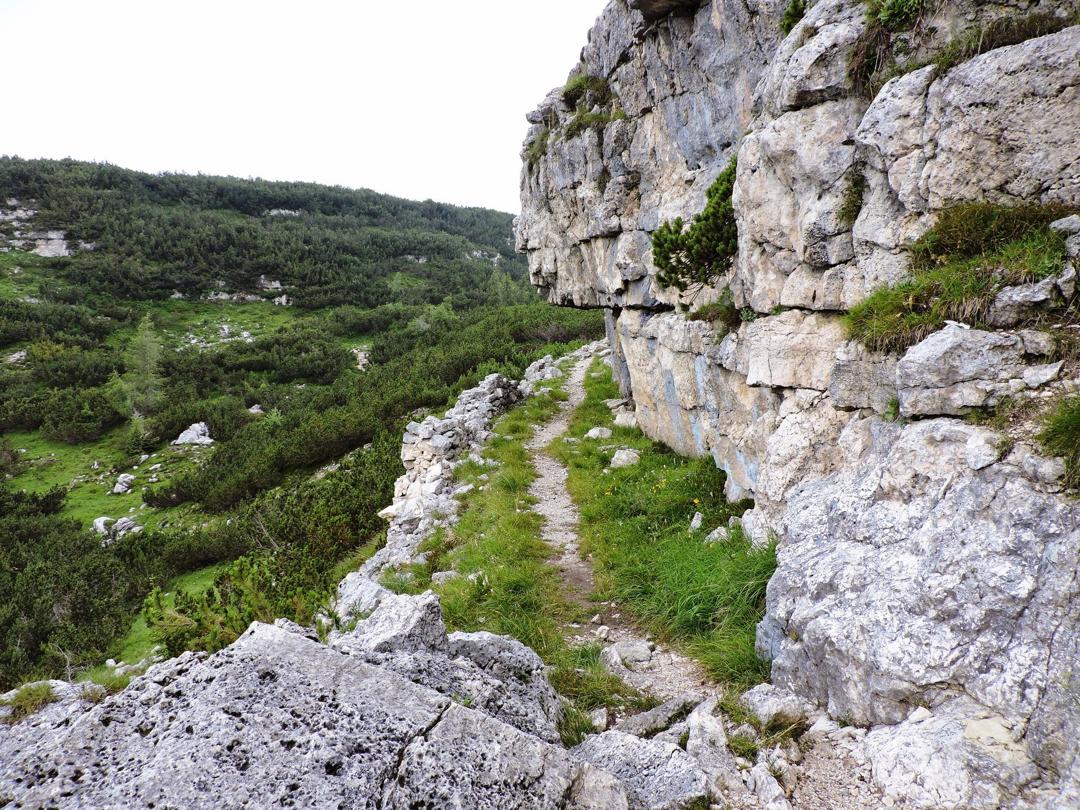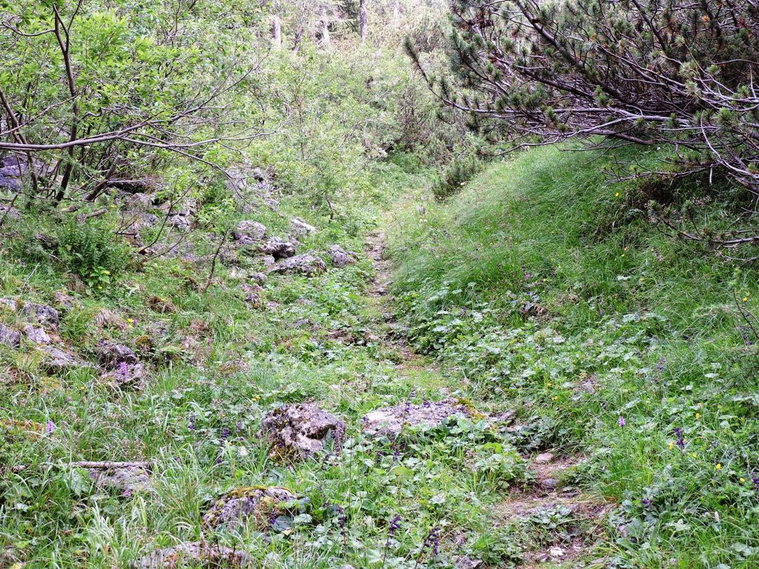 Si scende dalla selletta in direzione nord ovest passando vicino ad un baito distrutto ed un ex cimitero militare. In prossimità di Malga Pozze (che non si raggiunge) si trova il sentiero originale che scende verso sud ovest, bisogna proseguire salendo verso nord ovest.