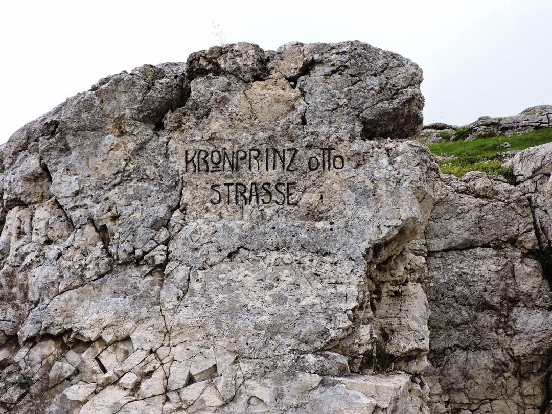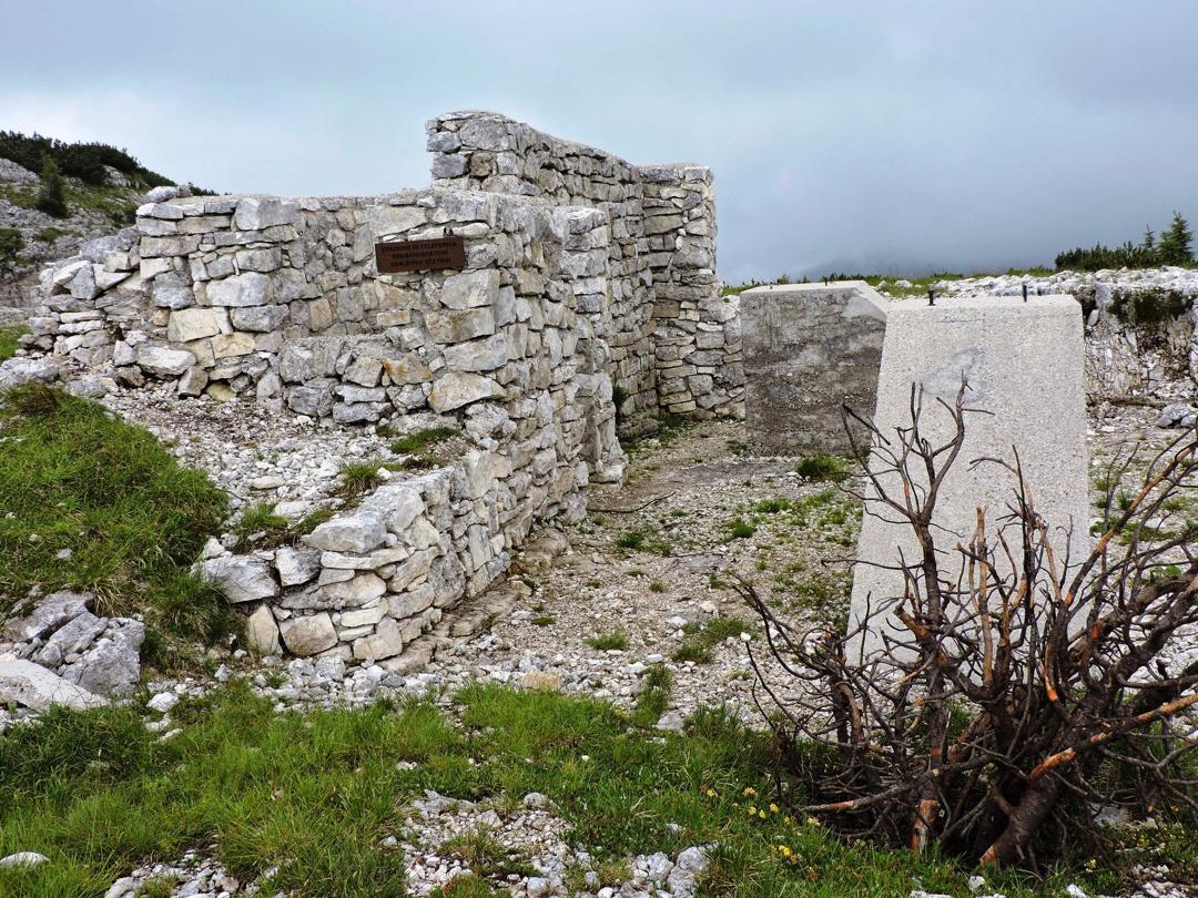 Lapide commemorativa della 2° Compagnia da campo dell'Imperiale e Regio 17° Reggimento di Fanteria "Kronprinz". Il testo in lingua slovena, nell'esaltare l'eroismo del Reggimento intitolato al Principe ereditario Ottone d'Asburgo, evoca con nostalgia il Monte Triglav, montagna "simbolo" degli Sloveni.