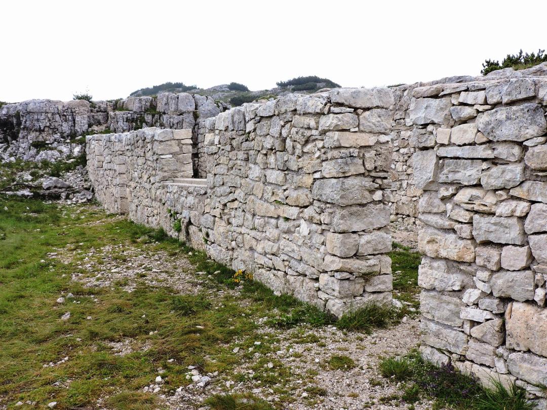 Se il complesso dei Tunnel di Monte Chiesa rappresenta un modello di organizzazione tattica difensiva, l'avvallamento di tipo carsico quasi perfettamente circolare noto oggi come Dolina degli Sloveni costituisce un esempio di organizzazione logistica dell'immediata retrovia. Posta a poche decine di metri dalla prima linea (Schutzengraben) essa conteneva, sul lato rivolto al nemico e quindi defilato al suo tiro, i baraccamenti per il comandi di battaglione e per le necessità di ricovero e rifornimento di una compagnia.