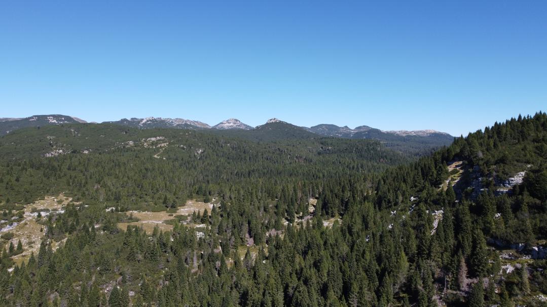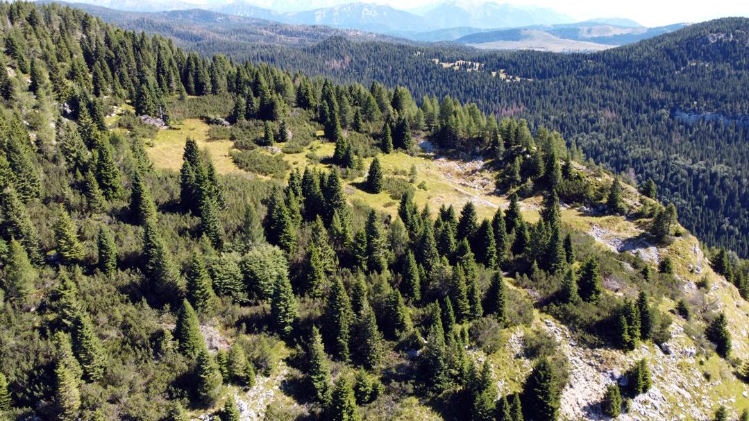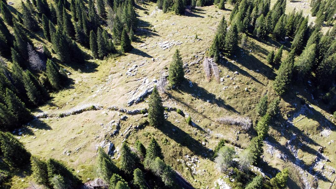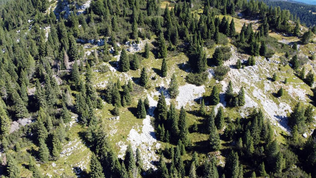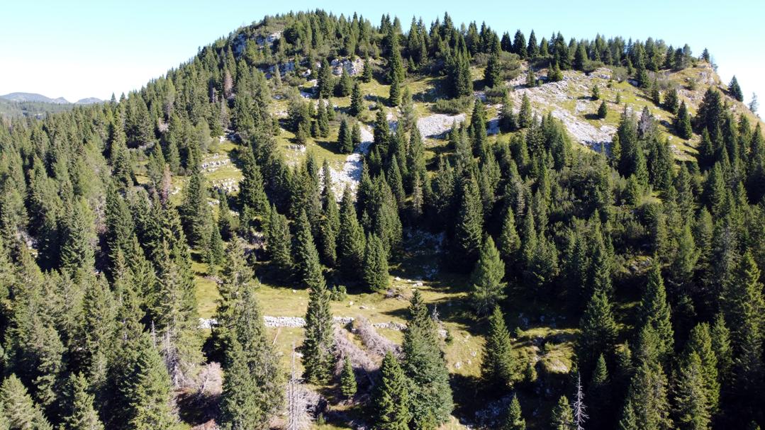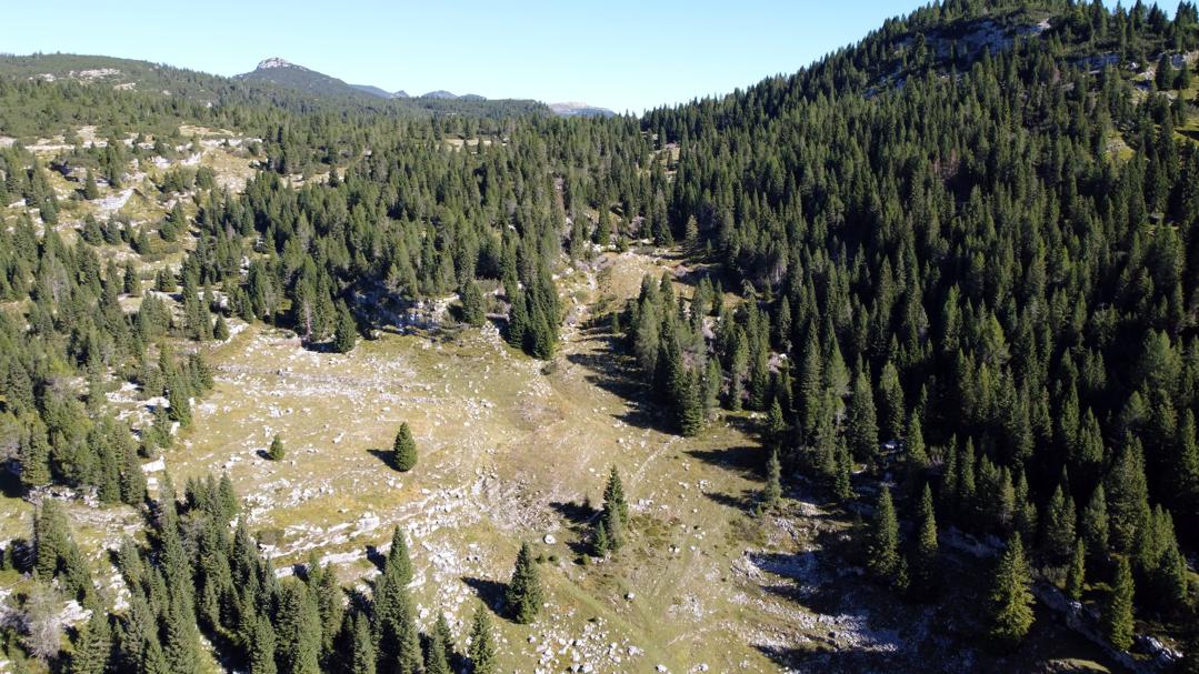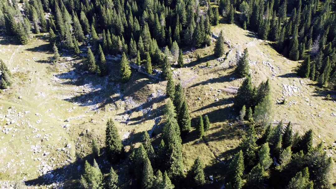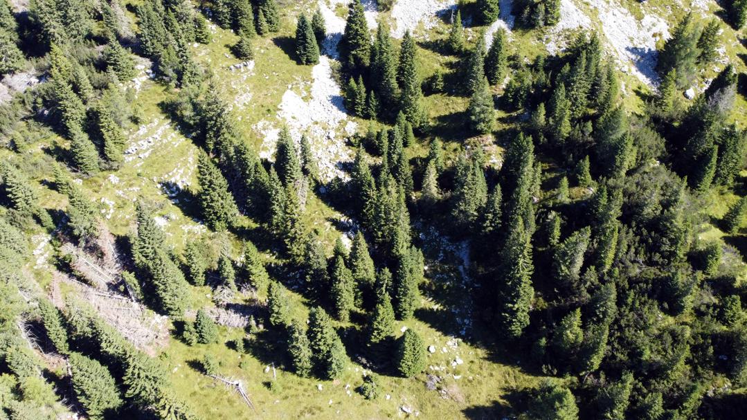 Per capire come arrivare alla cima, cercando i passaggi migliori e di evitare eventuali schianti di alberi, utilizziamo il drone che ci fa scovare alcuni punti di riferimento del percorso da intraprendere.
