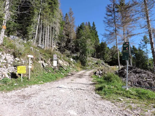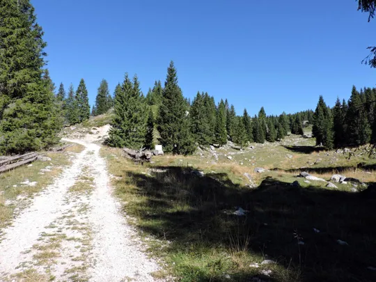 L'inizio del percorso è dall'ultimo tornante che porta a malga Zebio dove la strada diretta verso nord a Casara Zingarella è chiusa alla circolazione.