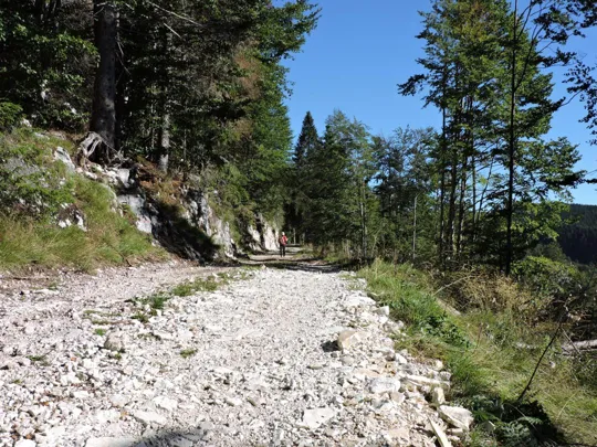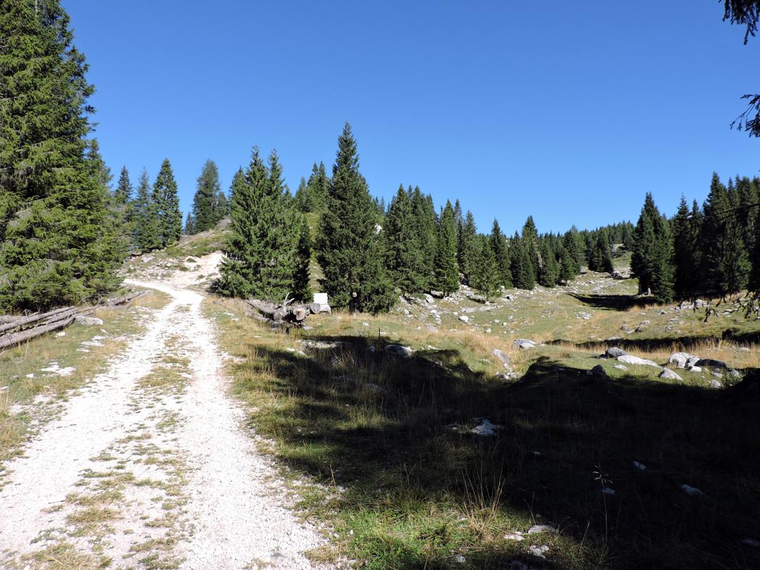 La strada è sempre leggermente in salita ed è molto agevole. Da dopo la tempesta Vaia si sono aperti molti scorci che permettono di vedere la sottostante valle e parte della piana di Asiago.