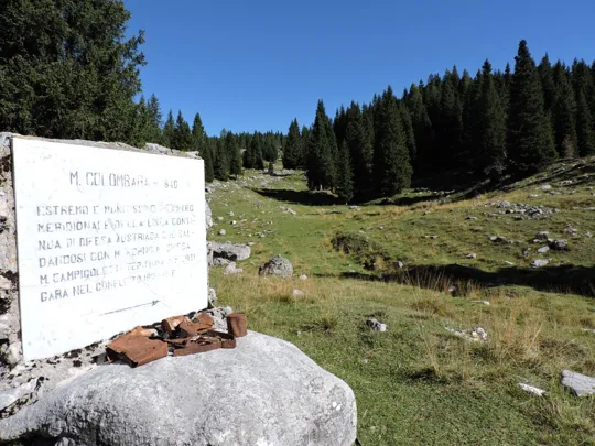 Il monte Colombara domina da ovest l'inizio della valle di Nos ed è stato un baluardo austro-ungarico lungo la linea di difesa che partiva dal monte Ortigara fino al forte Interrotto, passando per il monte Forno ed il monte Zebio. Poco si conosce di questo luogo che però presenta degli aspetti difensivi interessanti.