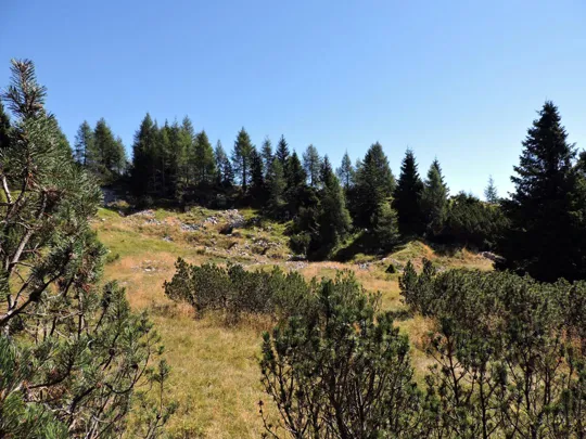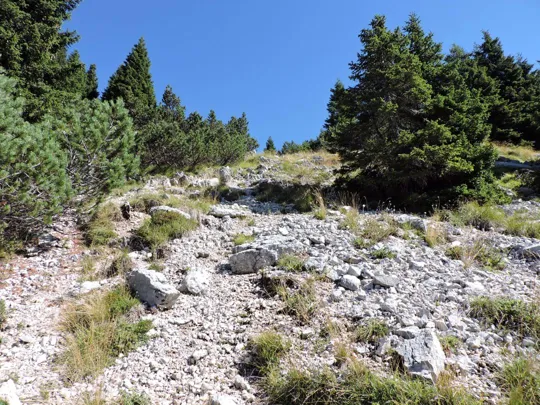 Abbiamo anche raggiunto la cima del monte, ma è molto difficoltoso arrivarci per la presenza dei mughi che oltre a bloccare la strada impediscono anche di poter vedere il panorama.