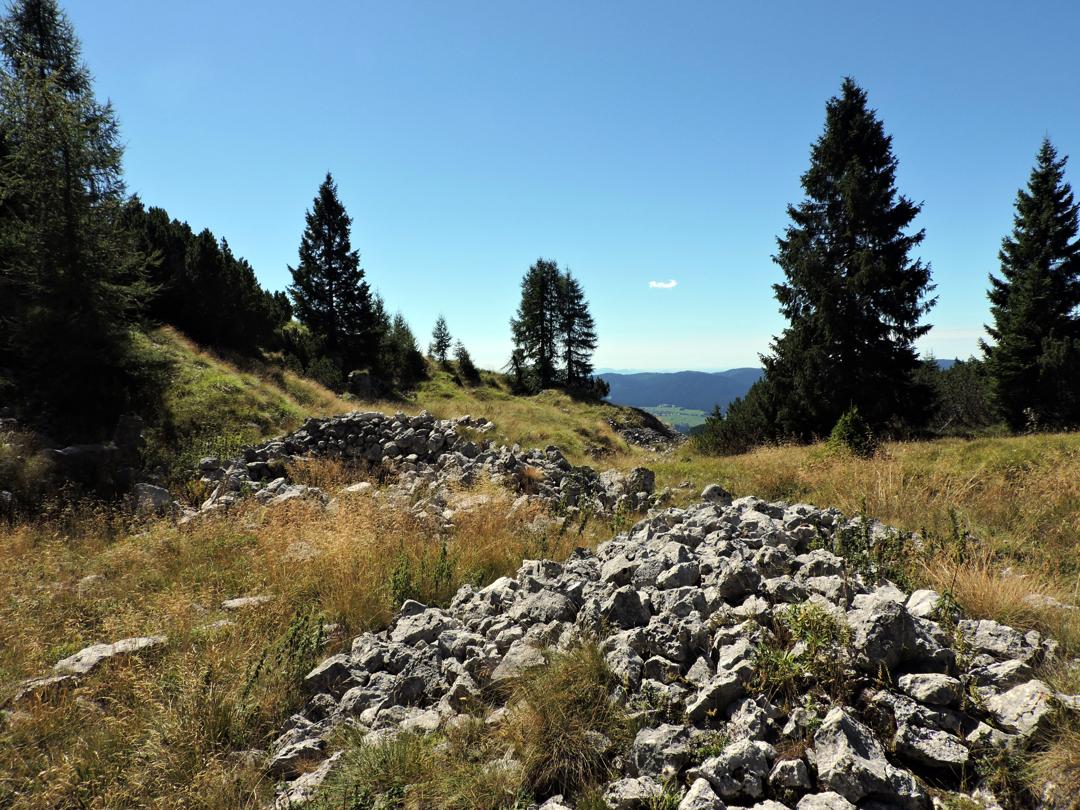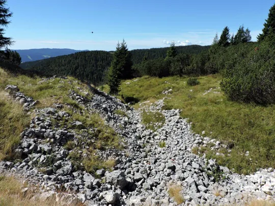 Sul ciglio ovest della montagna, superata l'area ruderi e salendo con qualche difficoltà, si incontra un'ulteriore trincea ma si può vedere questo: