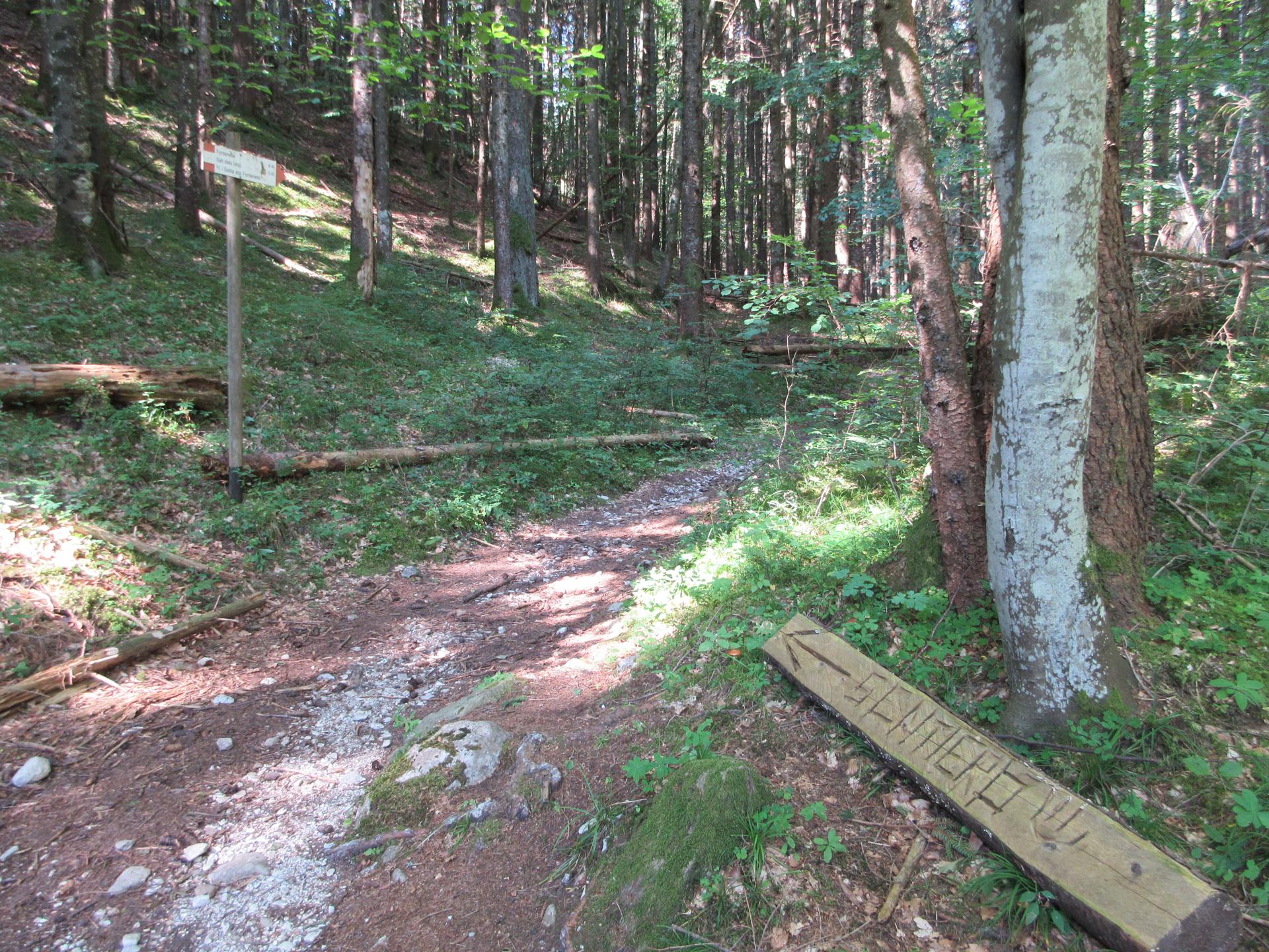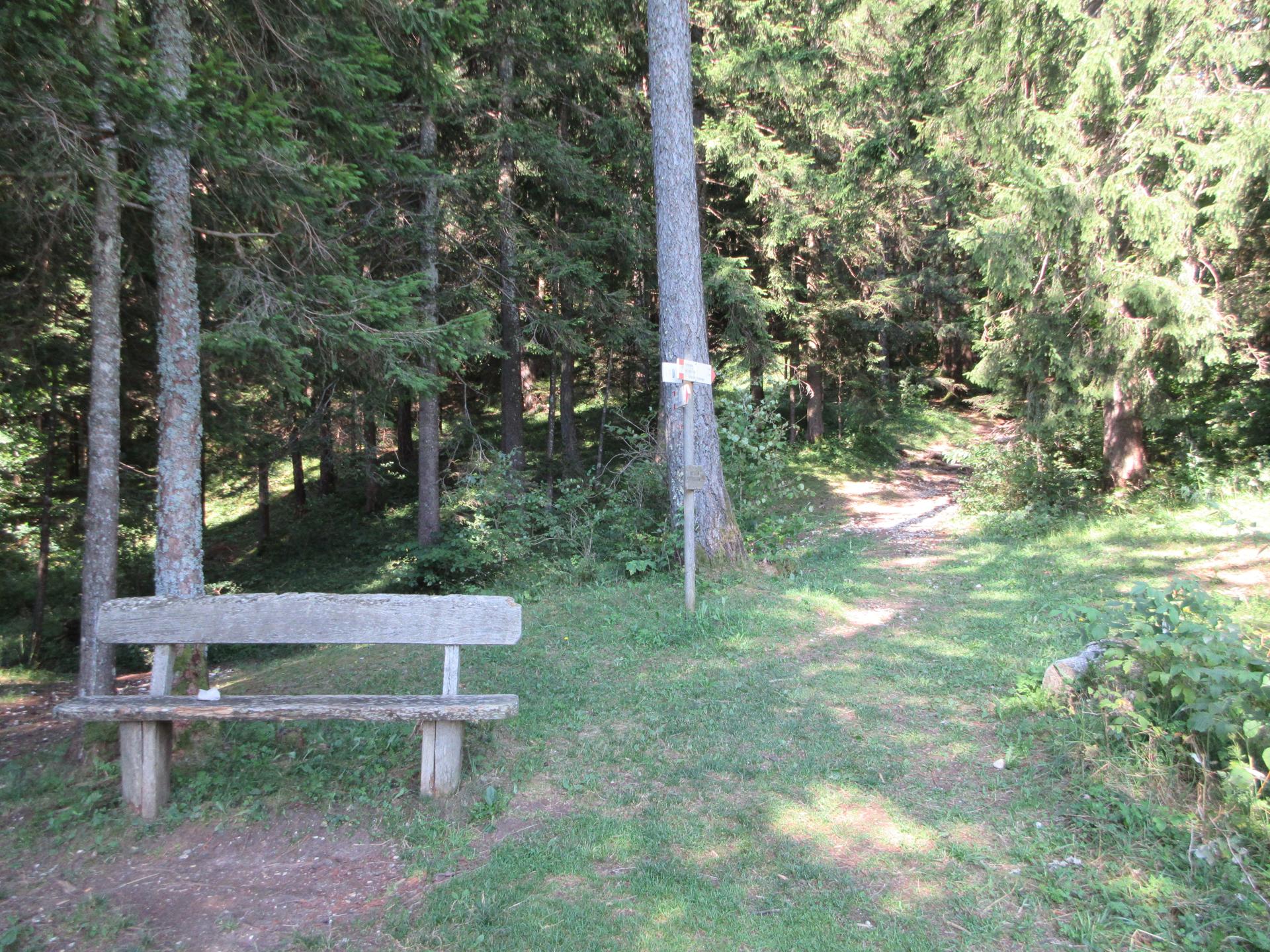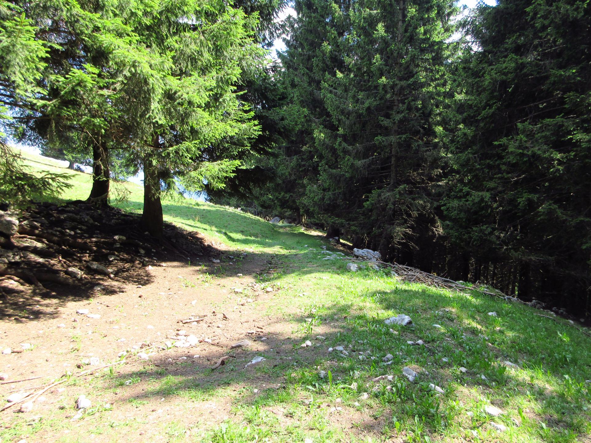Superato il sentiero su prato si arriva al bosco dove si svolta a destra in salita.