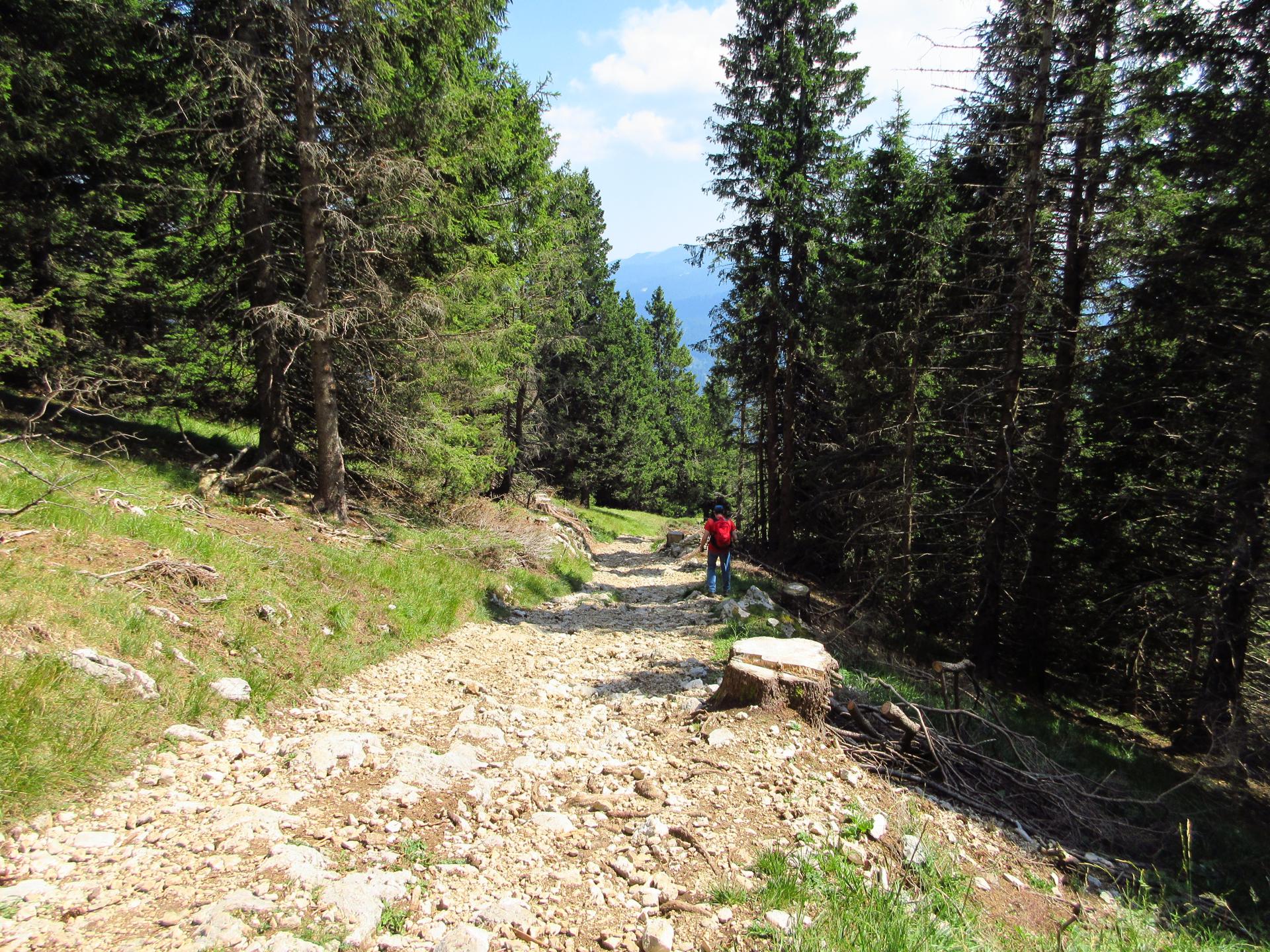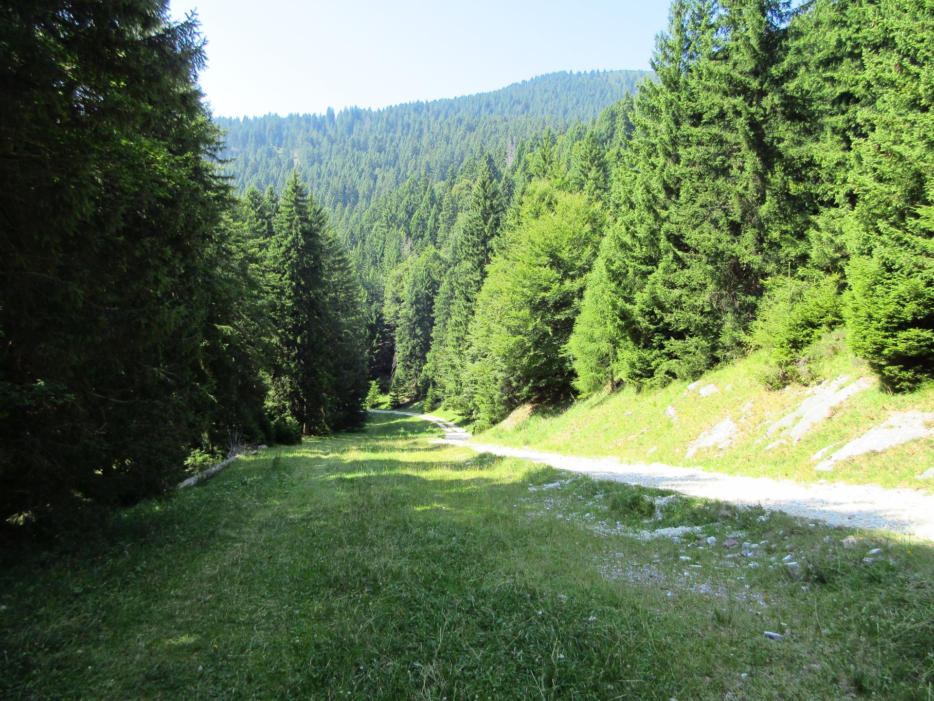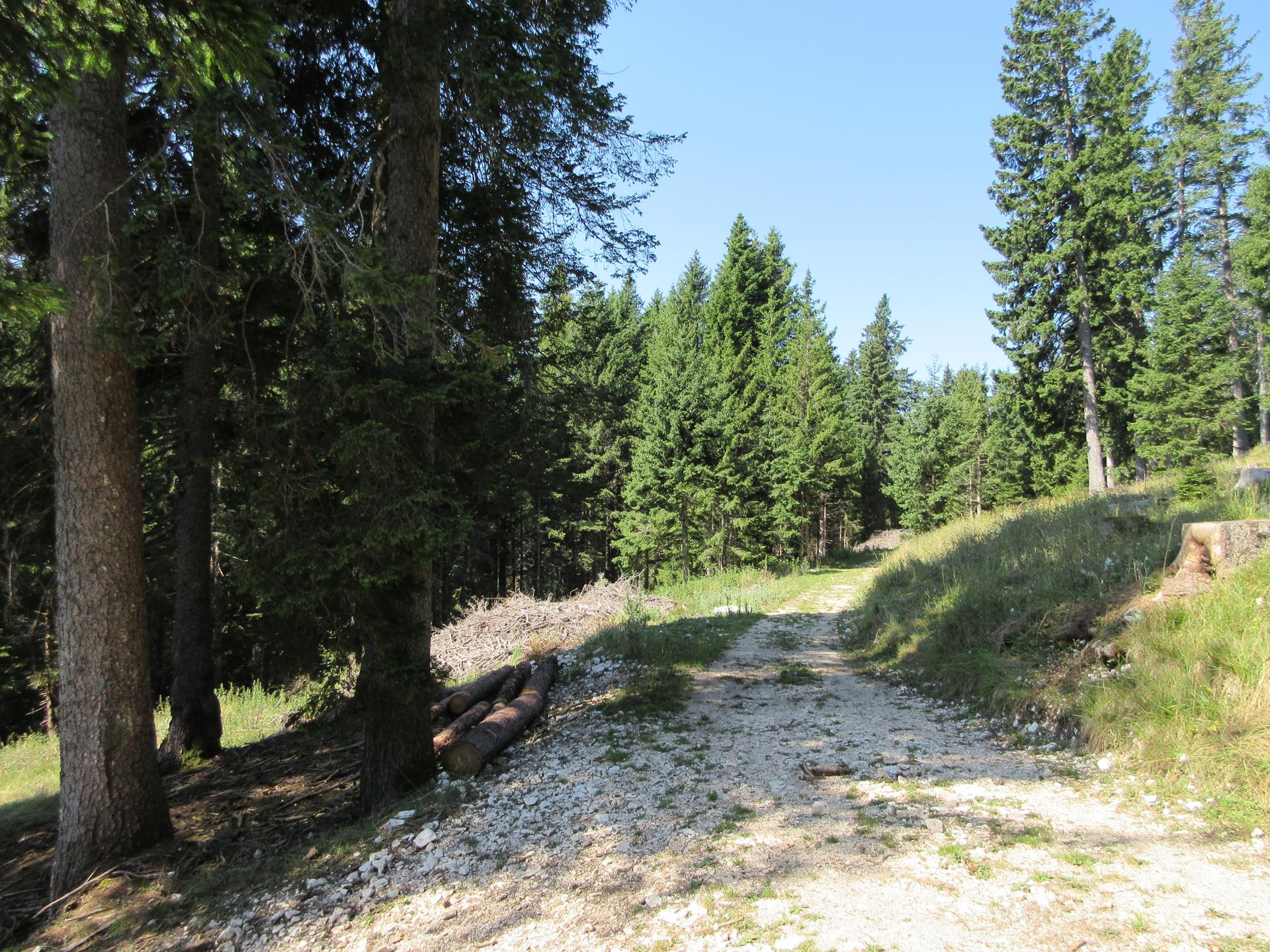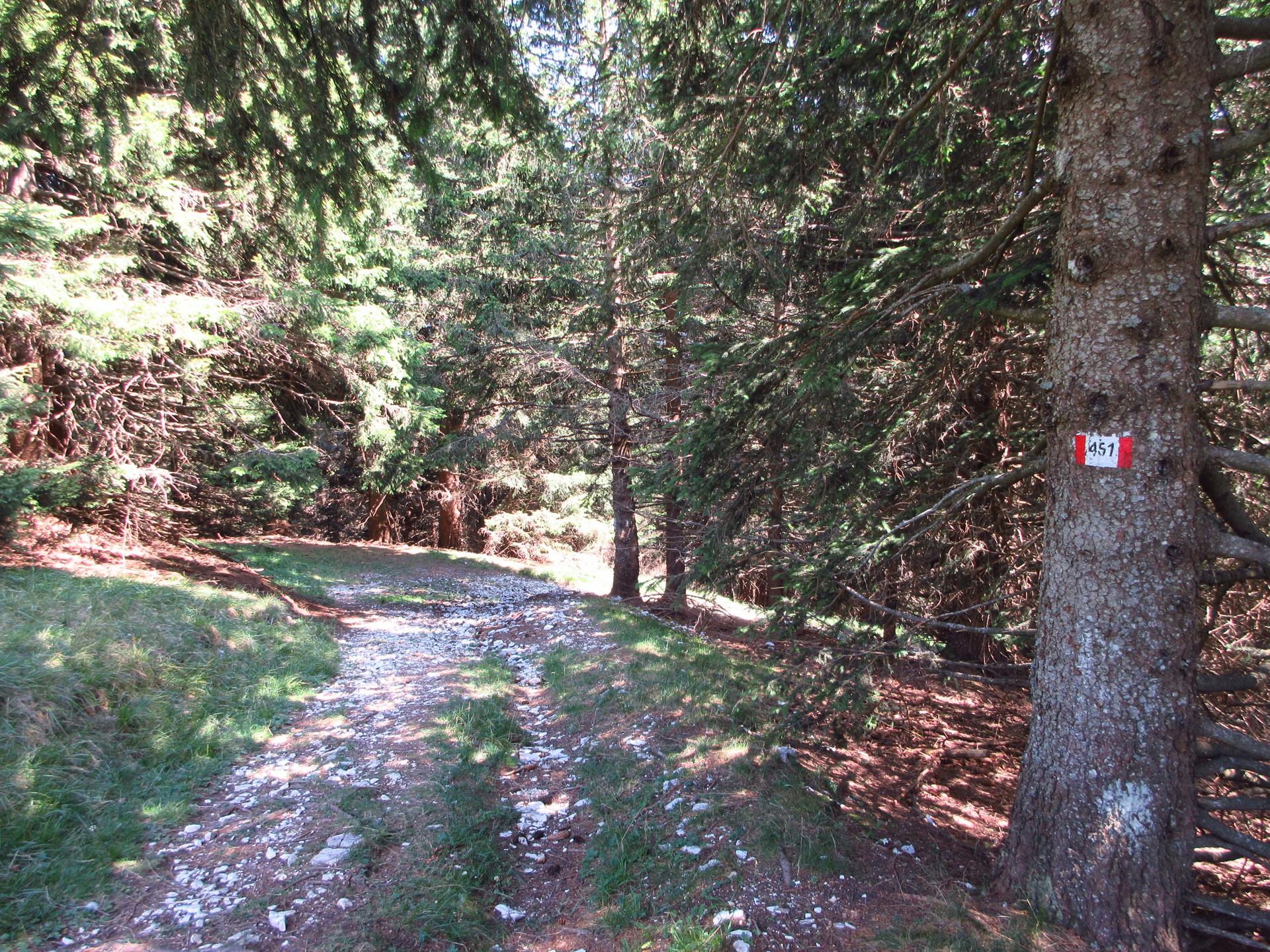 Il sentiero termina su una strada forestale, allo Spiatz Picol, dove continuando la salita a destra, percorriamo per un tratto il segnavia 451.