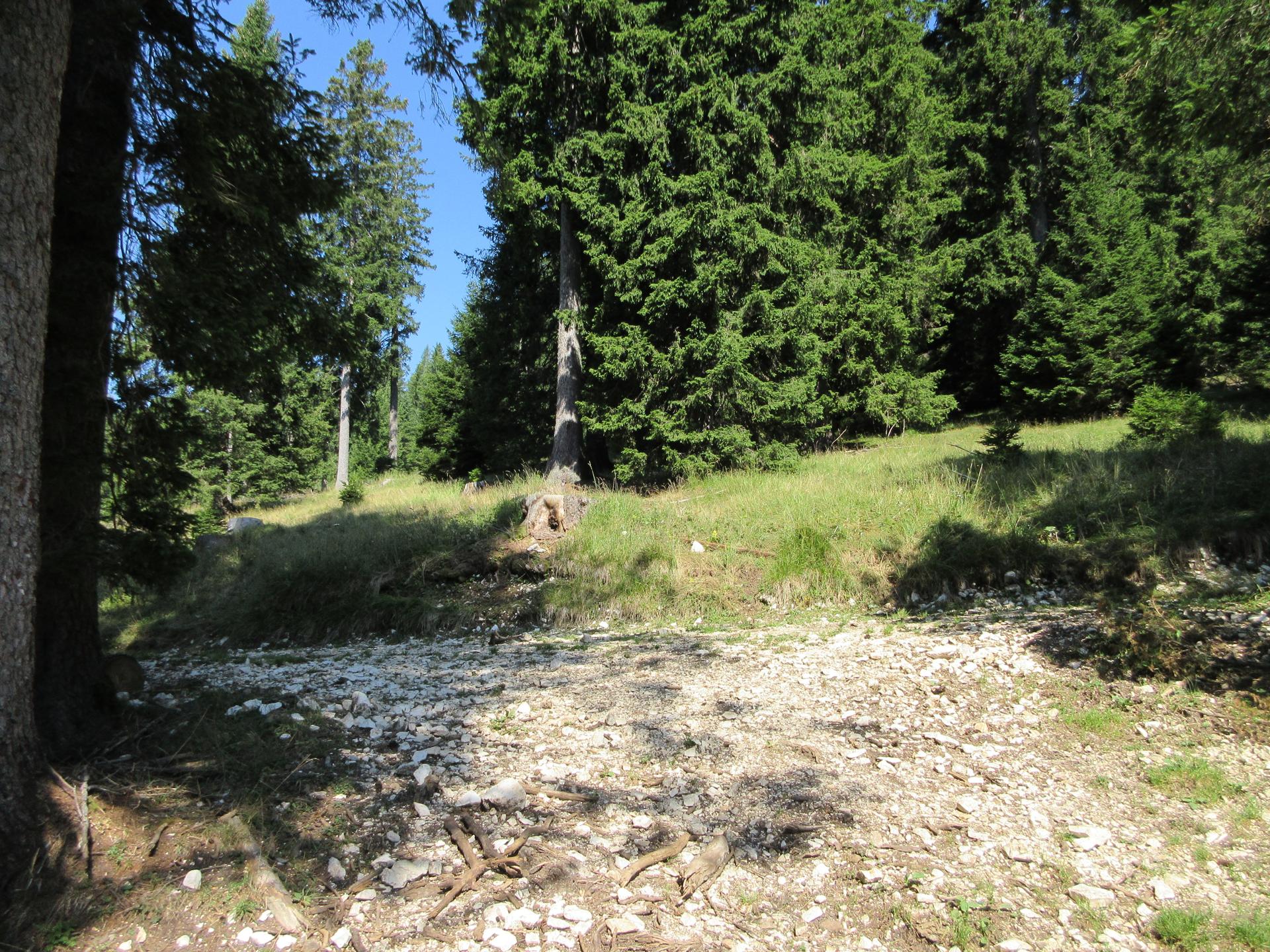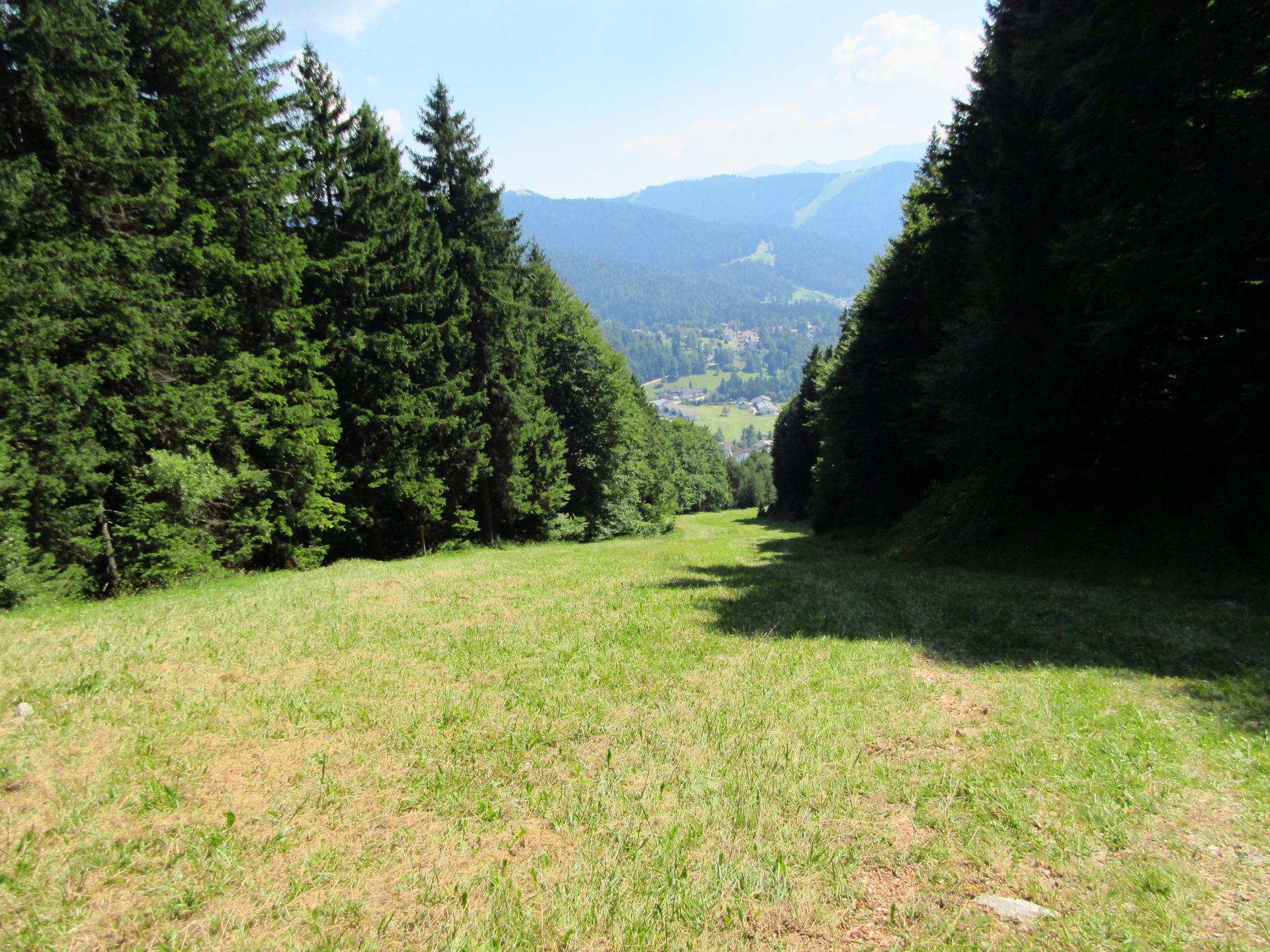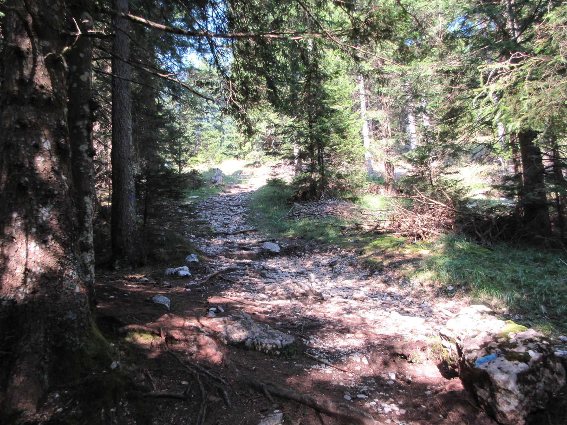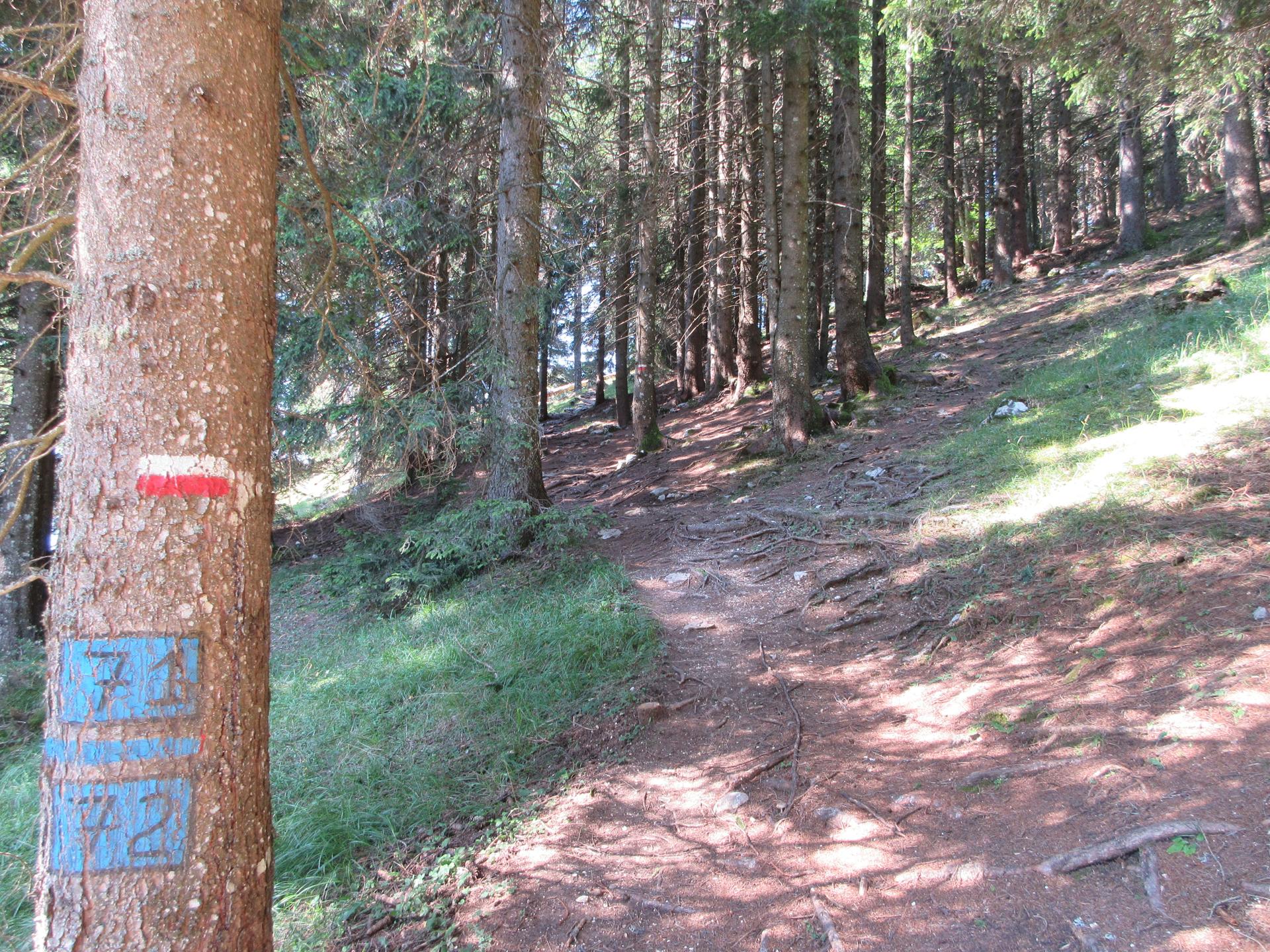 Il sentiero termina su una strada forestale, allo Spiatz Picol, dove continuando la salita a destra, percorriamo per un tratto il segnavia 451.