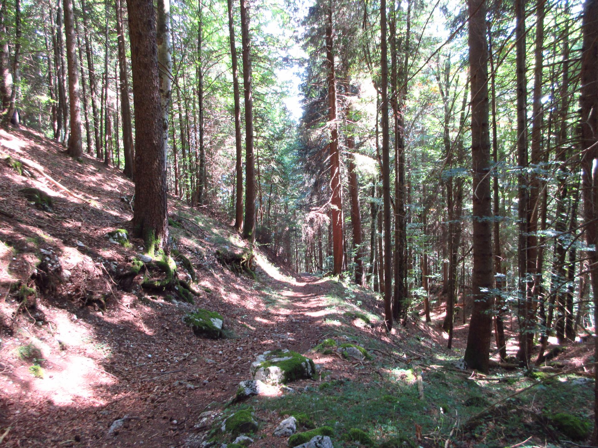 Dopo una prima parte su prato si rientra nel bosco, fate attenzione alla segnaletica è facile uscire dal sentiero e ritrovarsi su un percorso improvvisato, ma che comunque porta in cima. Qui le salite diventano via via sempre più impegnative.