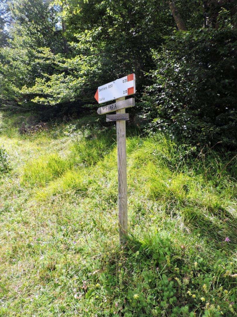 Il sentiero inizia dalla strada che da Campomulo porta verso l'Ortigara proprio sopra il Rifugio Campomuletto. Una tabella nei pressi della strada indica la via per "Fiara".