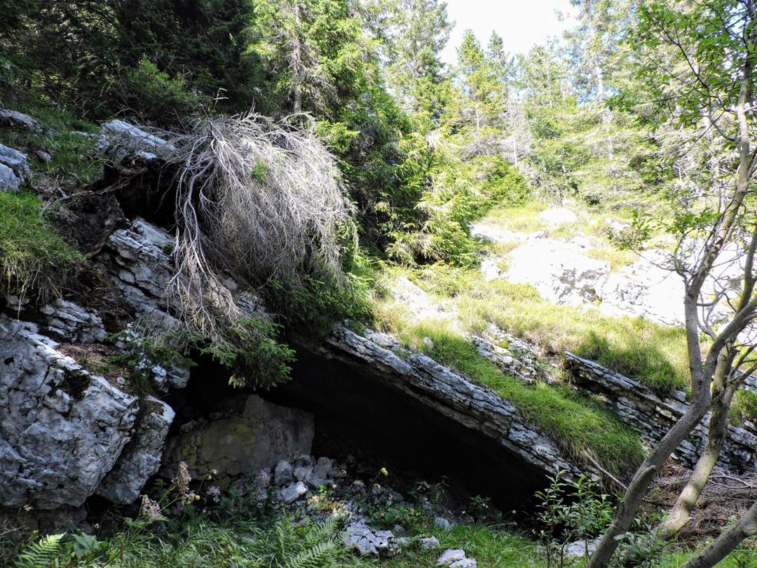 In un corridoio leggermente più ampio è stata ricavata una galleria con doppia uscita. Rispetto al piano di camminamento l'ingresso è decisamente più alto (chissà perché) ed al suo interno una specie di camino naturale guarda verso l'alto. Questo passaggio porta a delle trincee sulla cima del monte.