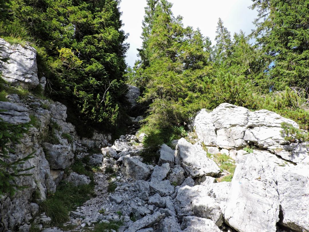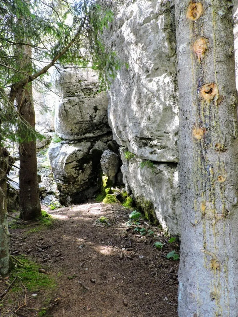 Si lascia il sentiero e si prosegue in direzione della parete rocciosa. Sulla destra si trova il passaggio che porta all'ingresso del labirinto.