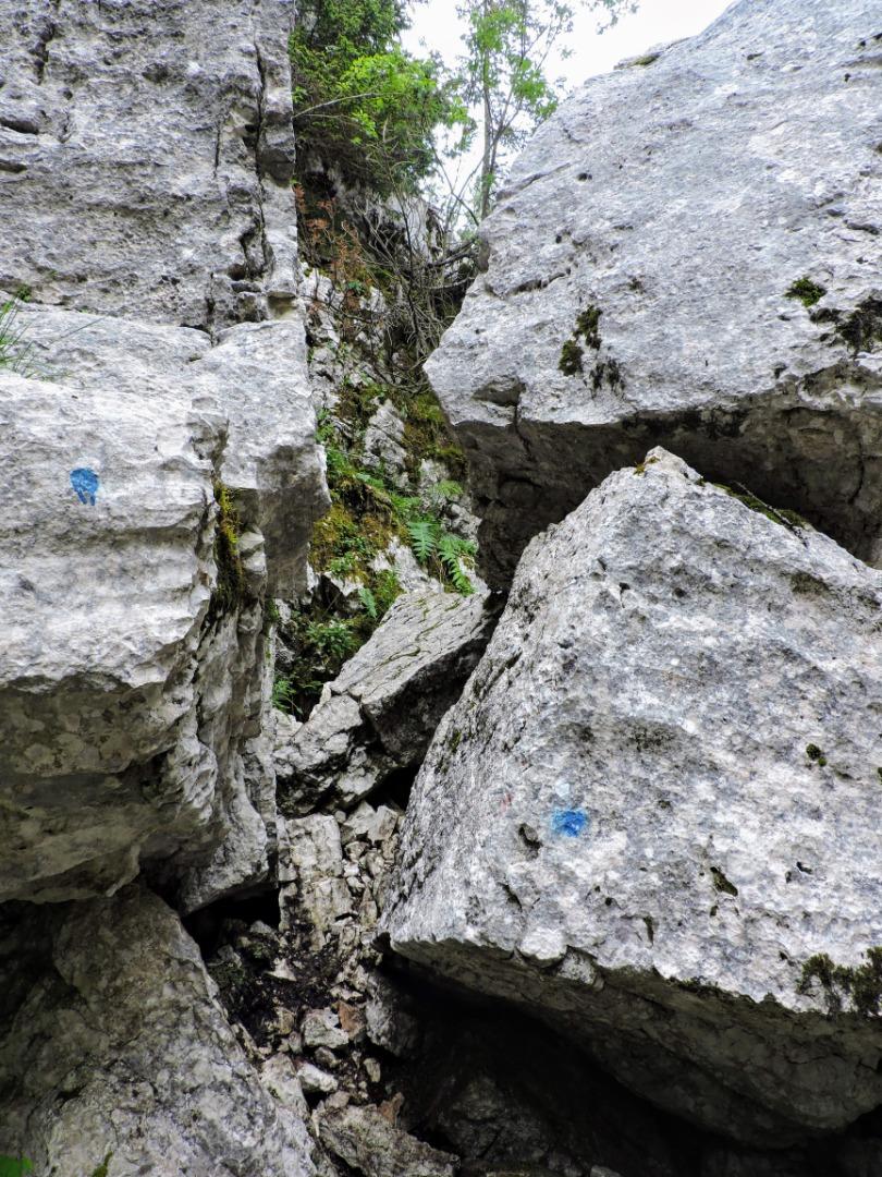 Non tutti i passaggi sono semplici da fare, in alcuni casi bisogna scavalcare qualche masso. Comunque i segni azzurri aiutano a seguire il sentiero.