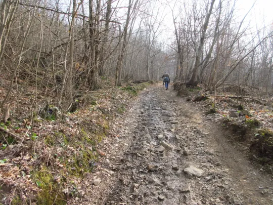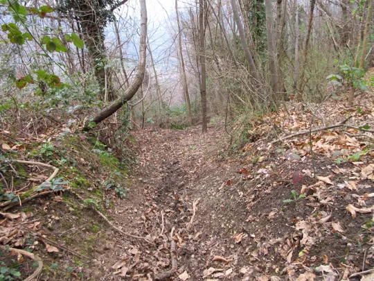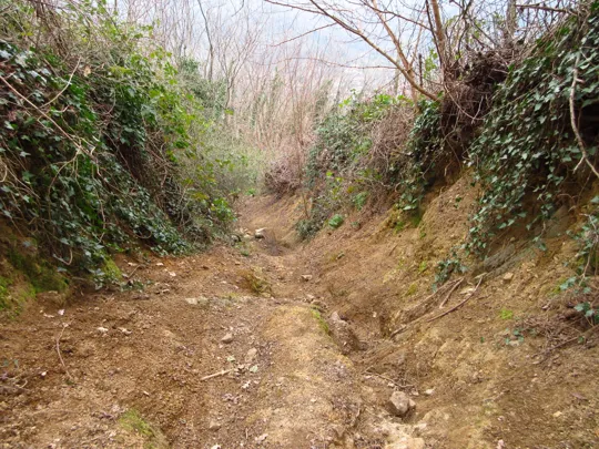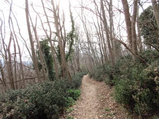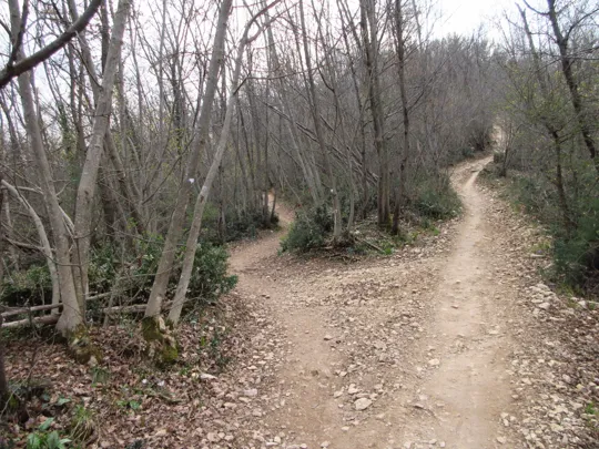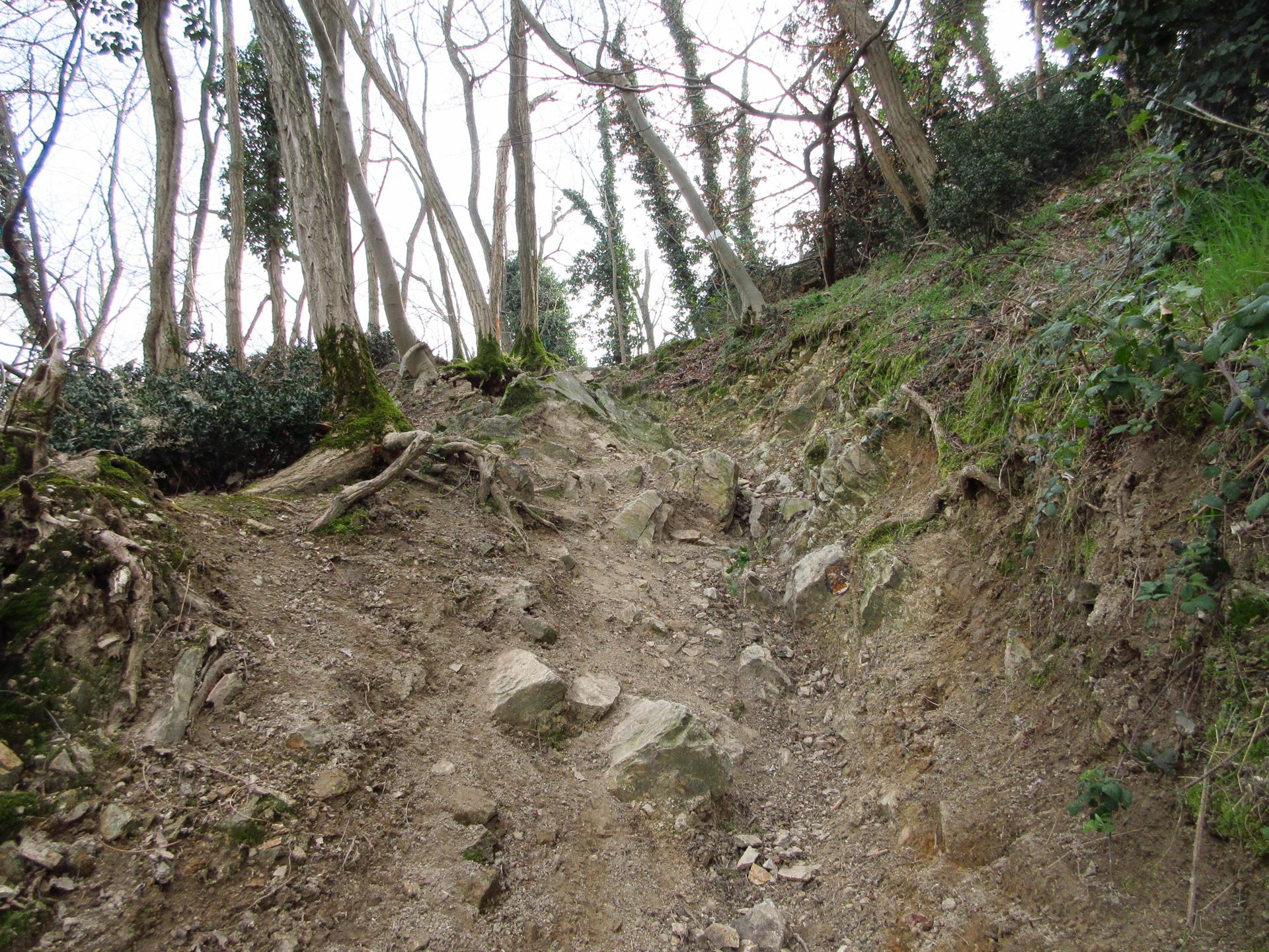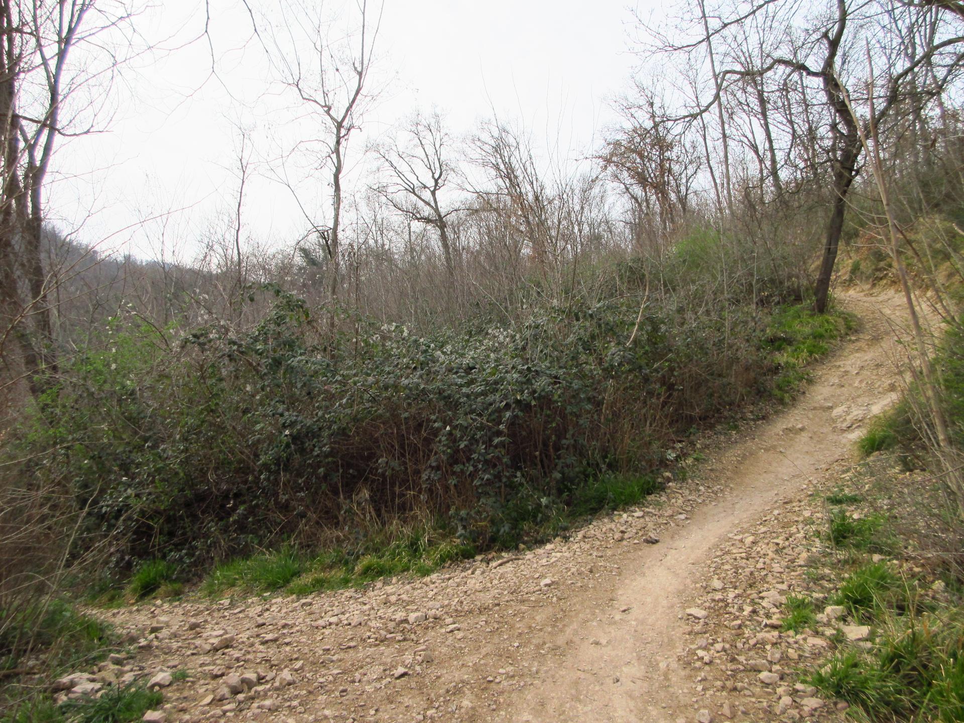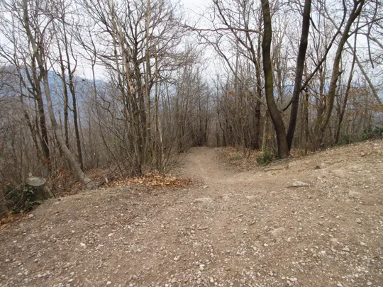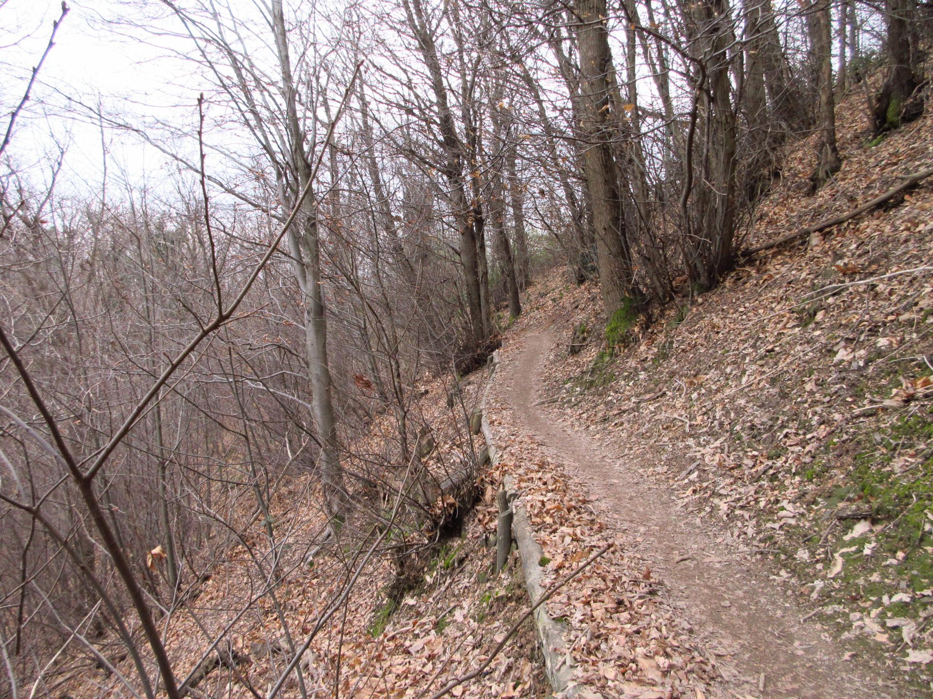 Questo sentiero si ricongiunge al sentiero nr.10 già percorso all'andata e che ripercorriamo per un centinaio di metri fino a trovare delle tracce di un altro sentiero che scende in direzione nord-est. Nel periodo invernale questo percorso è poco visibile per la presenza di foglie, nel caso di insicurezza proseguite per il sentiero dell'andata.