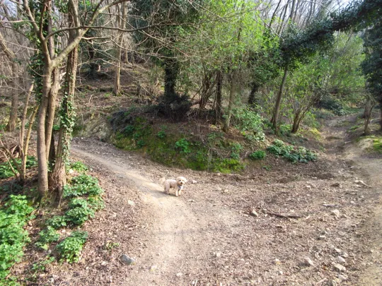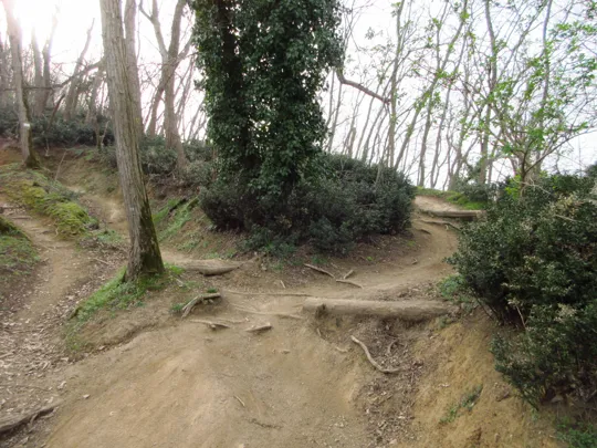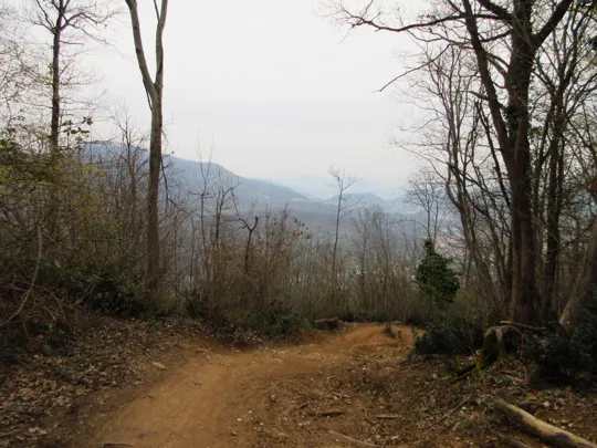 Ad una leggera curva a destra, poco prima della sbarra che porta alla piantagione di antenne, il sentiero scende a sinistra in direzione nord-est. Questo percorso è definito "Bluline" in alcune mappe.