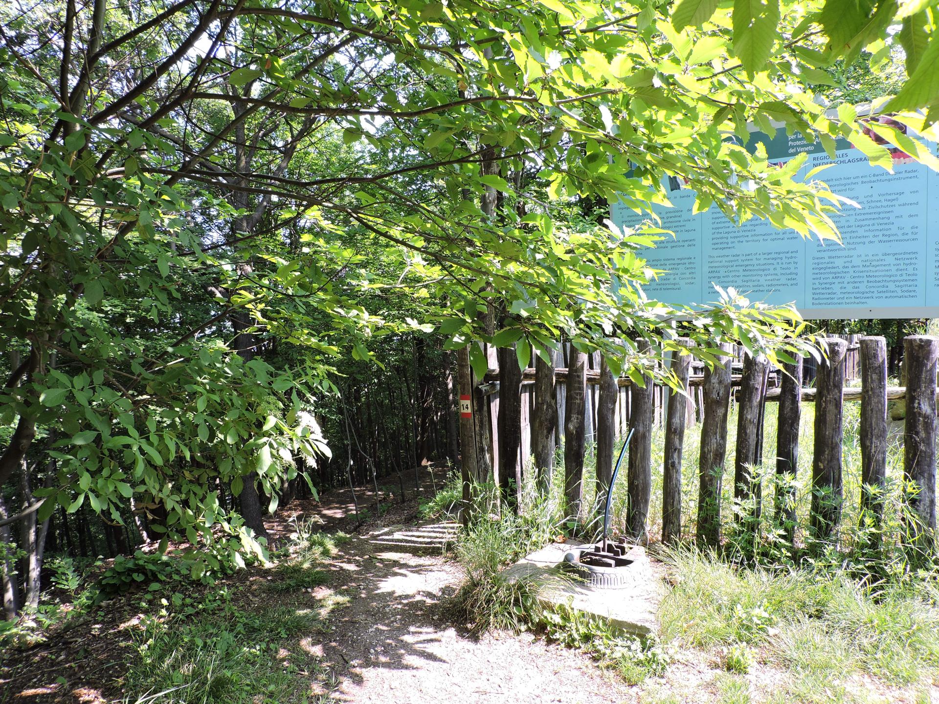 Dopo circa 25 minuti dall'inizio del percorso si arriva al radar meteorologico. La palla è solo la copertura del radar. A fondo pagina ci sono maggiori informazioni sulla storia e sul funzionamento.