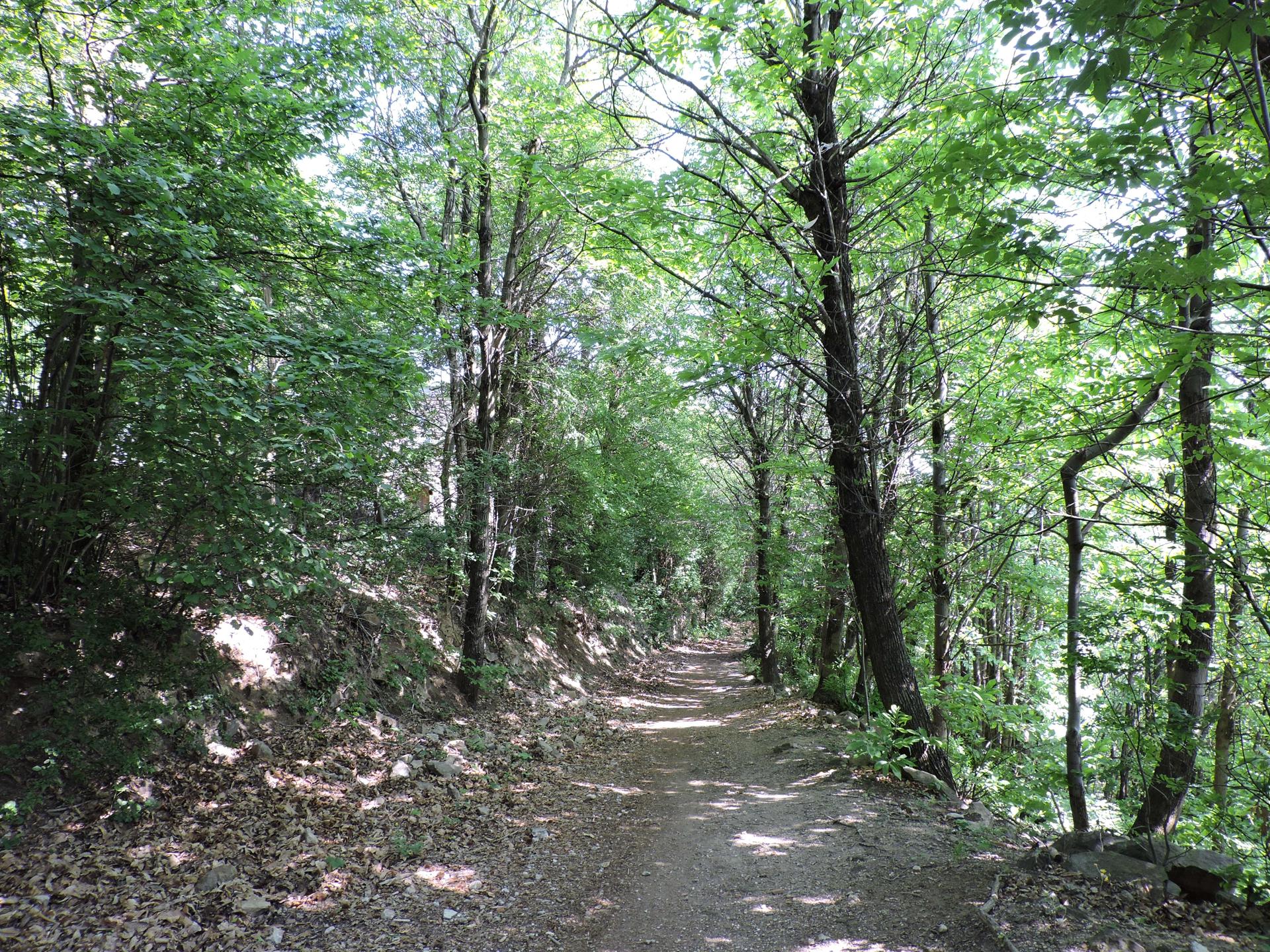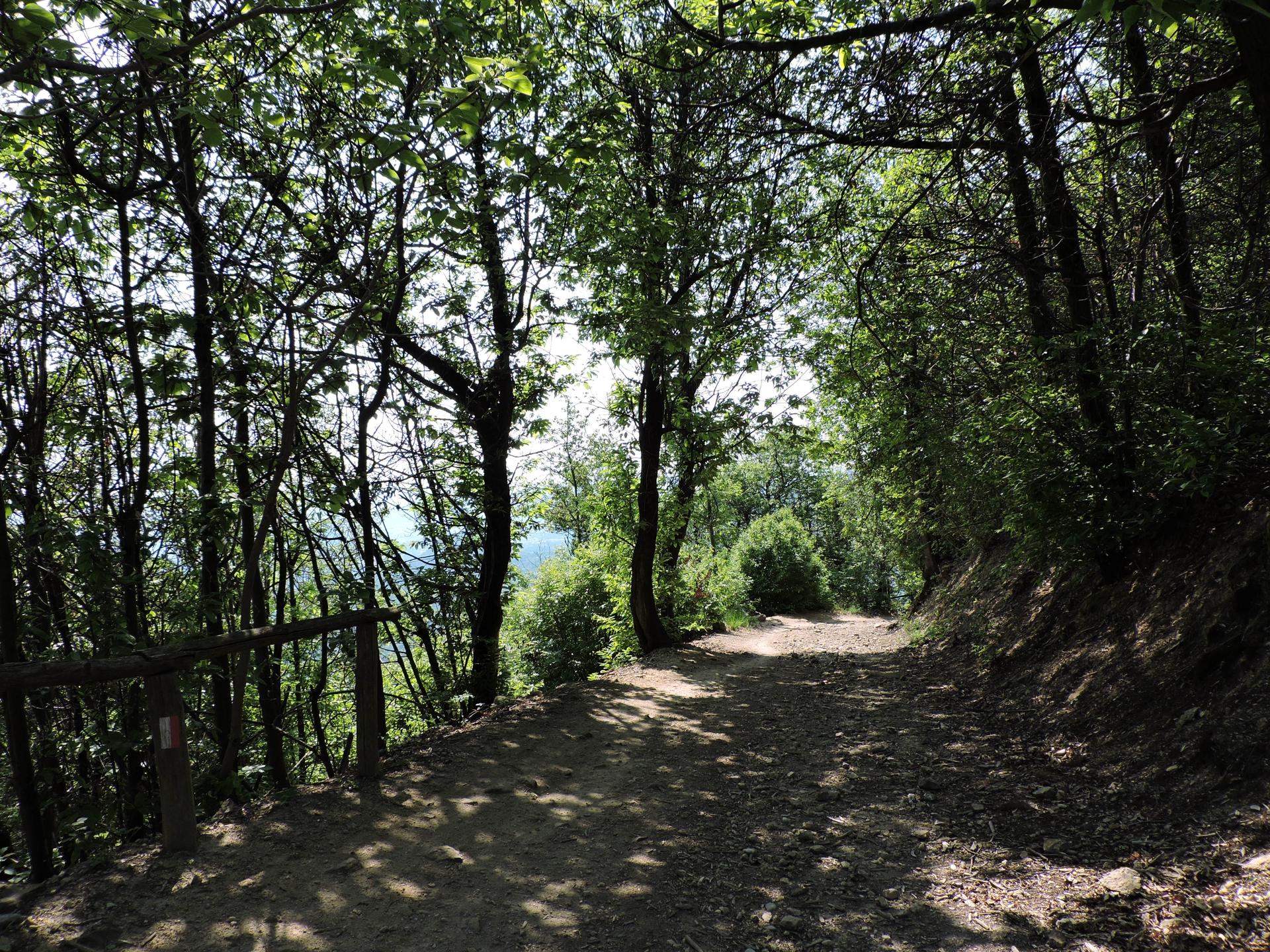 Il sentiero nel versante nord percorre una larga pista forestale attorniata da castagneto che ospita individui di acero di monte (Acer pseudoplatanus), rovere, carpino bianco (Carpinus betulus), ciavardello (Sorbus torminalis) e orniello (Fraxinus ornus). Sul ciglio della strada spuntano alcuni alberi dal portamento singolare, alberi di paulonia (Paulownia tormentosa) (chiamata così in onore di Anna Paulovna figlia di Paolo I, zar di Russia) di provenienza asiatica dalla bella infiorescenza, dalle foglie grandi e dal rapido accrescimento.