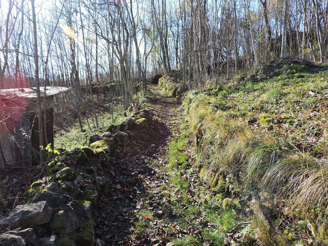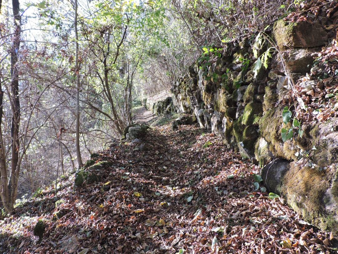 Sopra all'abitato si attraversa una zona di aree delimitate e terrazzate, forse antichi orti.