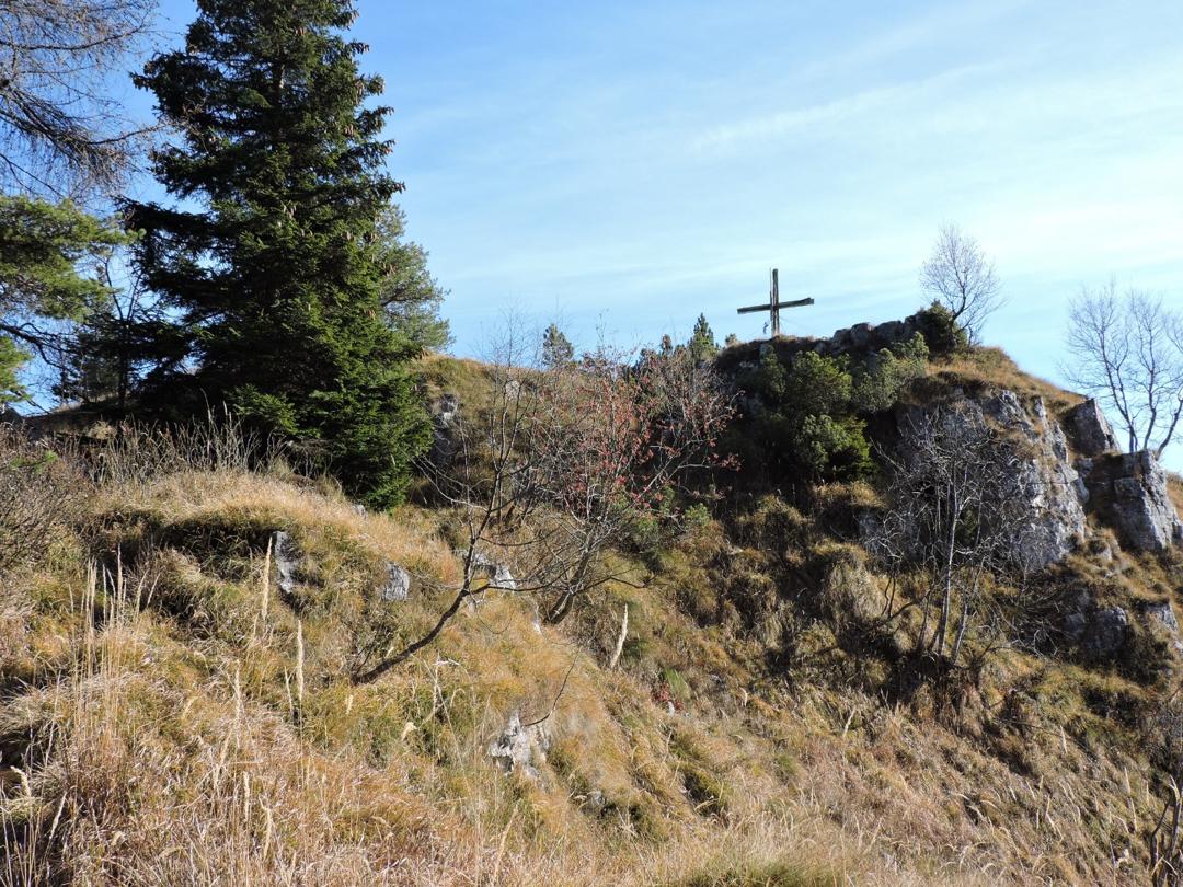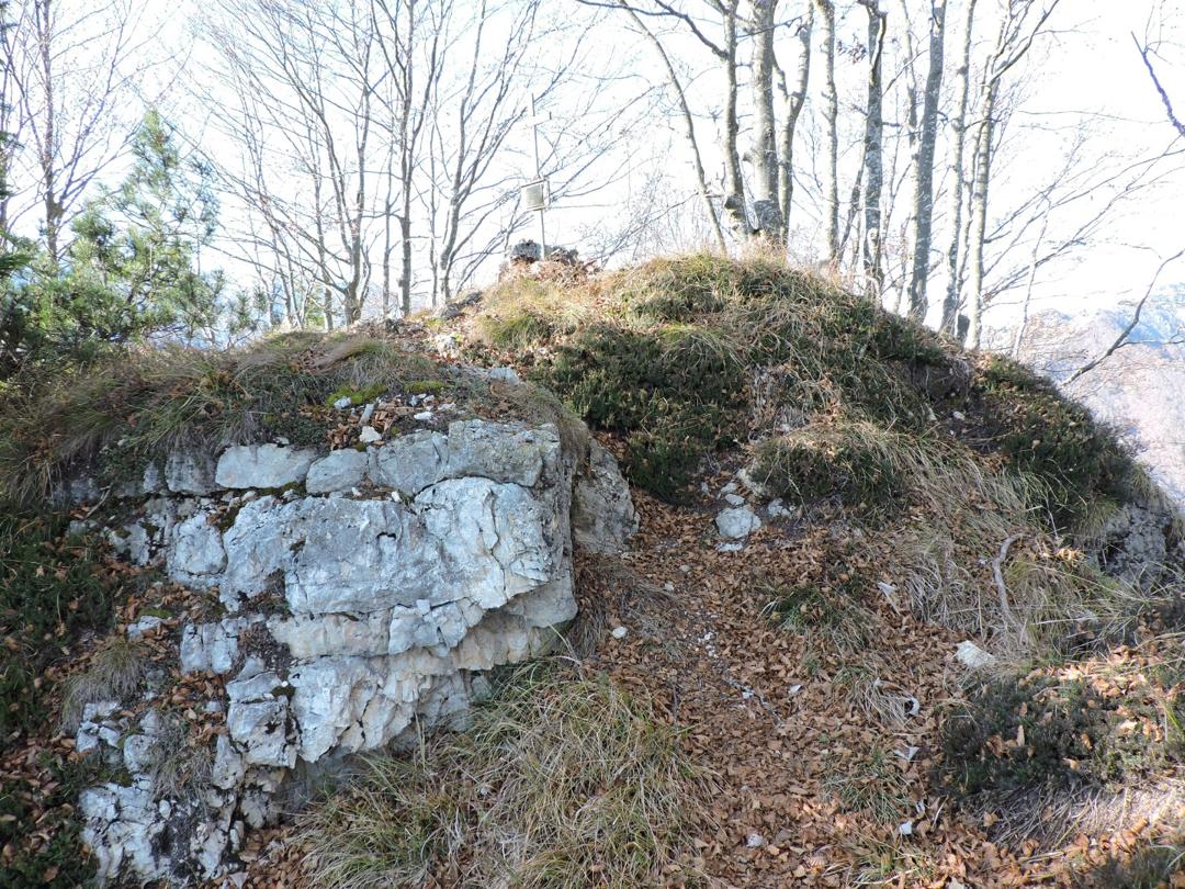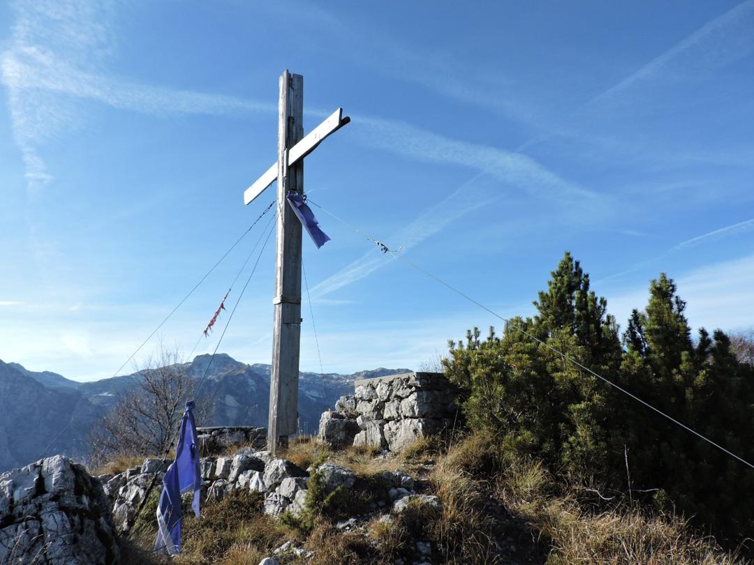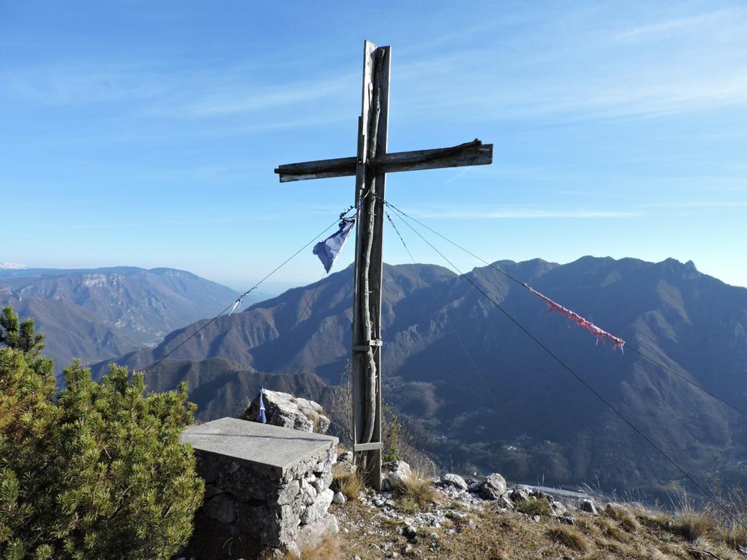 Sulla cima del monte Maio una piccola croce e qualche trincea. Segni evidenti della Grande Guerra.