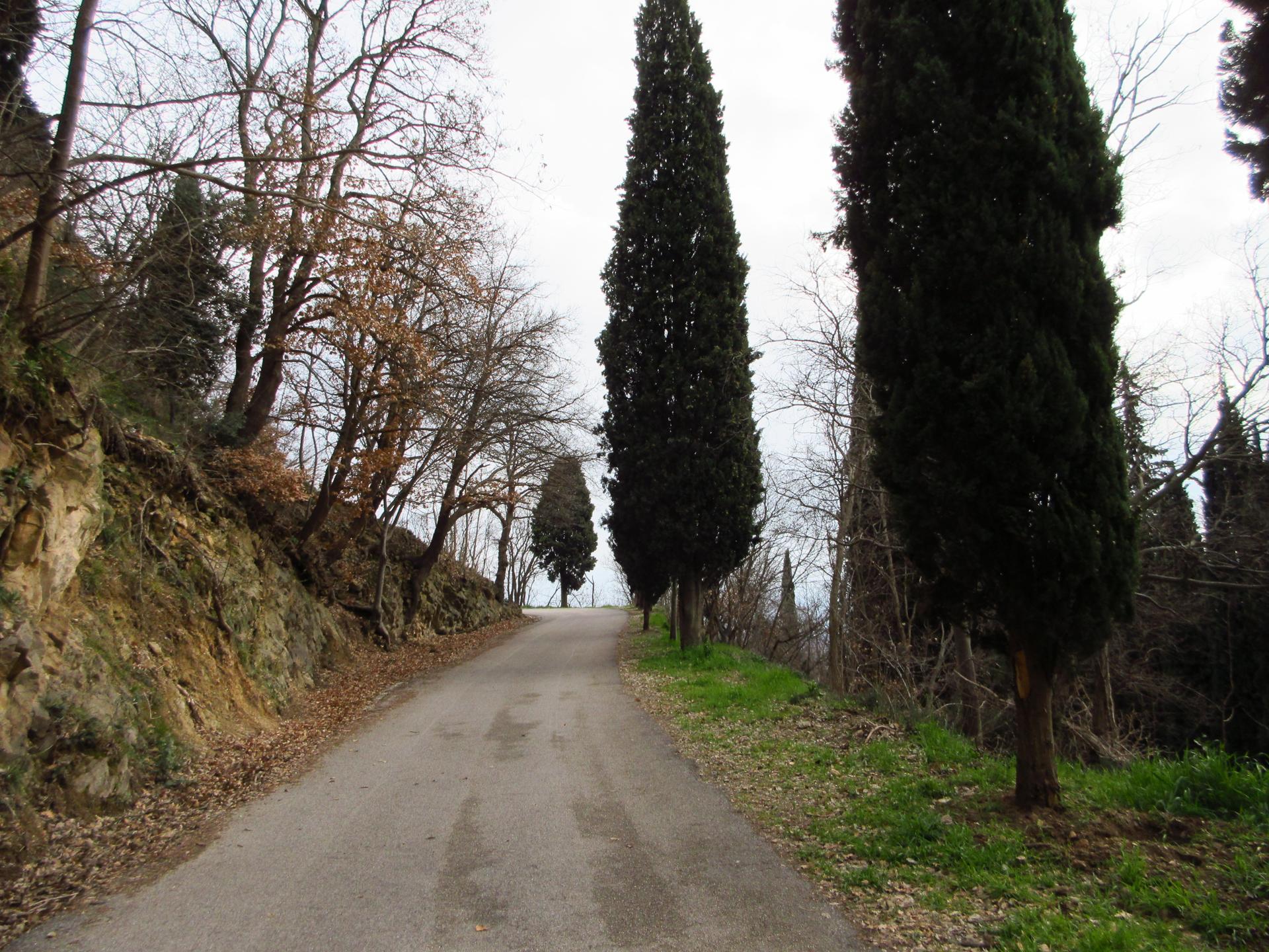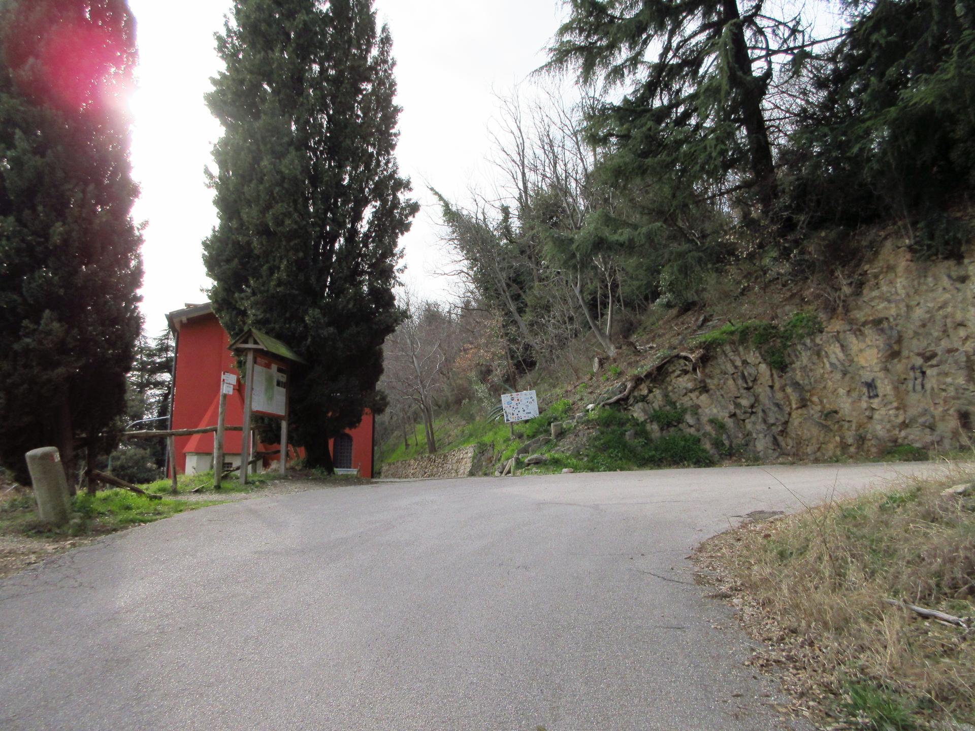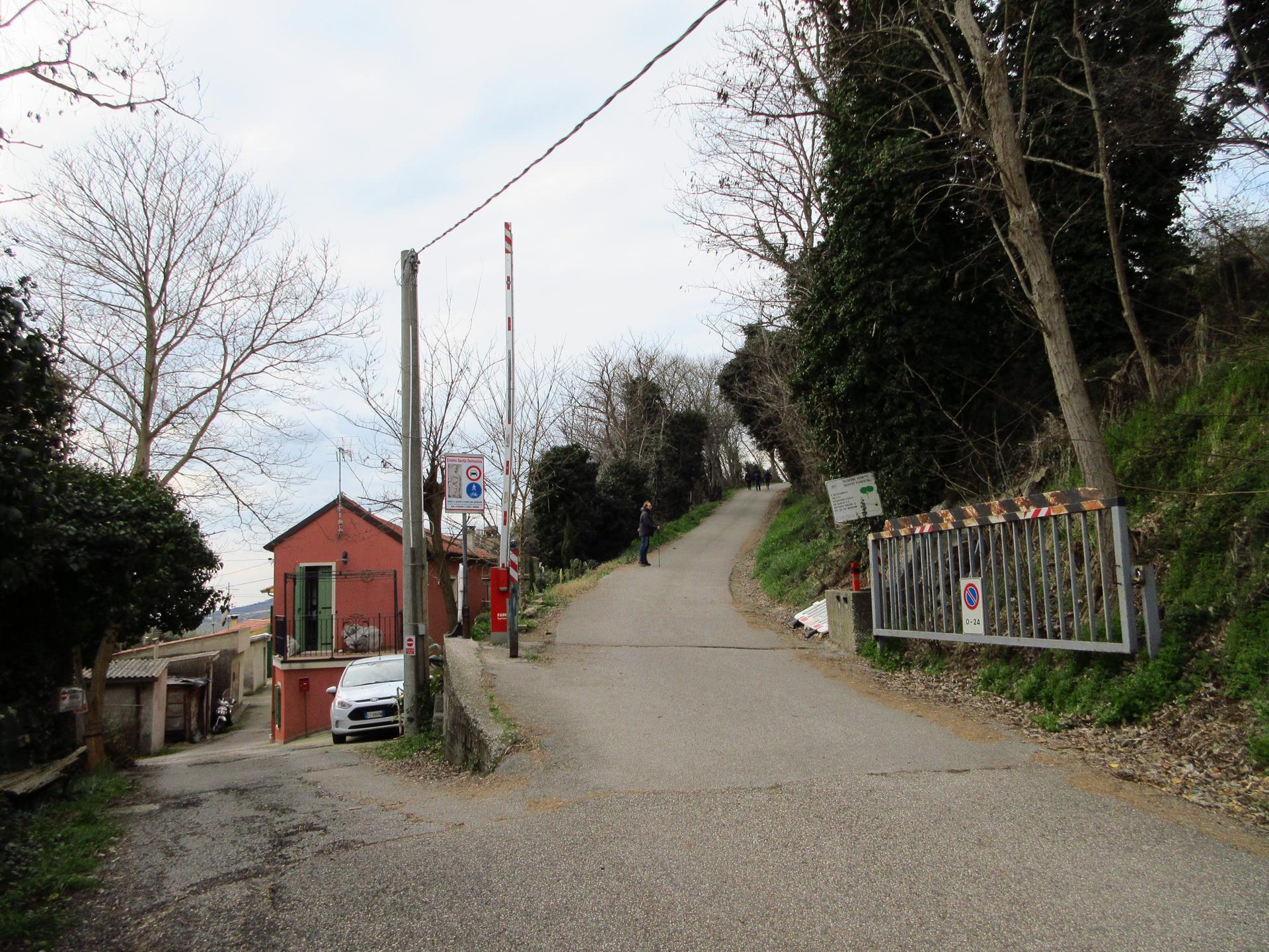 La strada porta all'eremo di Santa Domenica ed è chiusa al traffico dopo circa 400 metri.