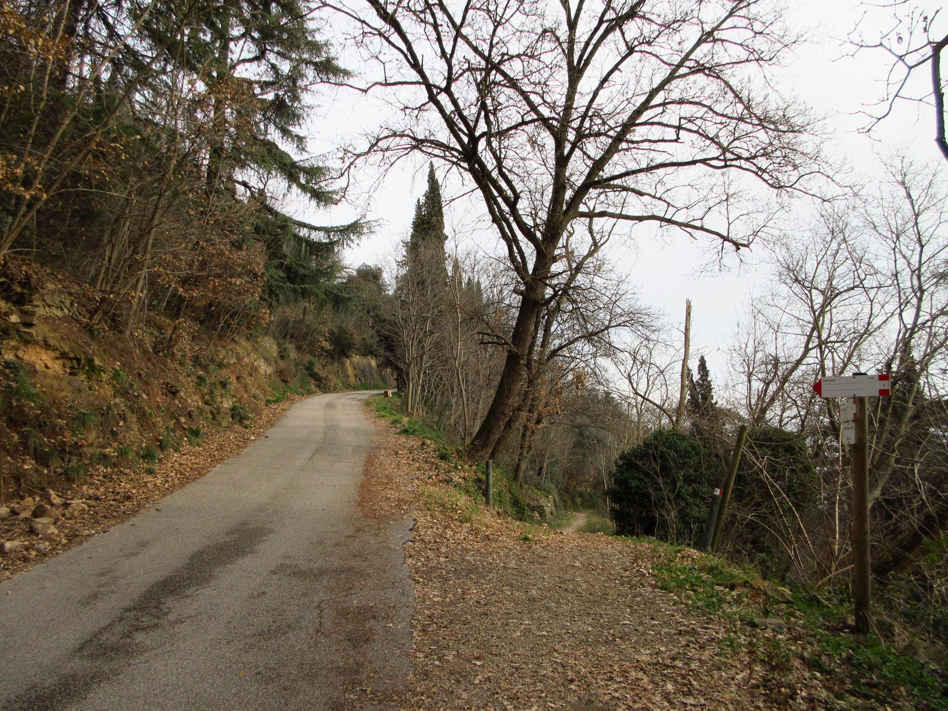 Ad un successivo incrocio privo di segnaletica rimaniamo sul percorso principale che prosegue in salita.
