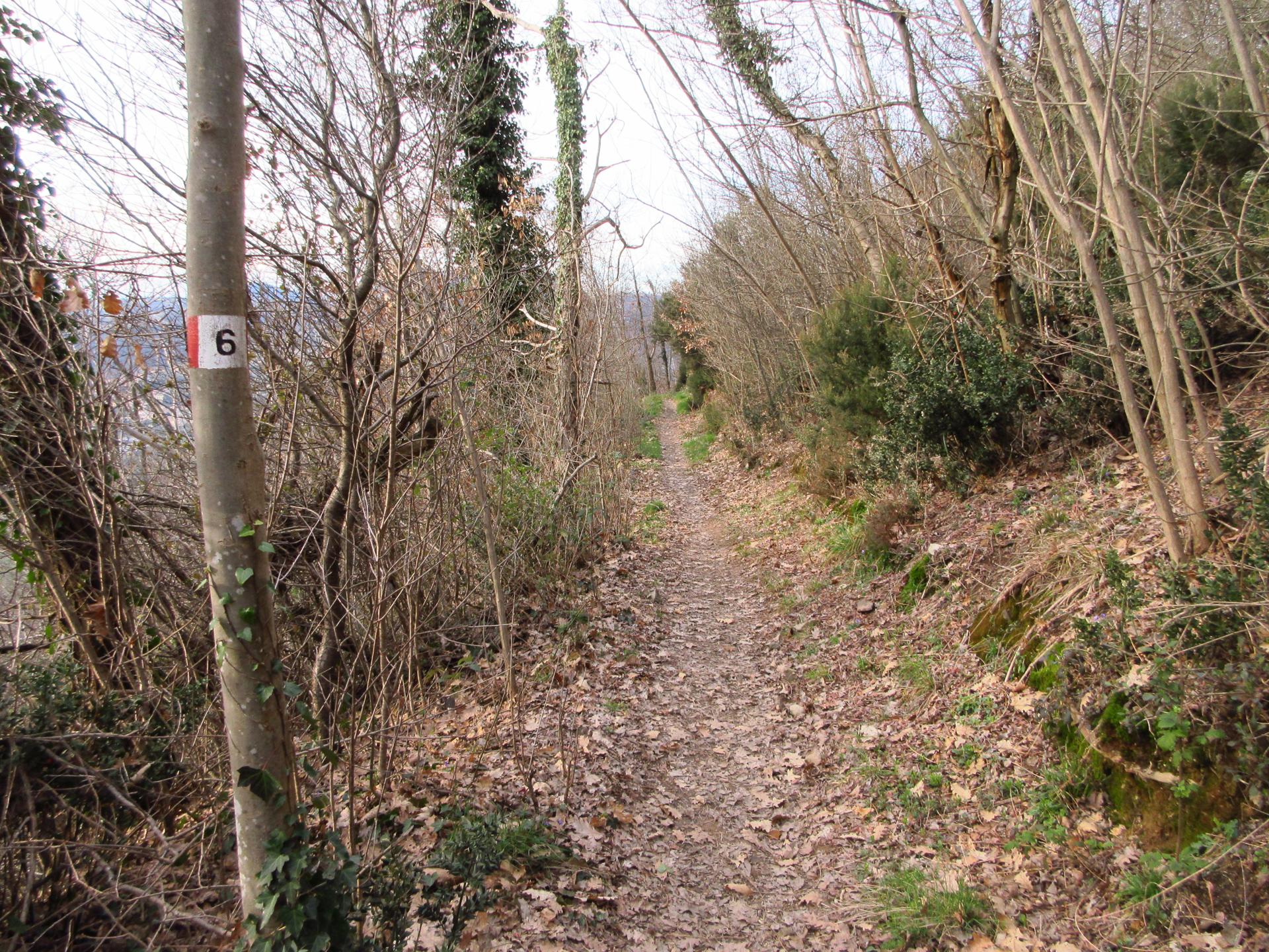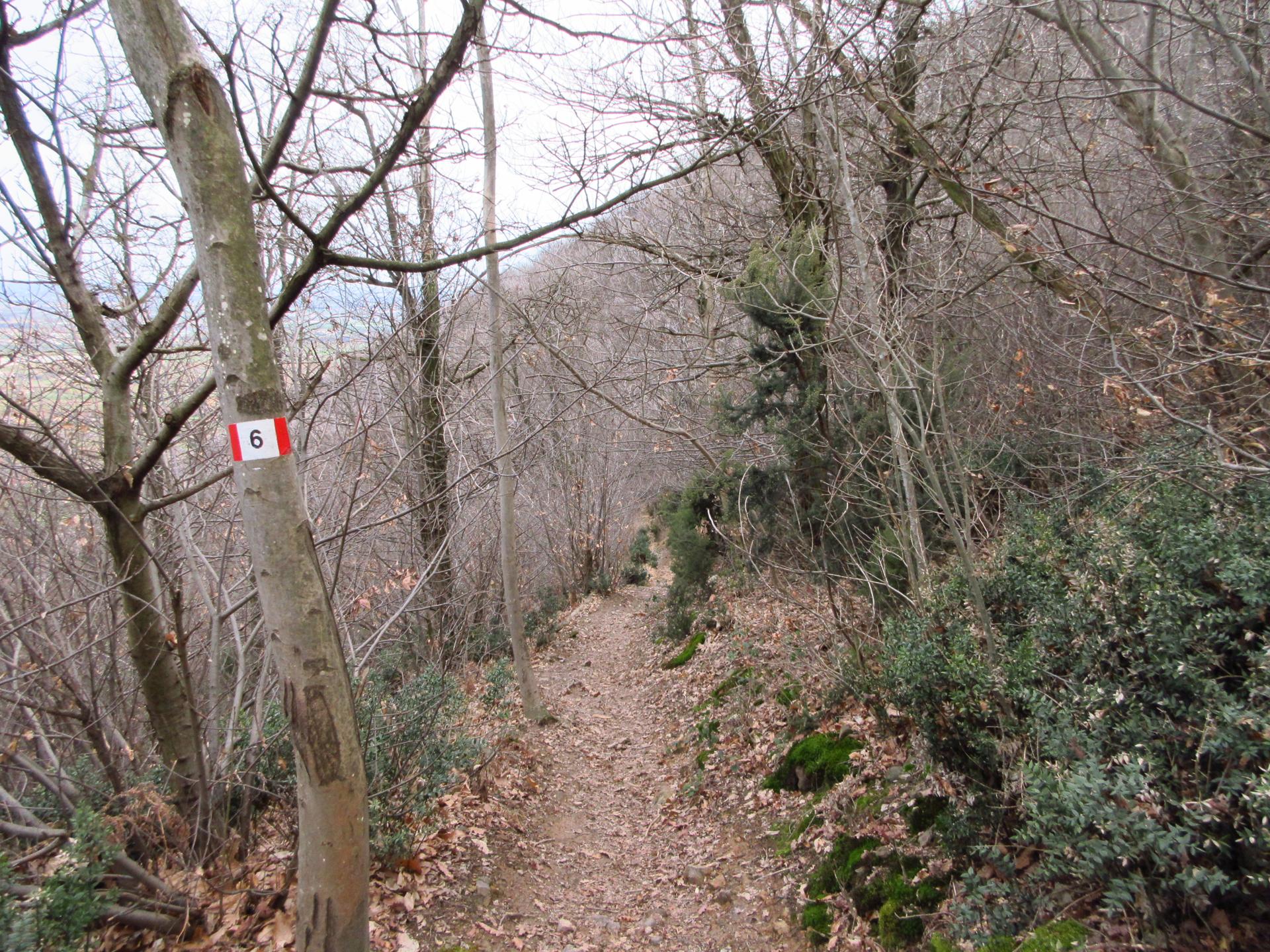 Ad un primo incrocio prendiamo il sentiero a sinistra seguendo le indicazioni del sentiero nr.6 in direzione del Quadrivio M.Castello.