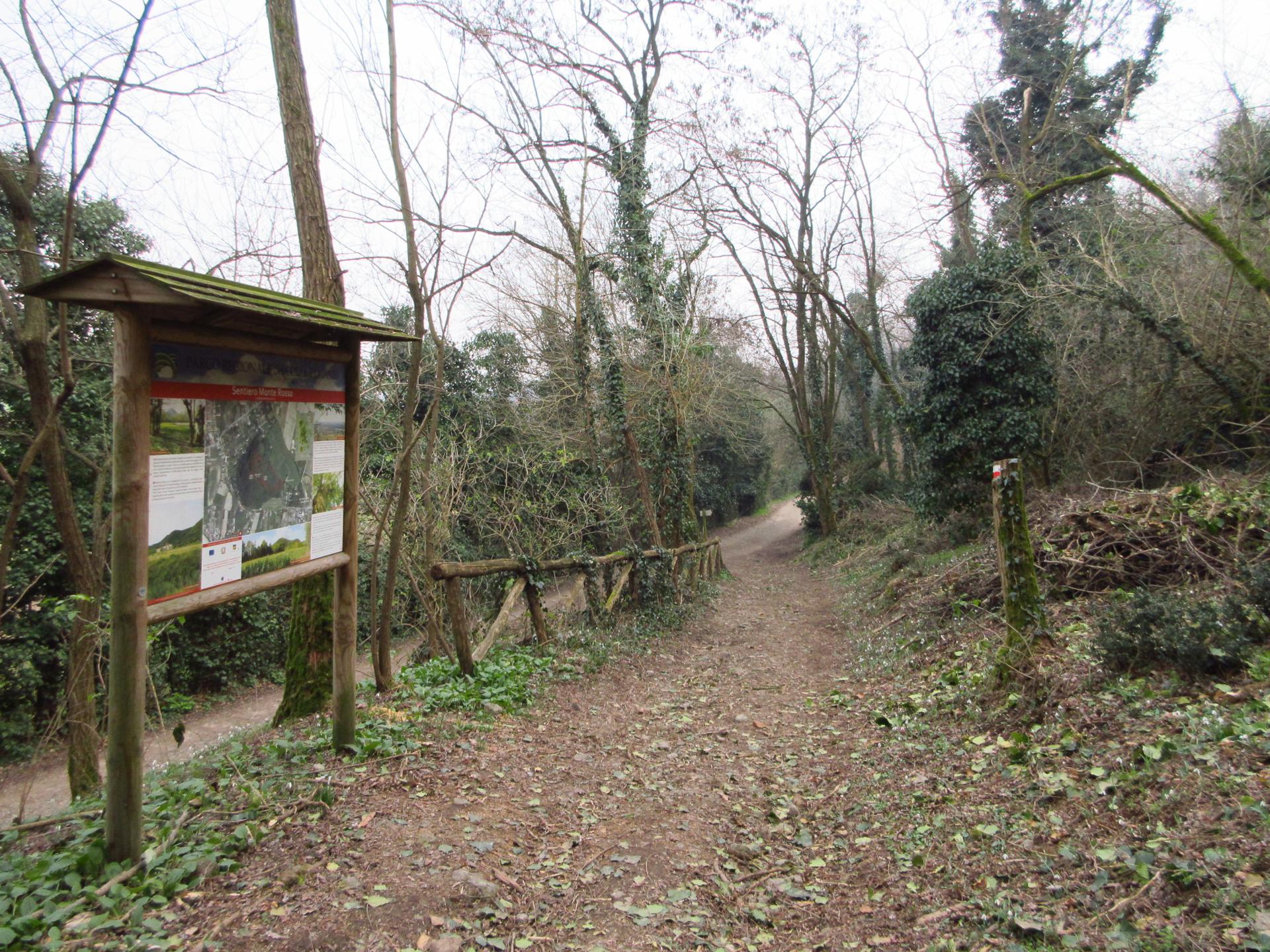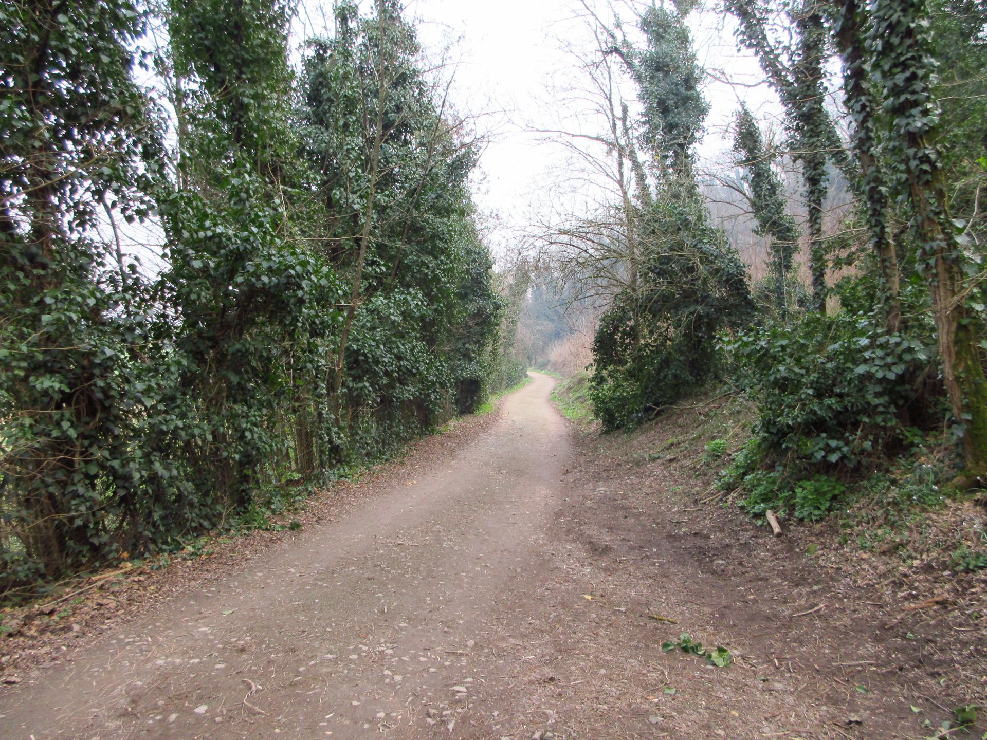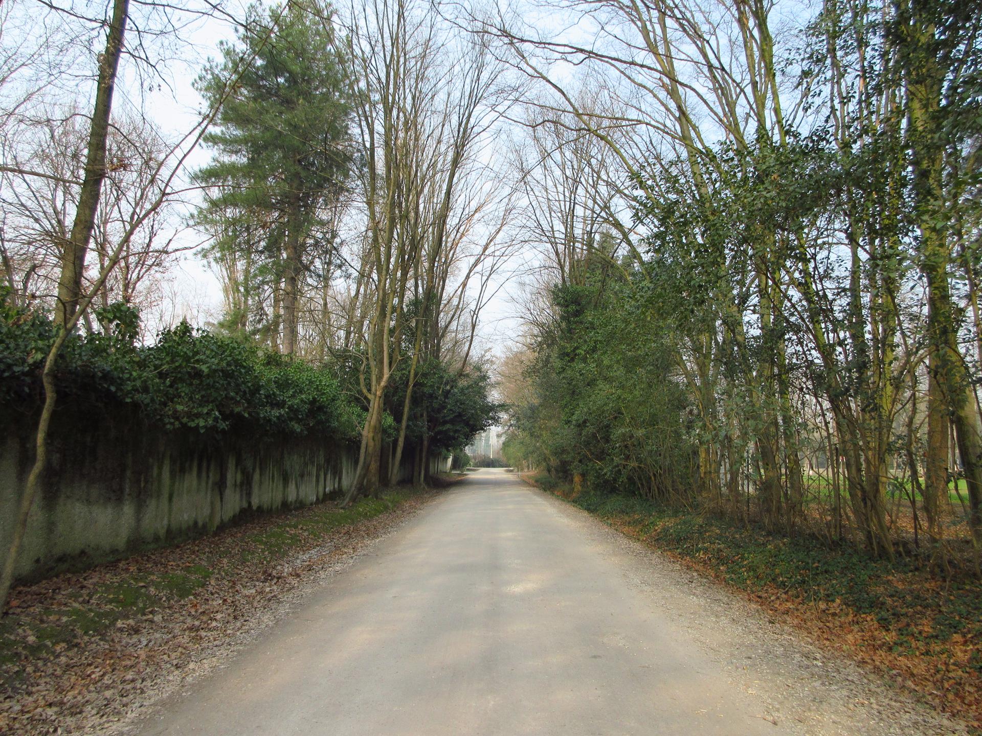 Terminato il viale si continua a costeggiare il muro della villa svoltando a sinistra.