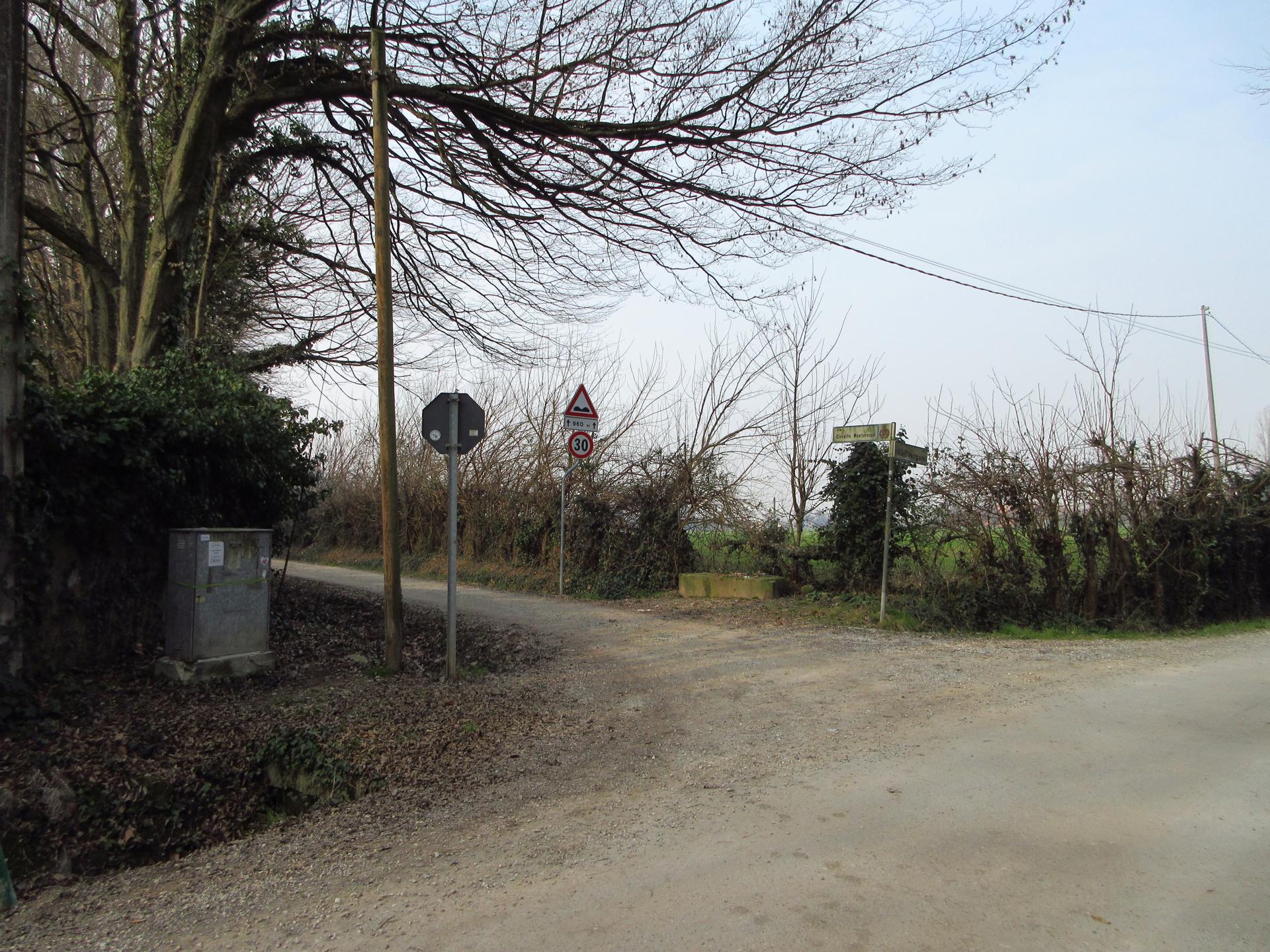 Dalla chiesa si torna sulla strada principale, si svolta a sinistra e si arriva subito sulla strada che costeggia la villa.