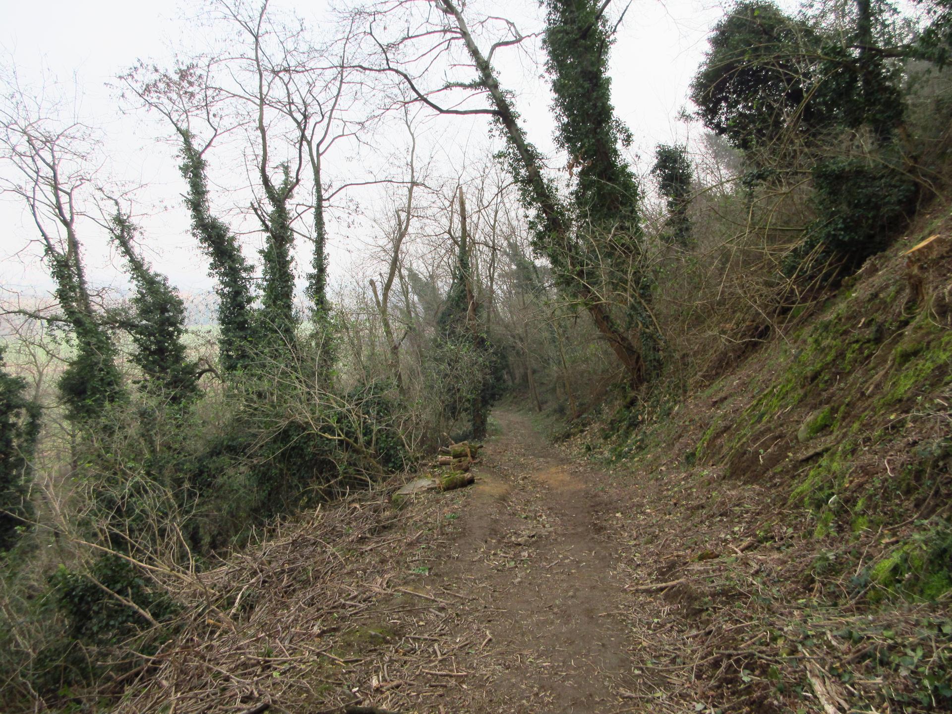 Torniamo leggermente indietro per ritrovare il sentiero del bordo di cava. Si prosegue scendendo a sinistra.