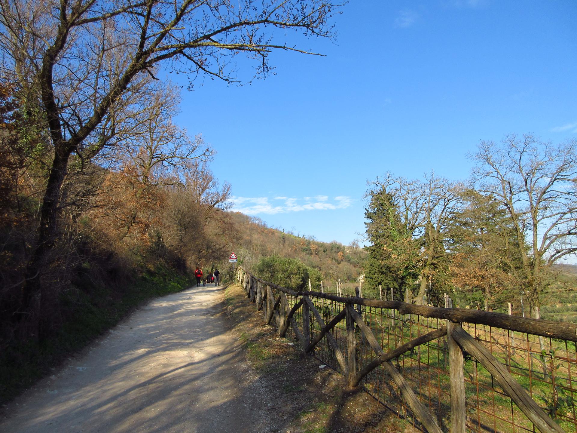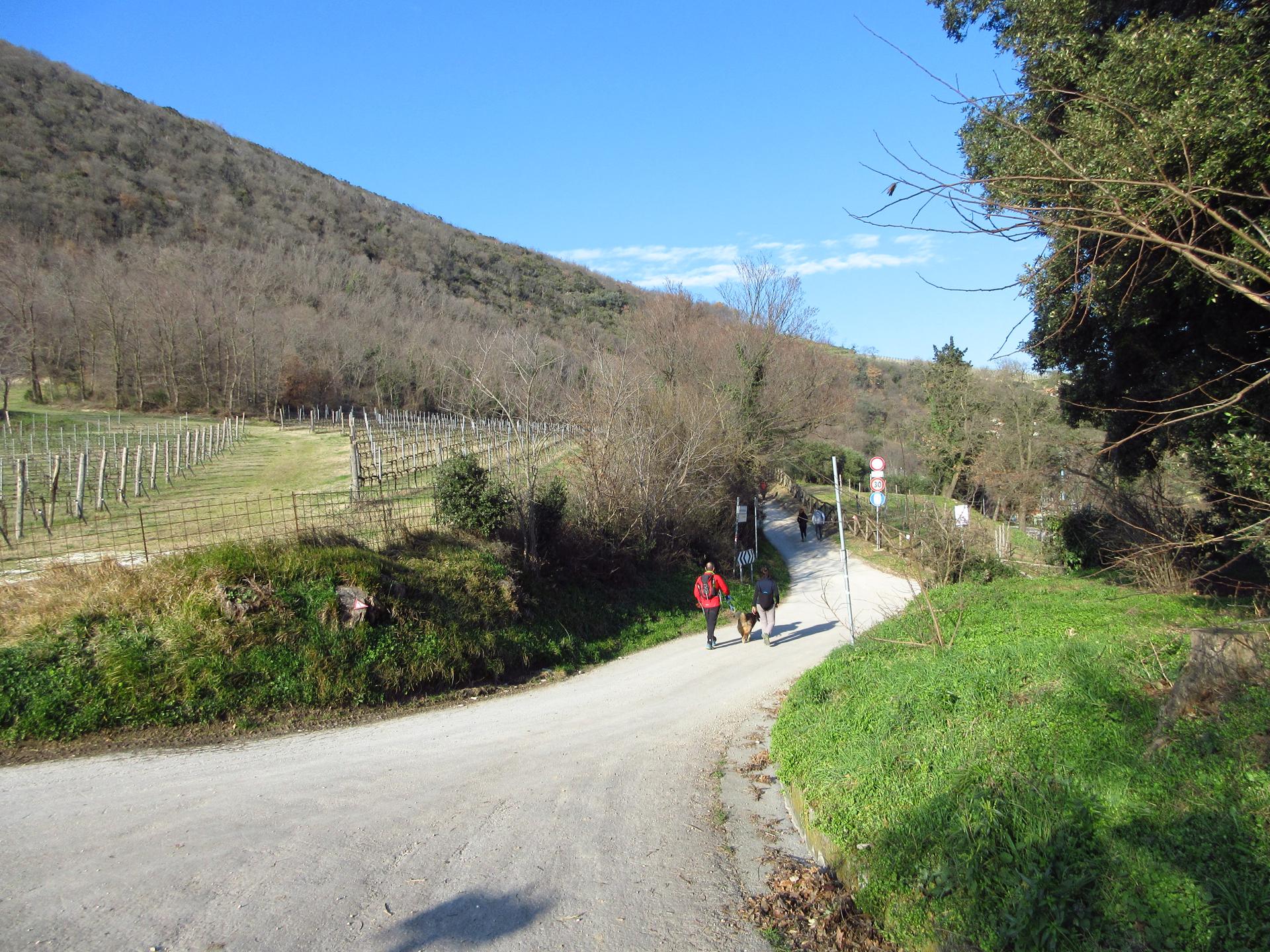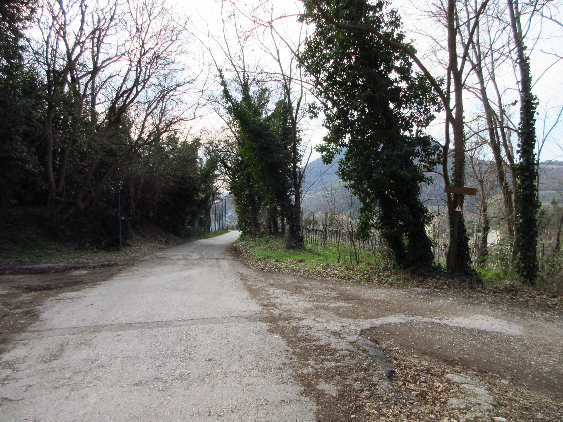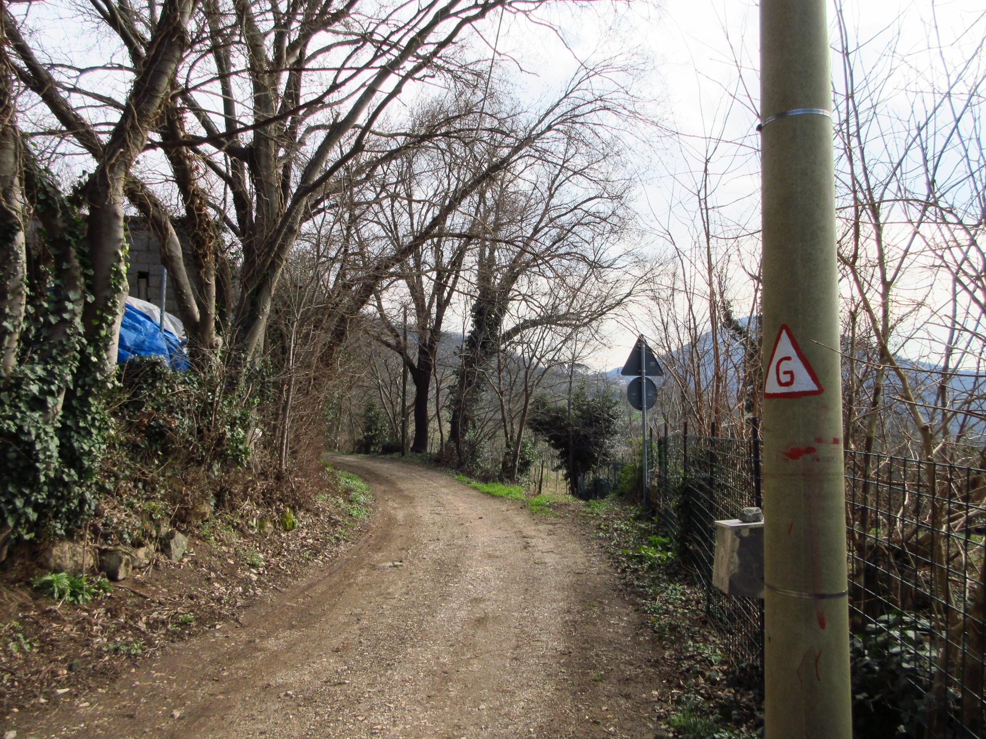 Il sentiero termina su una strada asfaltata. Si svolta a sinistra verso la chiesa dei Santi Nazario e Celso.