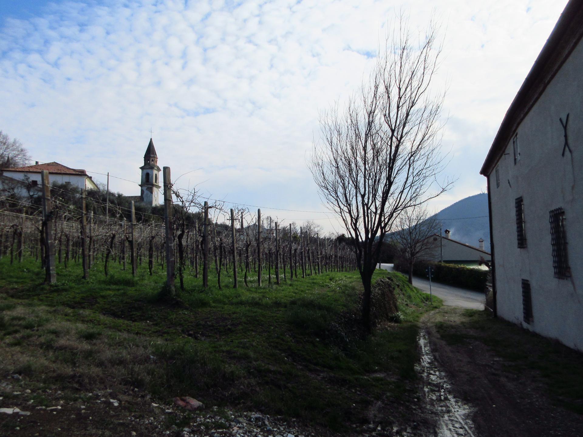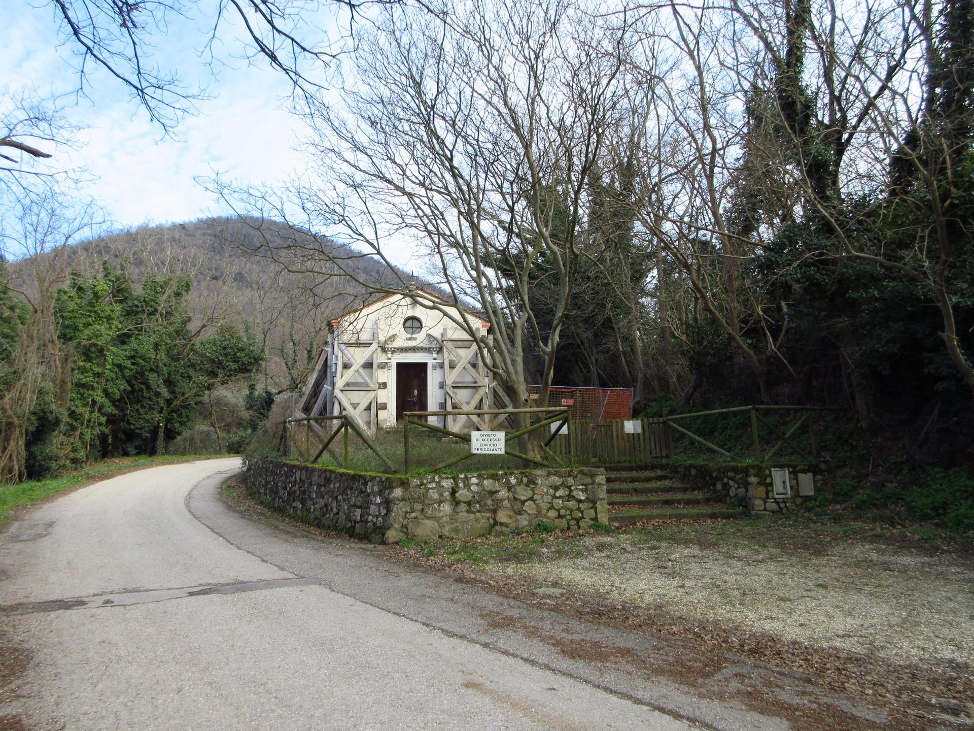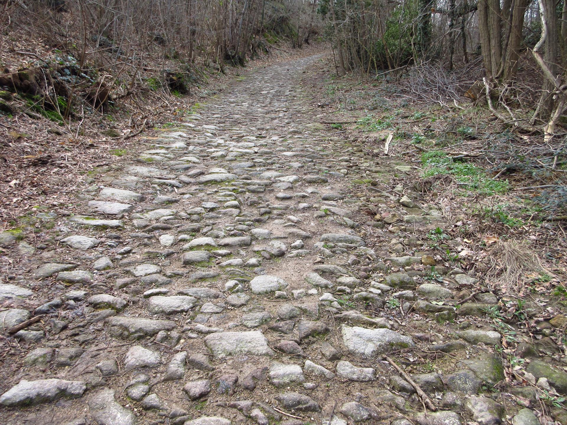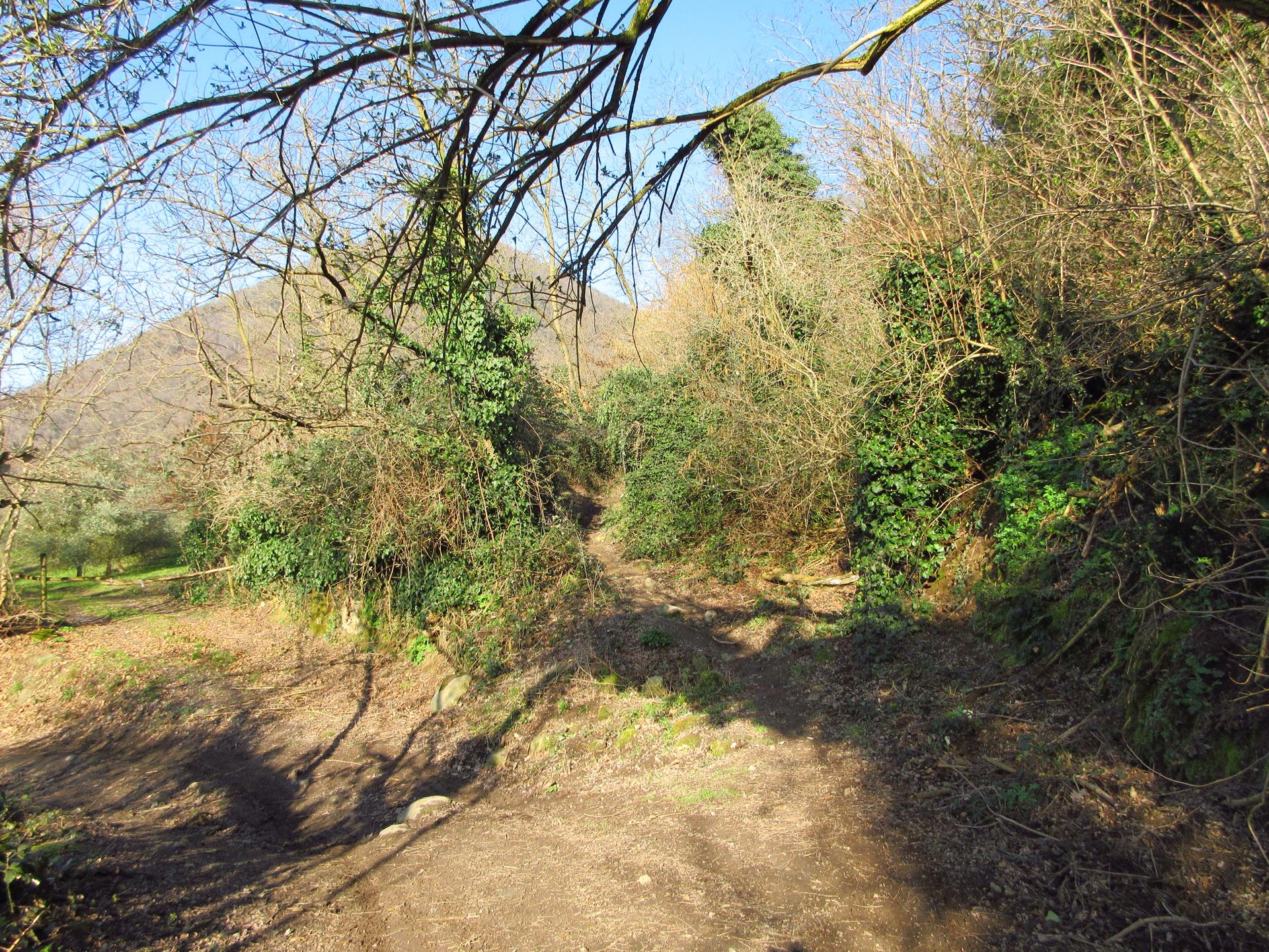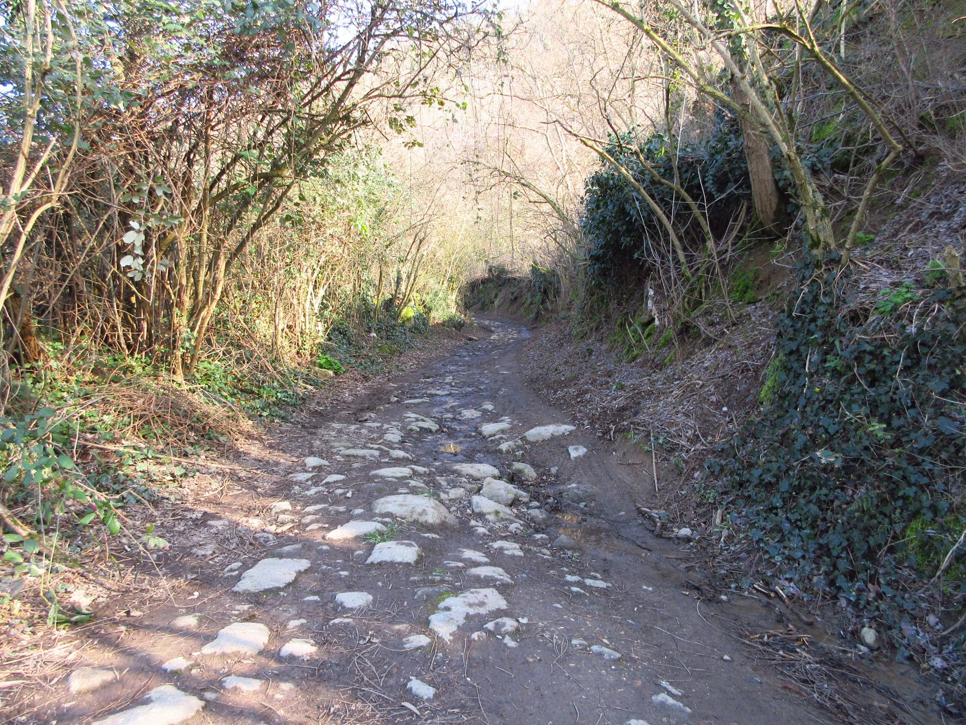 Il sentiero termina su una strada asfaltata. Si svolta a sinistra verso la chiesa dei Santi Nazario e Celso.