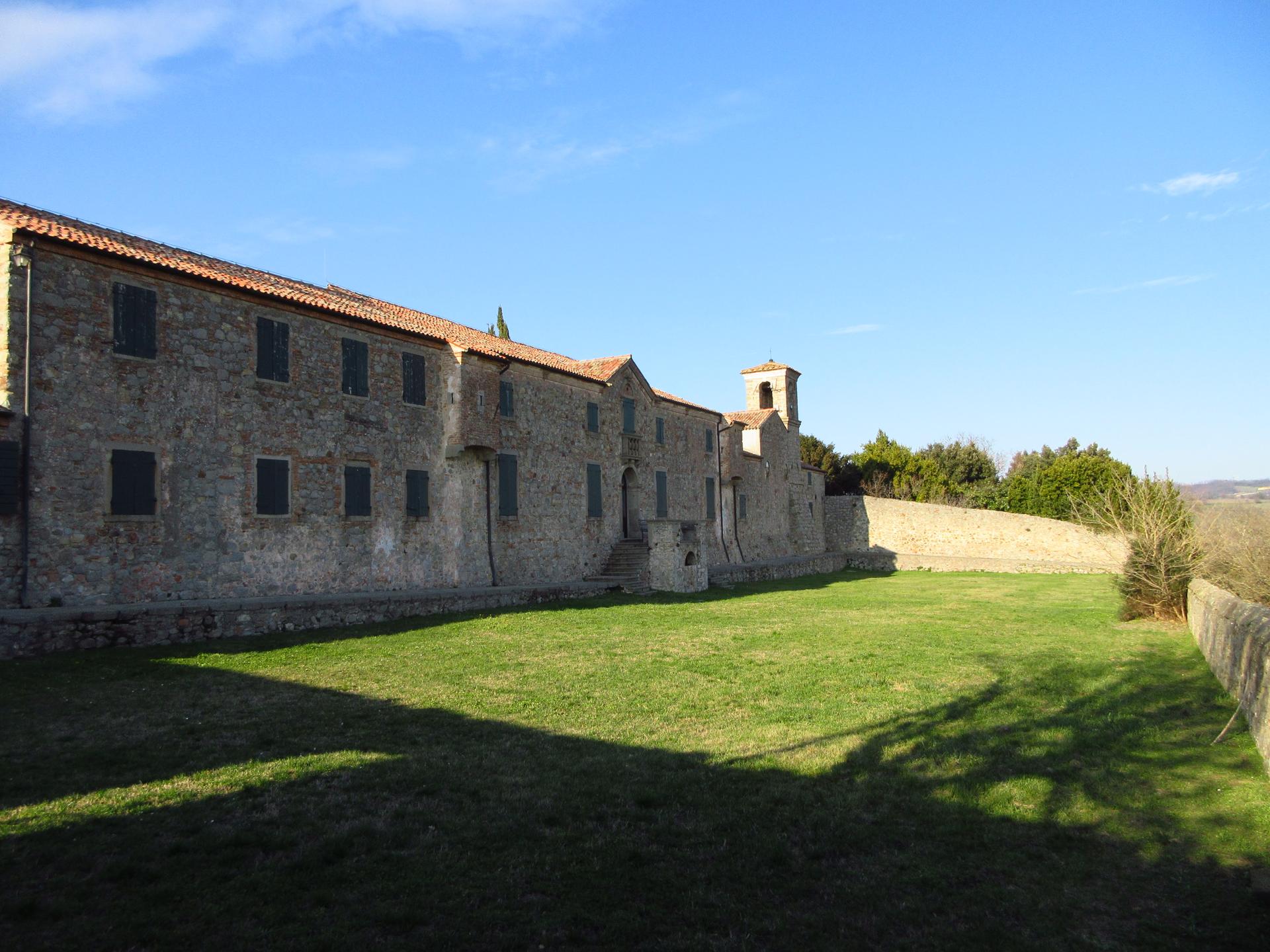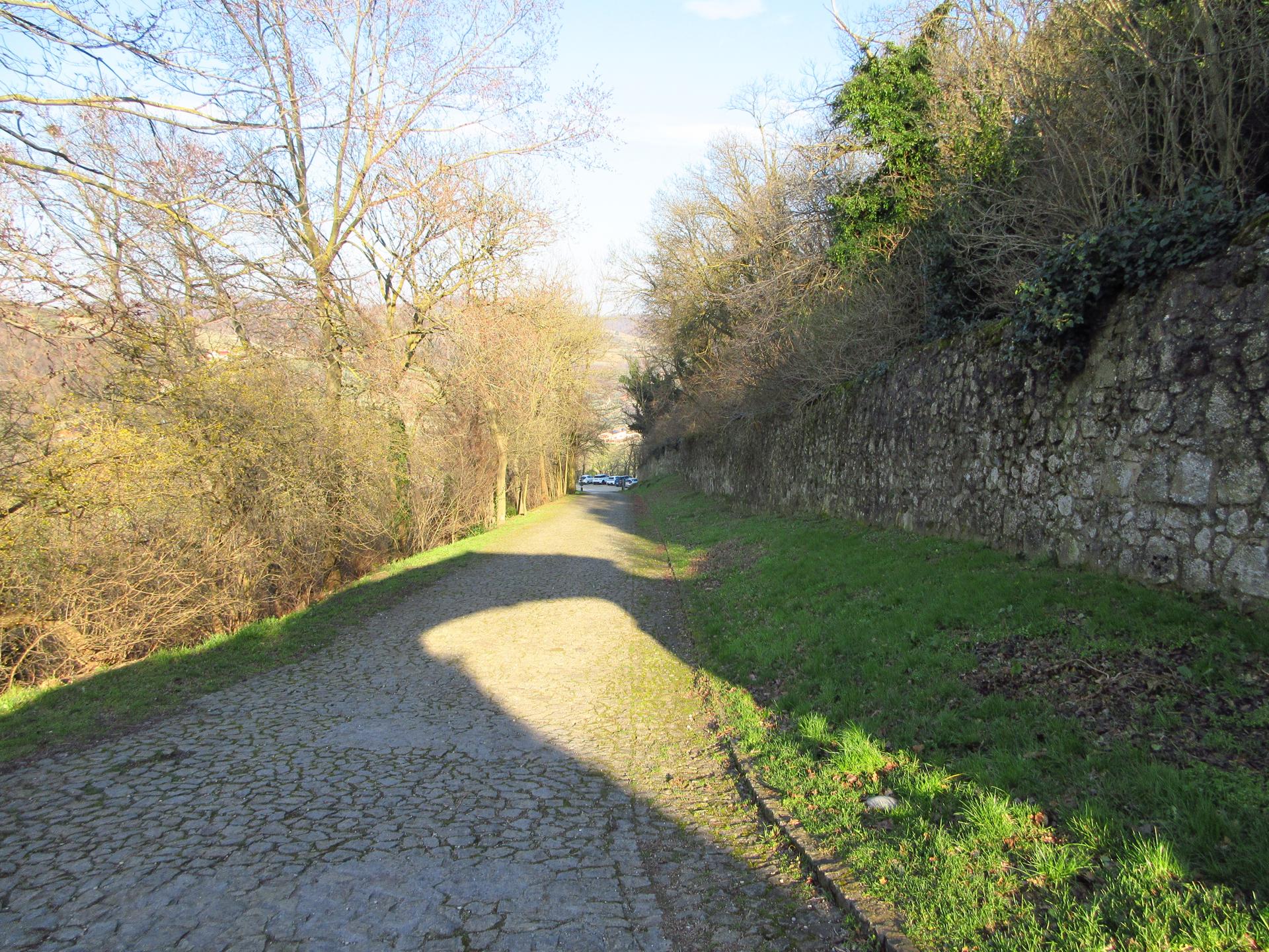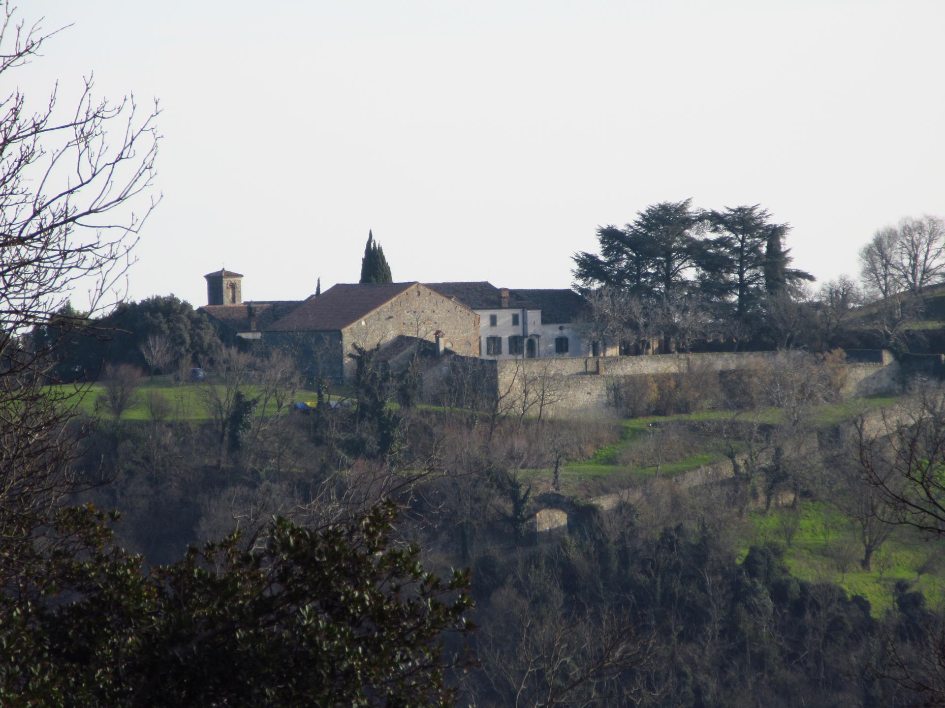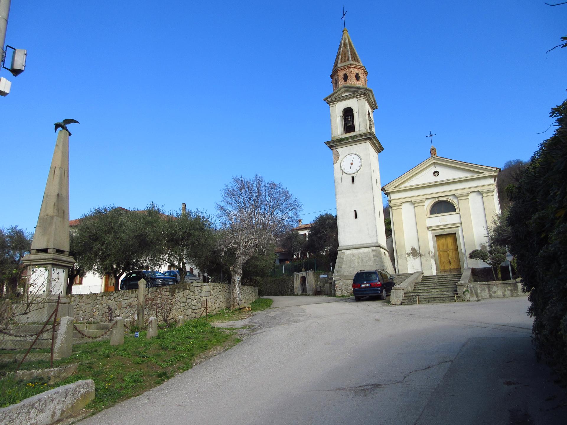 Il sentiero termina su una strada asfaltata. Si svolta a sinistra verso la chiesa dei Santi Nazario e Celso.
