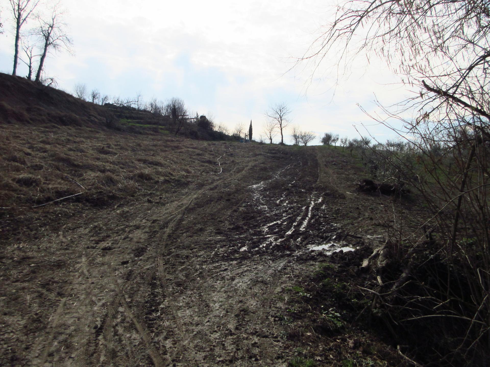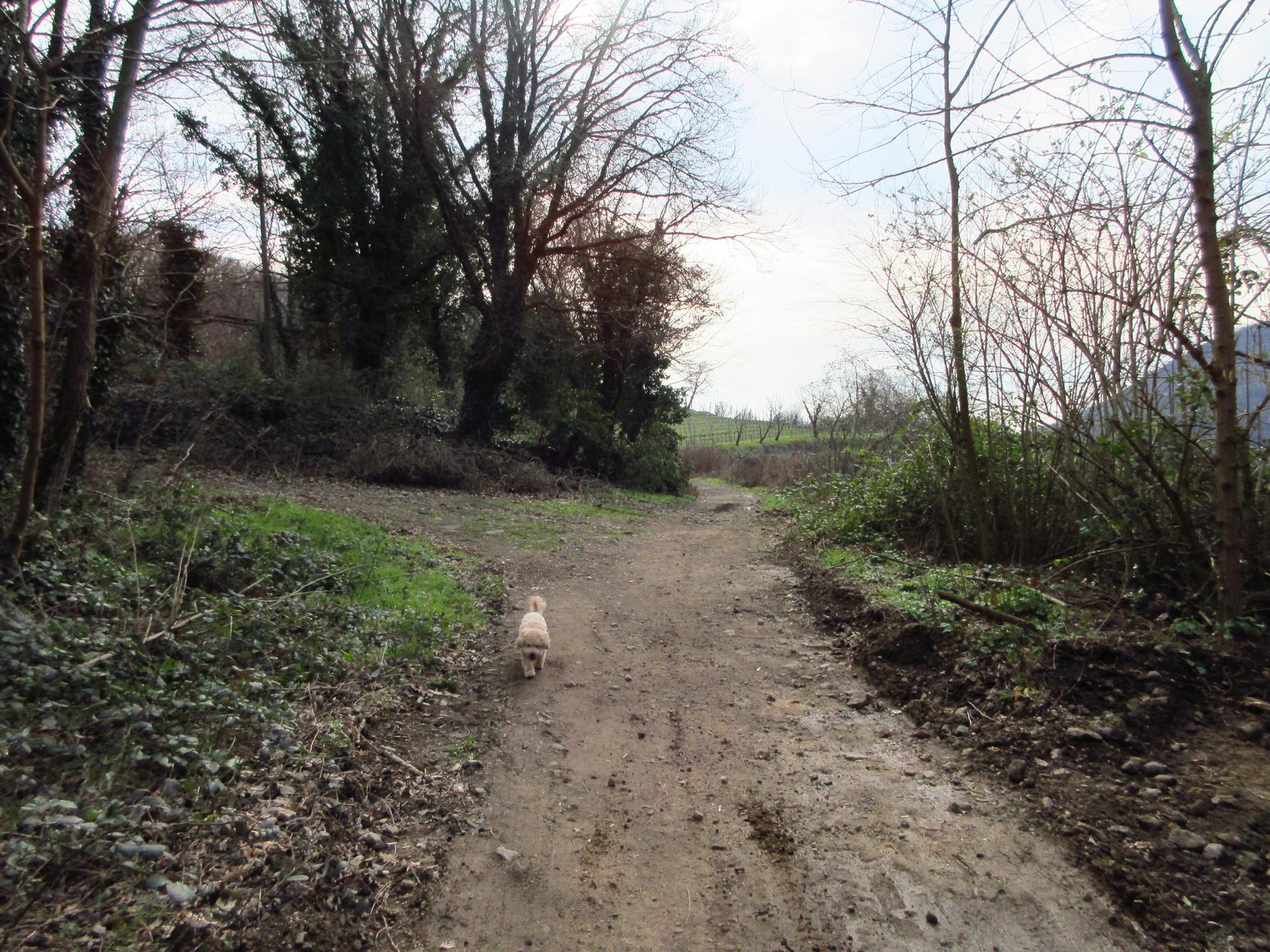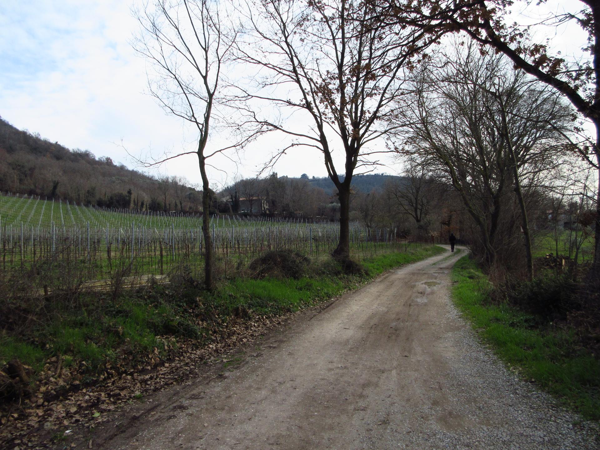 La strada sembra terminare su un campo. Sarà stato per il fango ma le tracce non erano molto chiare. Superato il campo però il sentiero torna evidente.